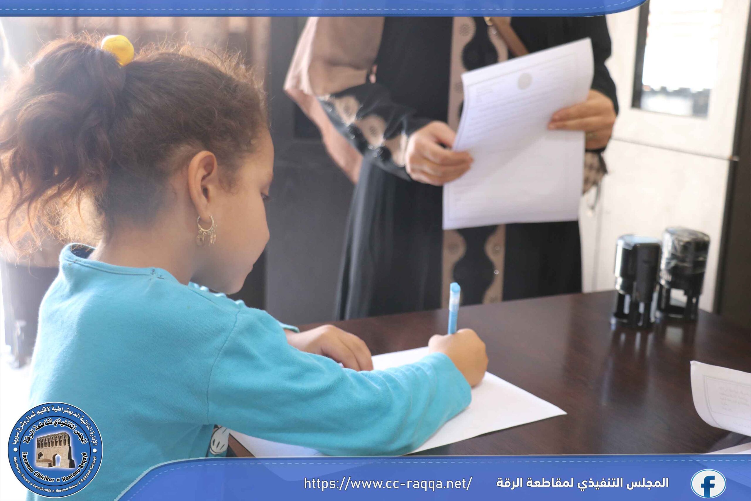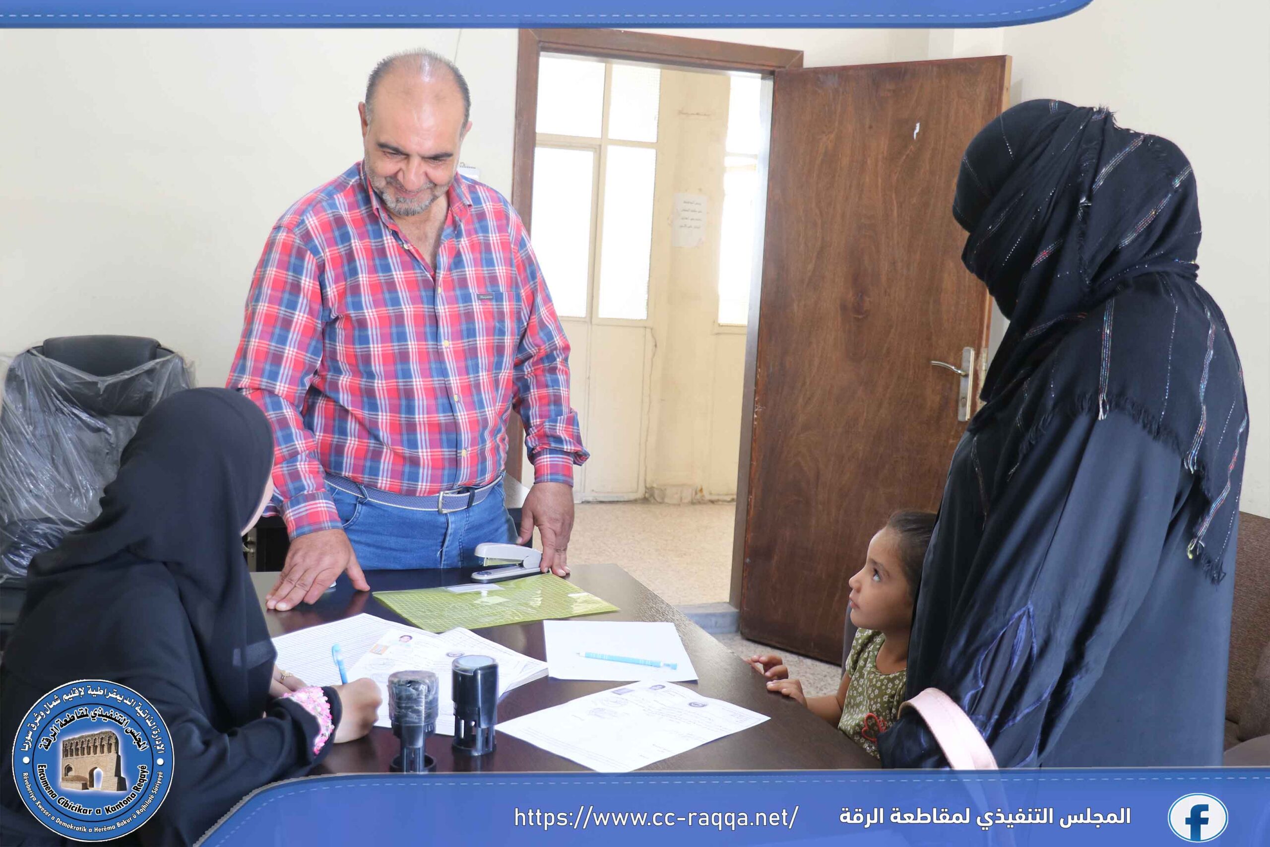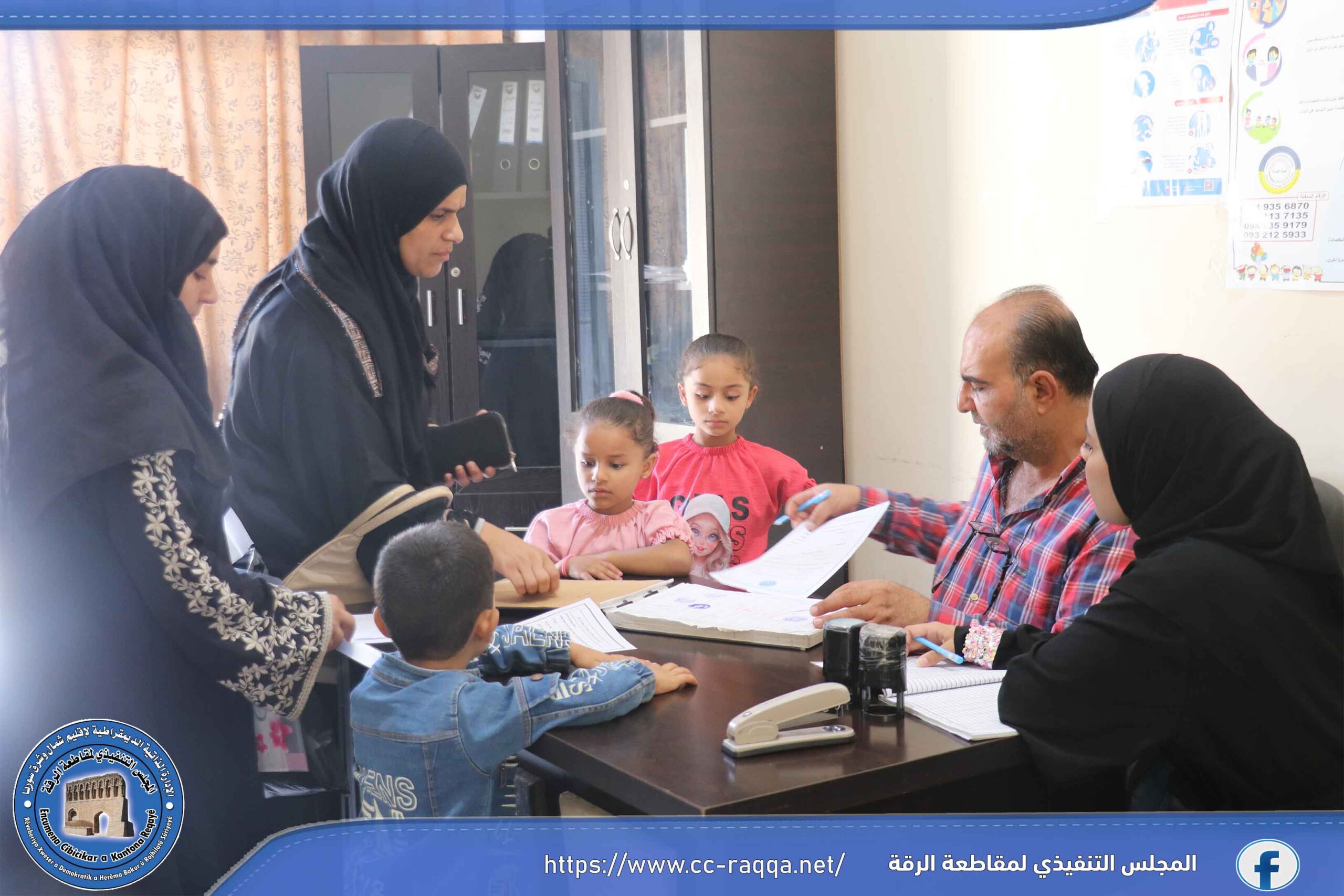 مع بداية كل عام دراسي يقوم مكتب الصحة المدرسية التابع لهيئة التربية والتعليم في مقاطعة الرقة، بفتح باب التسجيل لتلاميذ الصف الأول الابتدائي، والمستجدين الذين هم غير مسجلين في القيود المدنية.