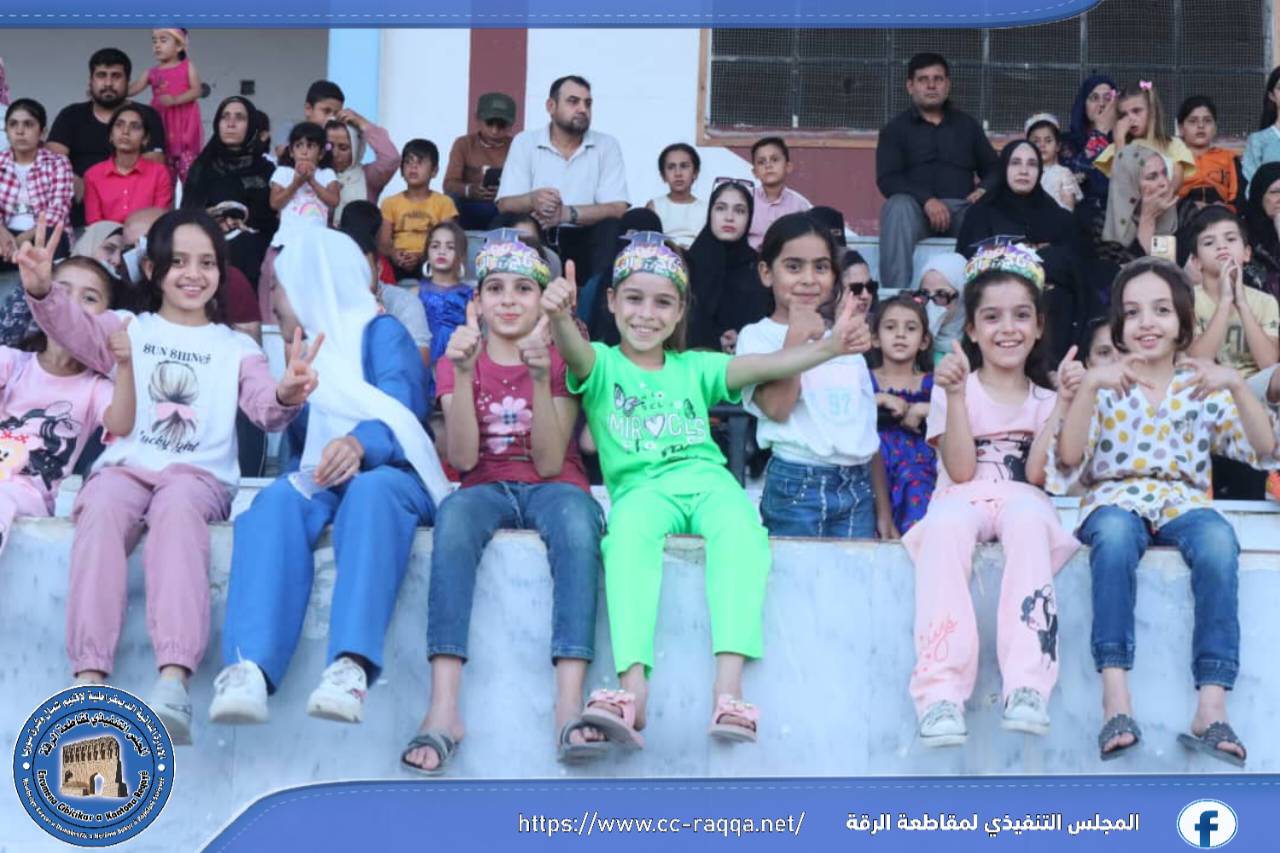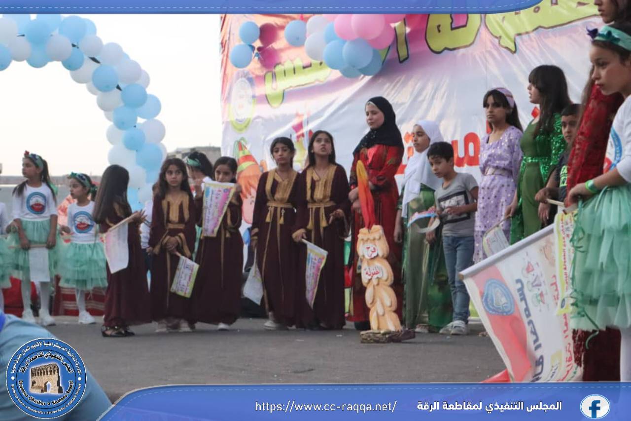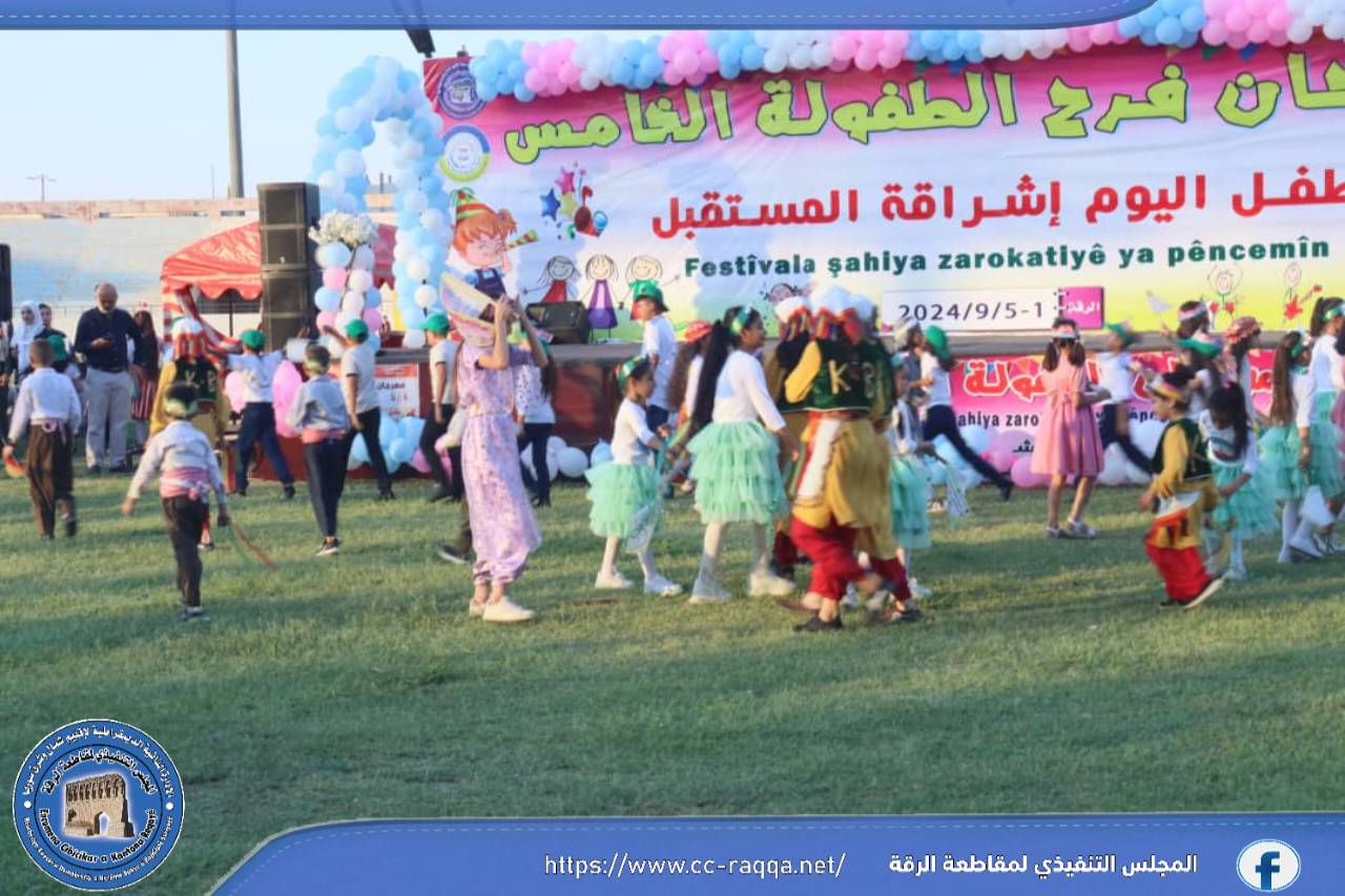 تحت شعار (طفل اليوم إشراقة المستقبل)، نظمت هيئة الثقافة والآثار في مقاطعة الرقة وبالتعاون مع مركز الهلال الذهبي مساء اليوم 1 أيلول، مهرجان فرح الطفولة للموسم الخامس على التوالي، وذلك على أرضية الملعب البلدي.