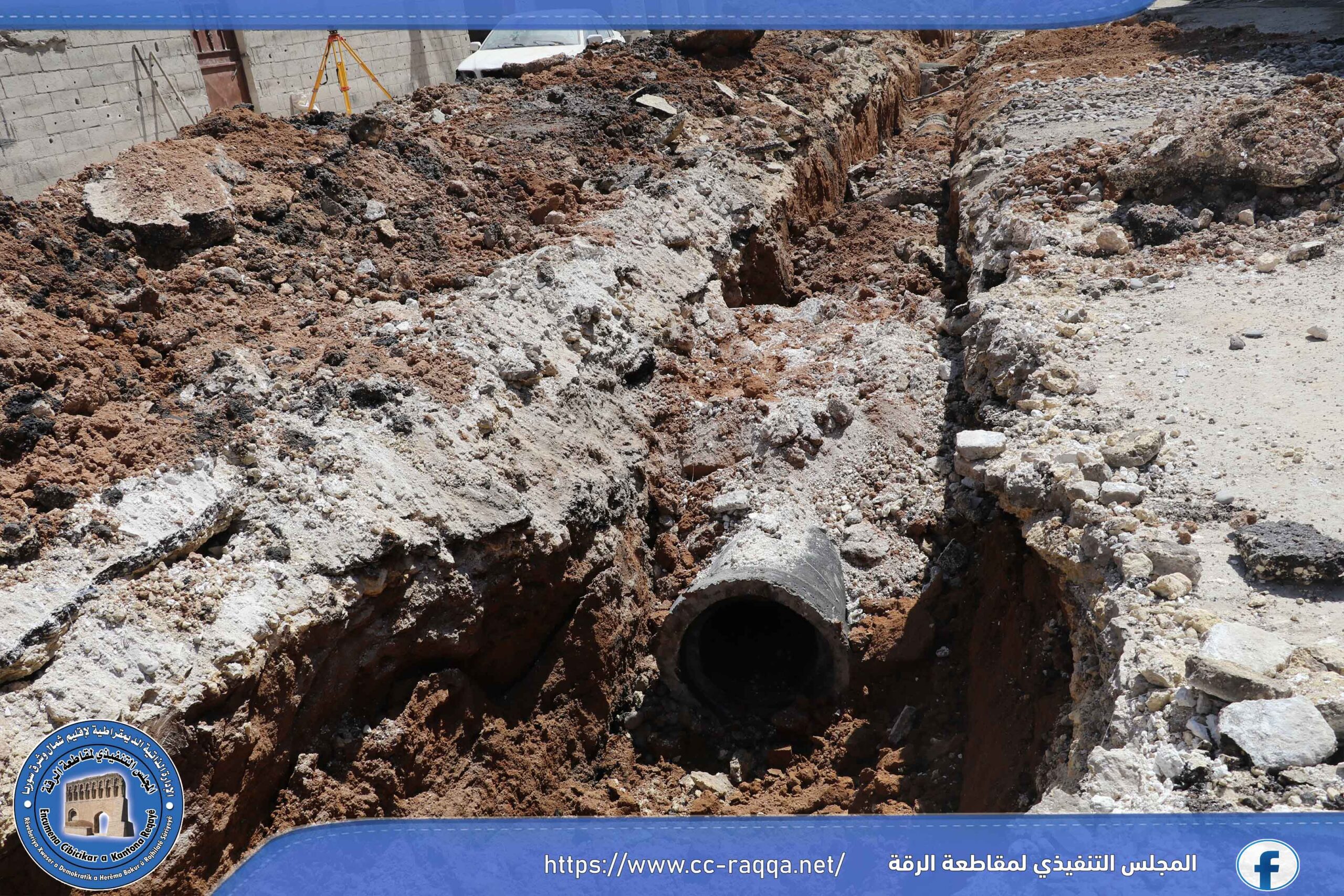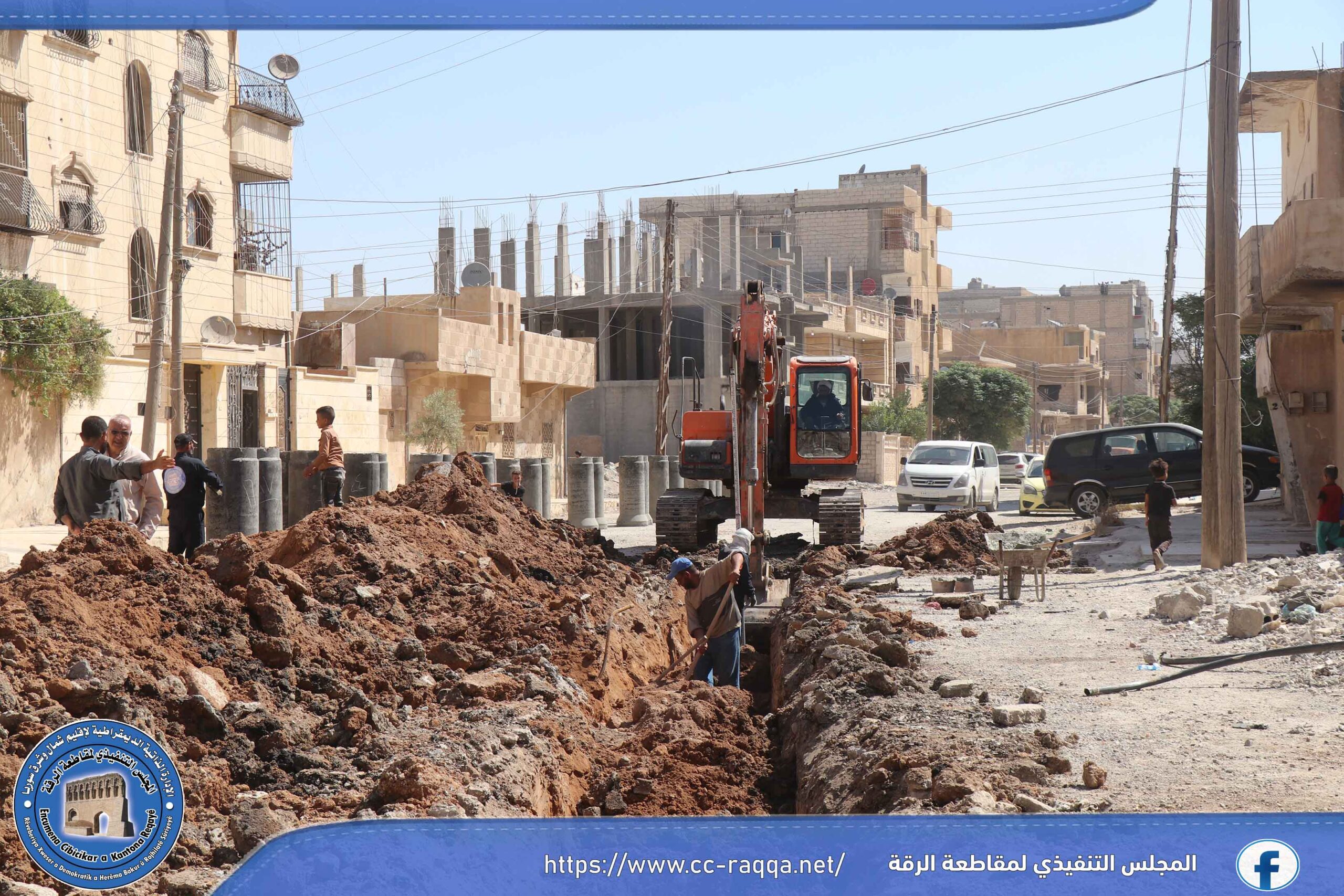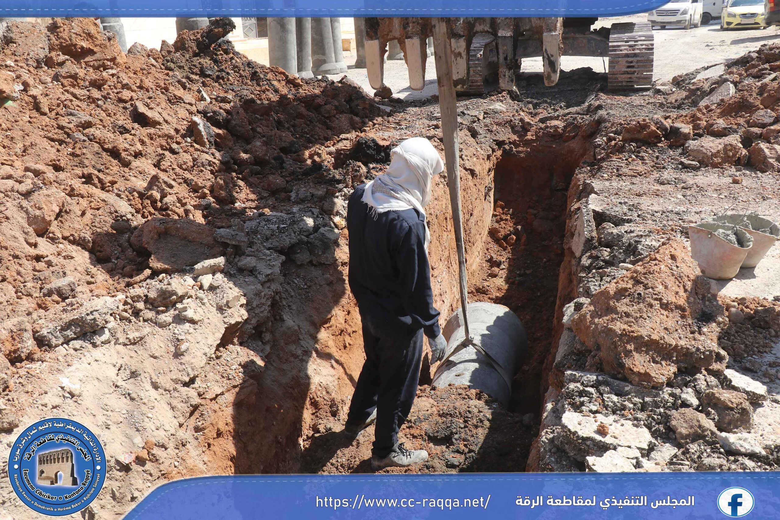 تعمل الورشات التابعة لبلدية الشعب في الرقة، على استكمال مشروع الصرف الصحي في حي النهضة، والذي يبلغ طوله 500 متر، حيث تم إنجاز قرابة الـ 50 % من المشروع.