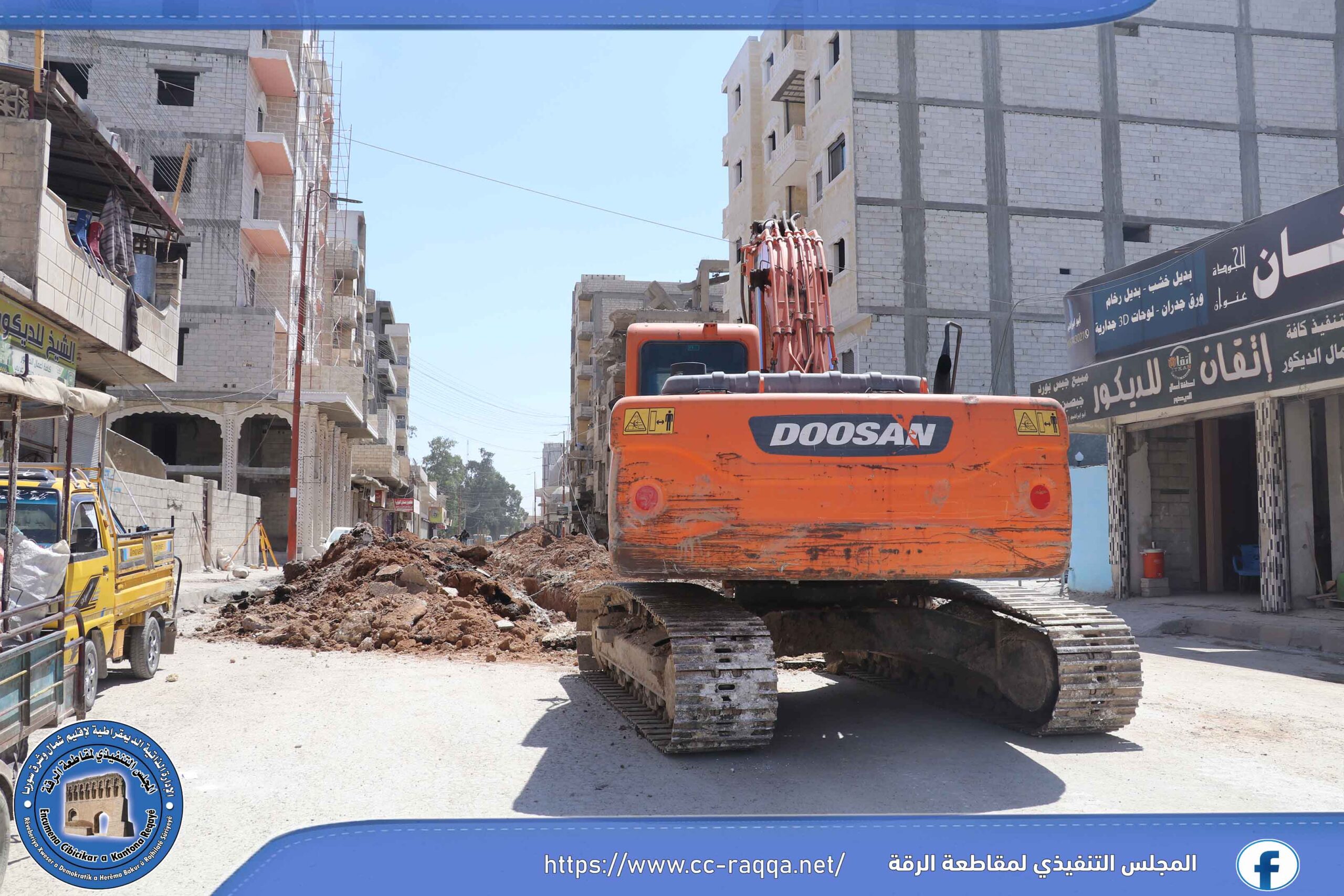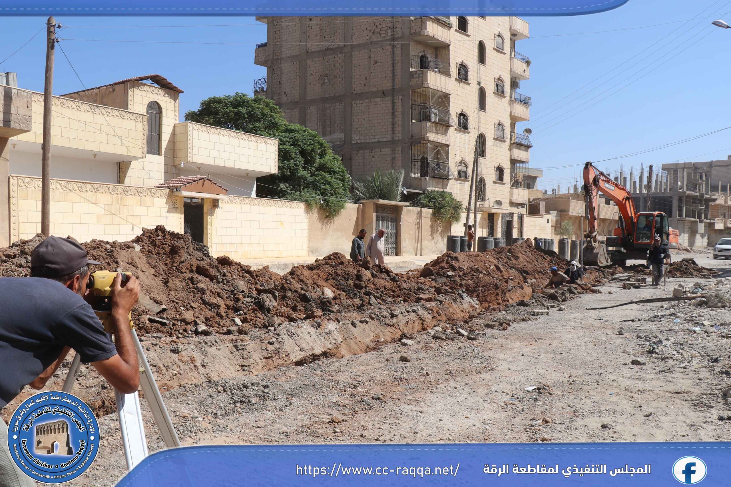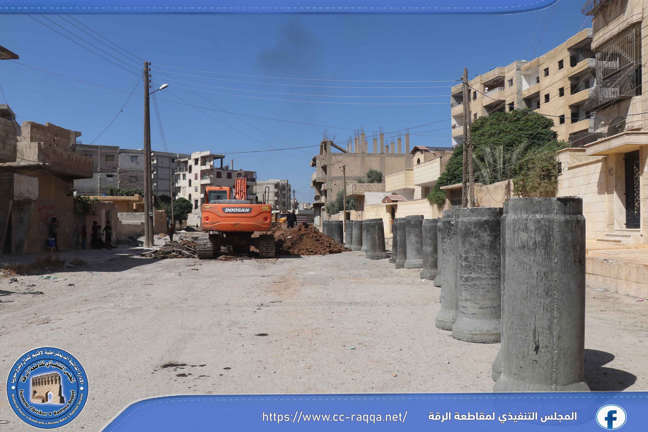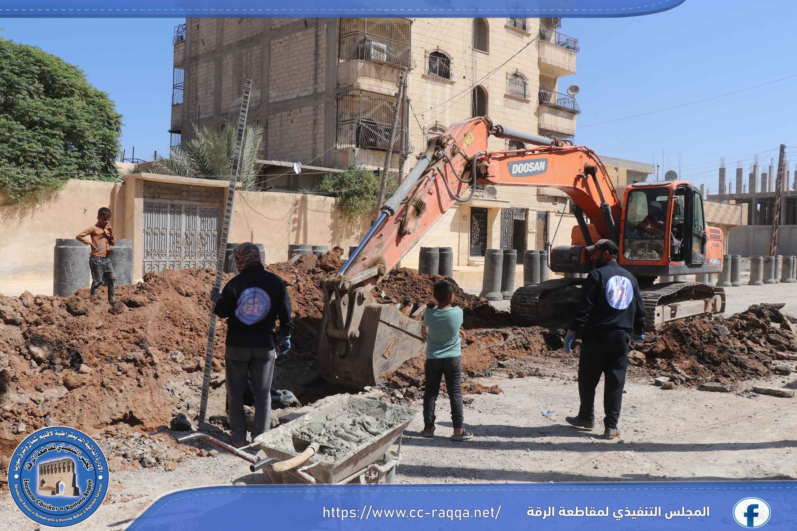 تعمل الورشات التابعة لبلدية الشعب في الرقة، على استكمال مشروع الصرف الصحي في حي النهضة، والذي يبلغ طوله 500 متر، حيث تم إنجاز قرابة الـ 50 % من المشروع.