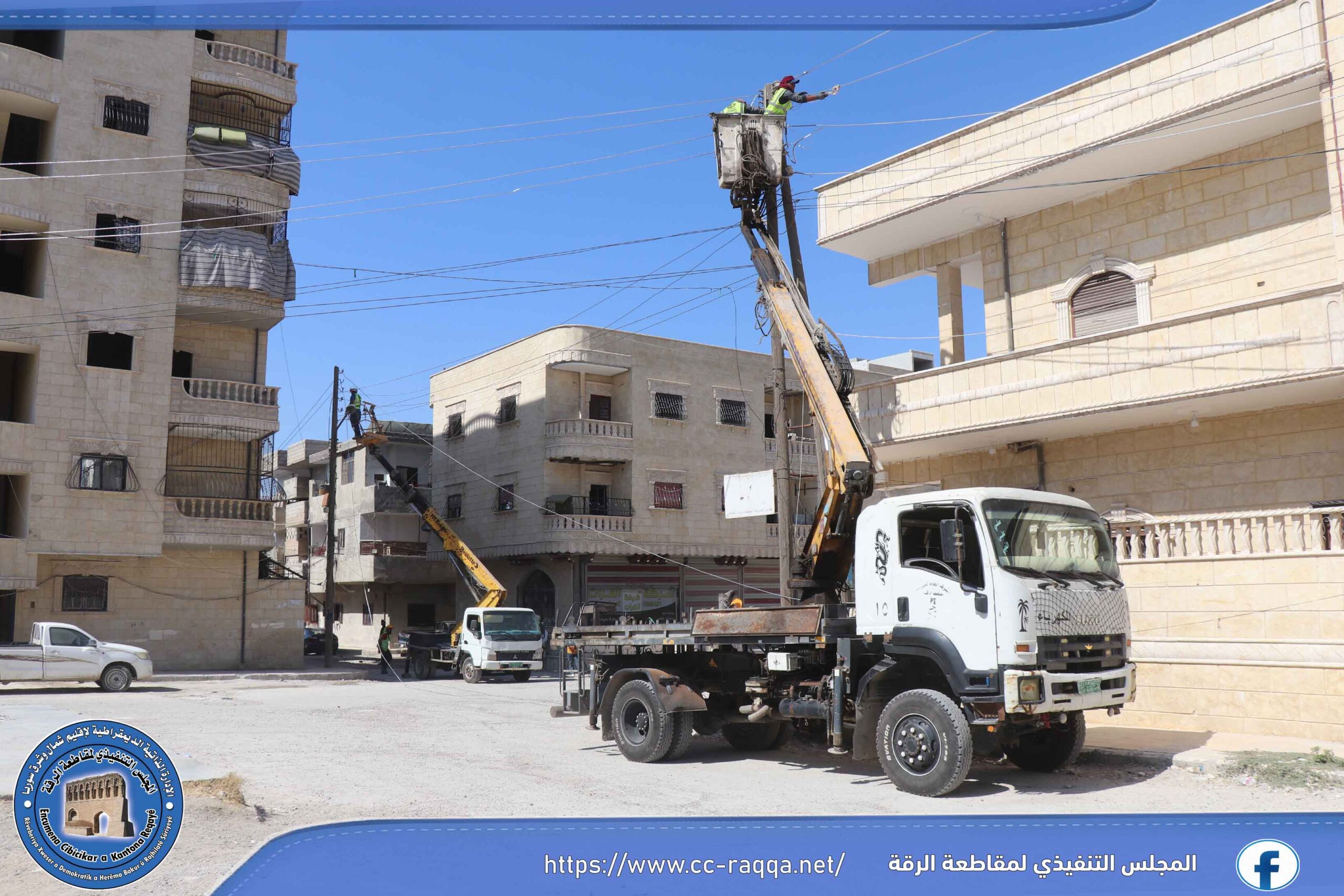 من خلال عمل ورشات هيئة الطاقة في مقاطعة الرقة على تجهيز ومد الشبكات الهوائية، تم الانتهاء من مركز جواد ومركز الجو خدار بالنسبة للشبكات الهوائية، ولا تزال الأعمال قائمة بالنسبة للشبكات الأرضية في مركز الجو خدار بنسبة 80 % من حديقة الرقي، وبقي مركز الأنصار والجباية وذي قار ضمن أعمال المرحلة الثانية، وتم إنجاز ما يقارب الـ 50 % من أعمال الشبكات للمرحلة الثانية.