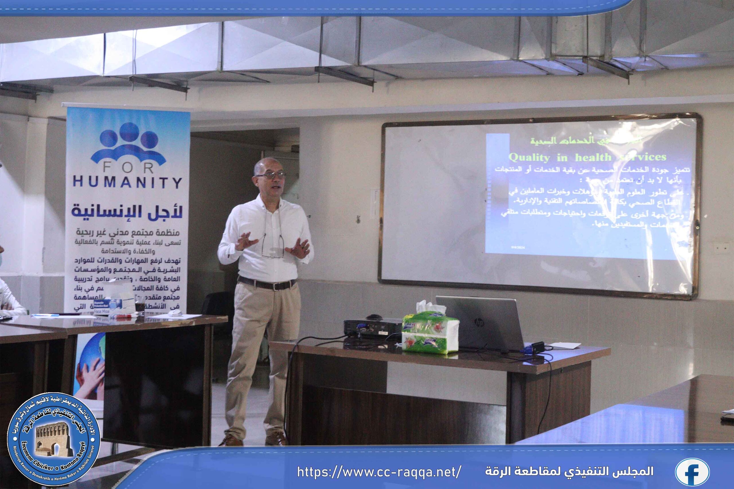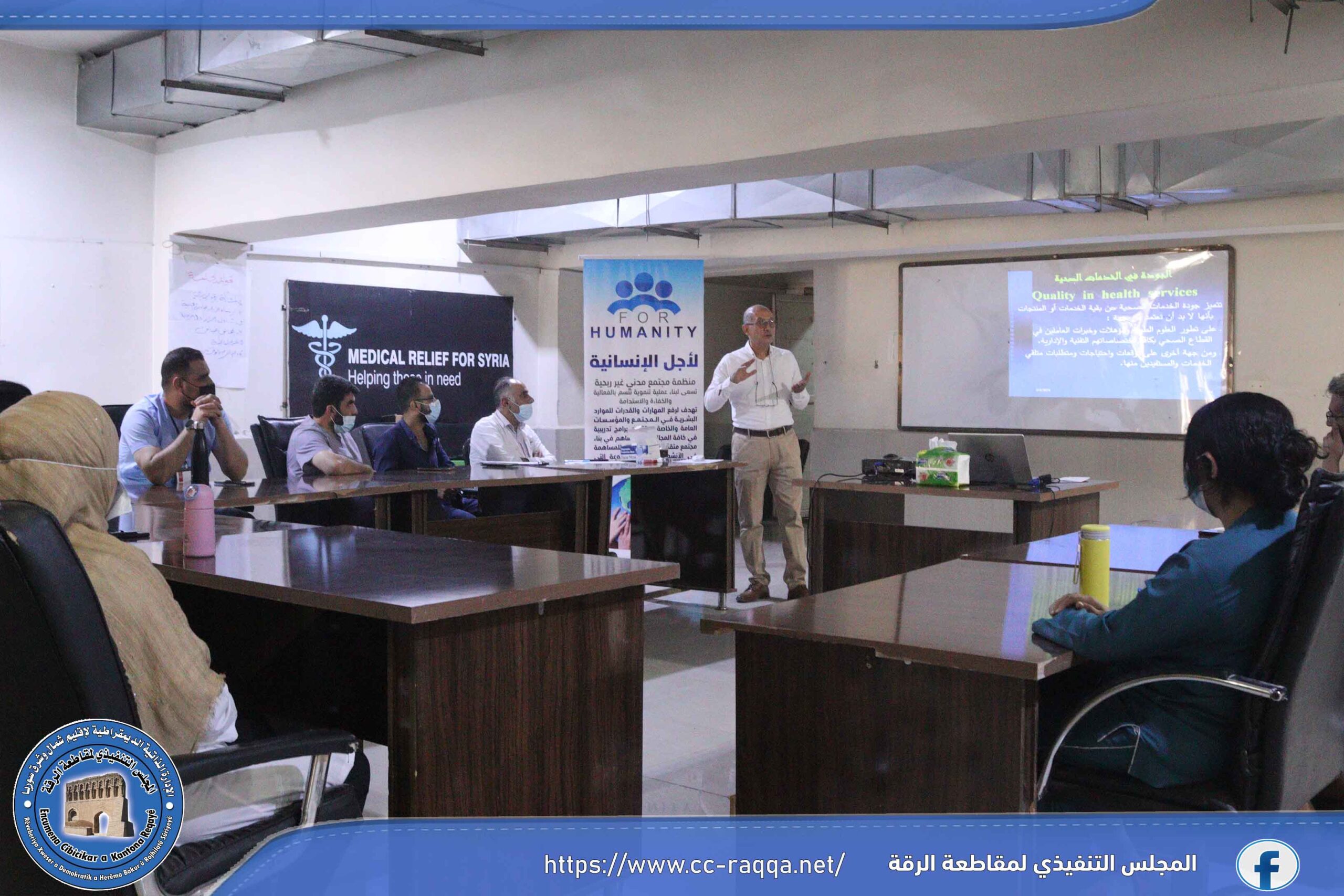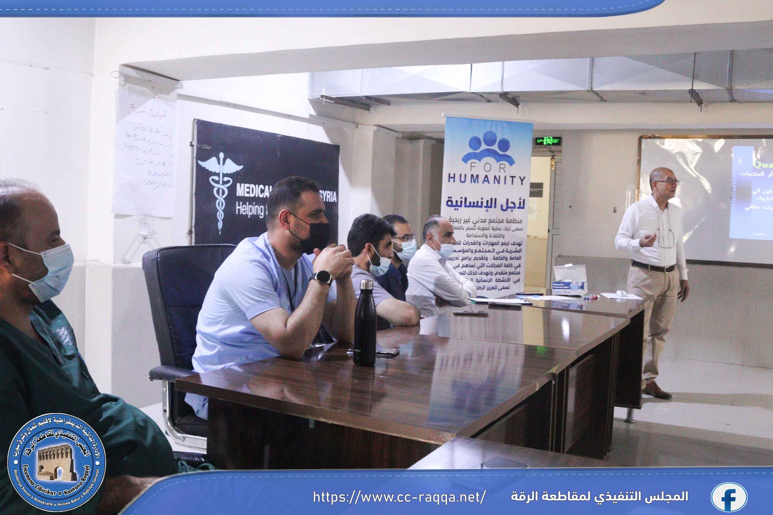 بمبادرة من منظمة محلية وبالتعاون مع مركز الجودة للتنمية والدراسات الصحية، تم إطلاق ورشة عمل لمدة يومين (3 / 4) أيلول، خاصة برؤساء الأقسام والموظفين الإداريين في مشفى الرقة الوطني، بعنوان (الجودة في المؤسسات الصحية)، والتي تضمنت المحاور التالية: