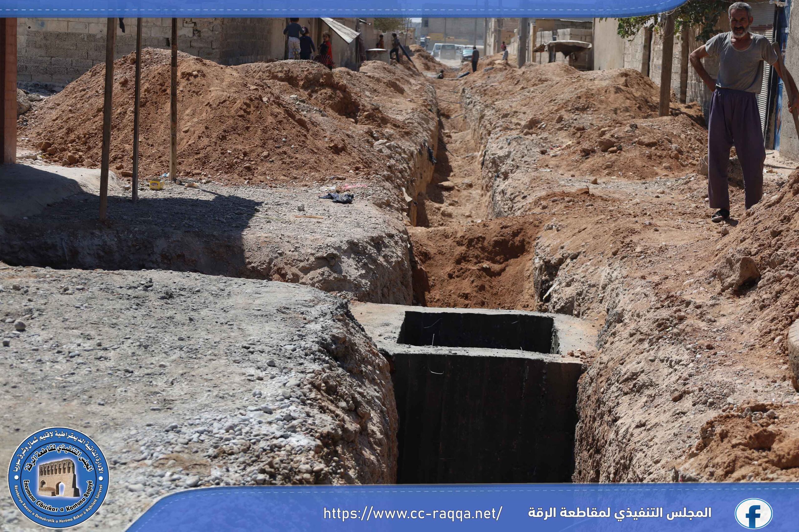 أطلقت دائرة الأشغال العامة والتابعة لبلدية الشعب في الرقة وخلال الفترة الحالية، مشروعاً جديداً من مشاريع الصرف الصحي في حي الأندلس شمال السكة بطول 900 متر وقطر 40 سم، وذلك في الشوارع التي دخلت ضمن المخطط التنظيمي للمنطقة.