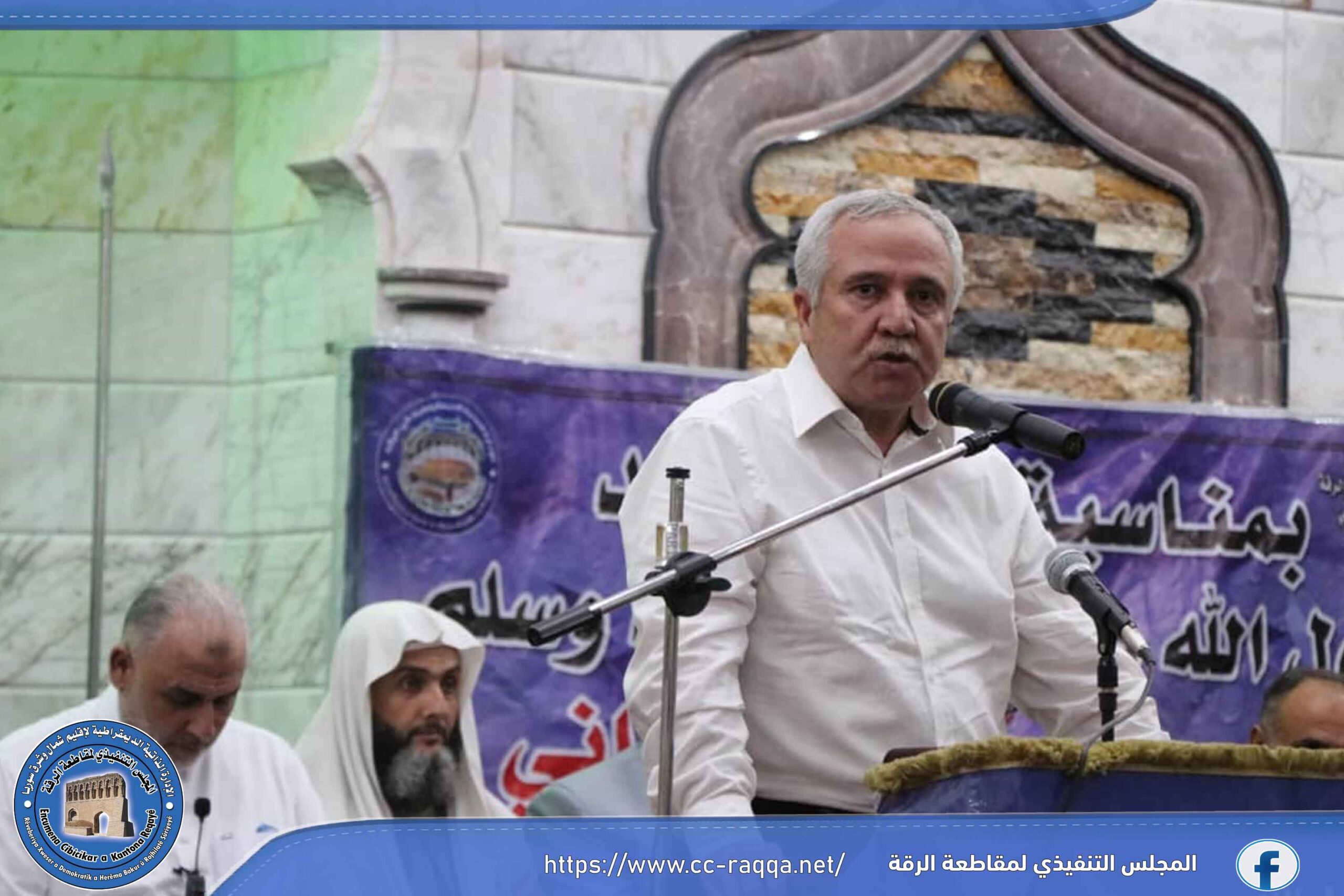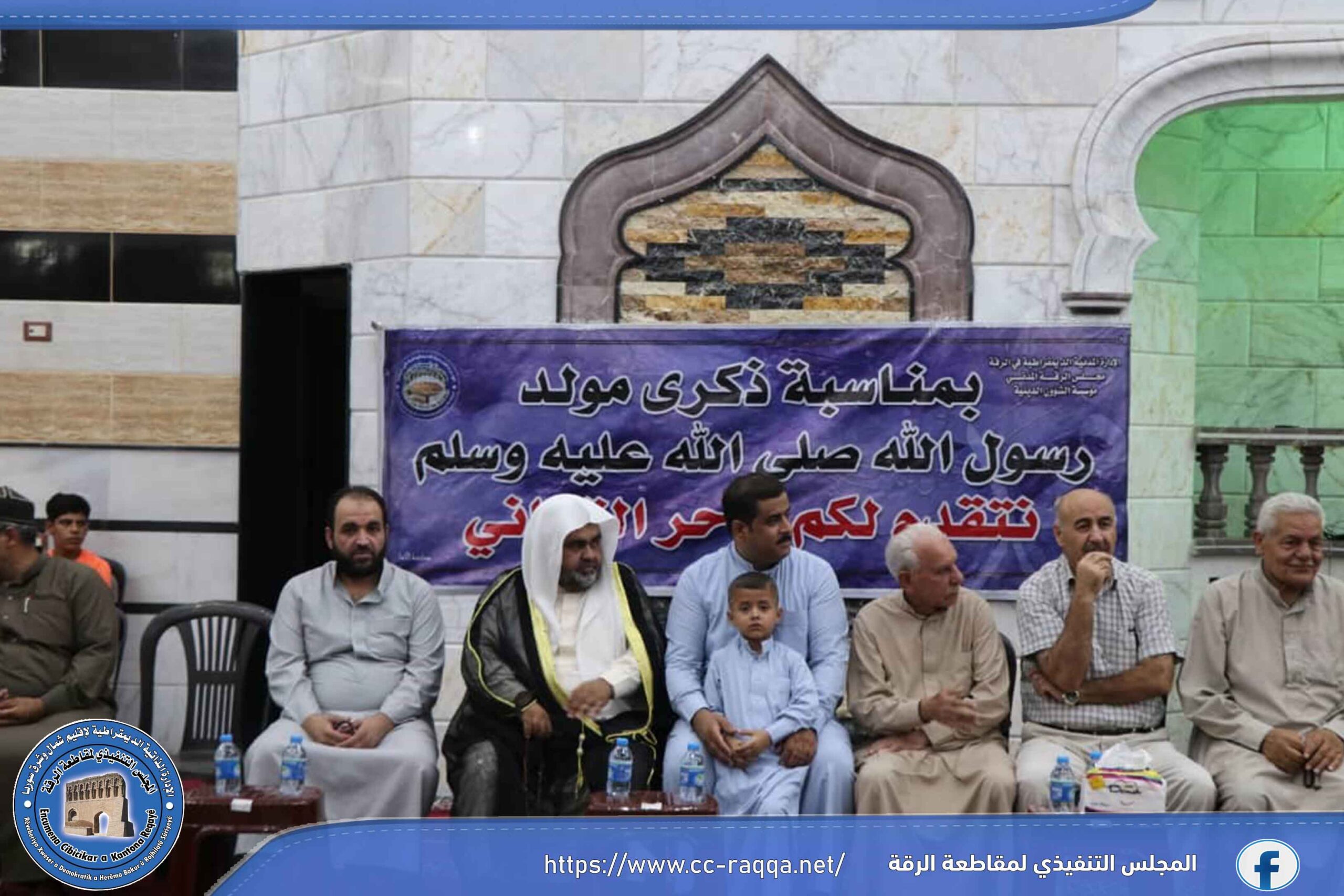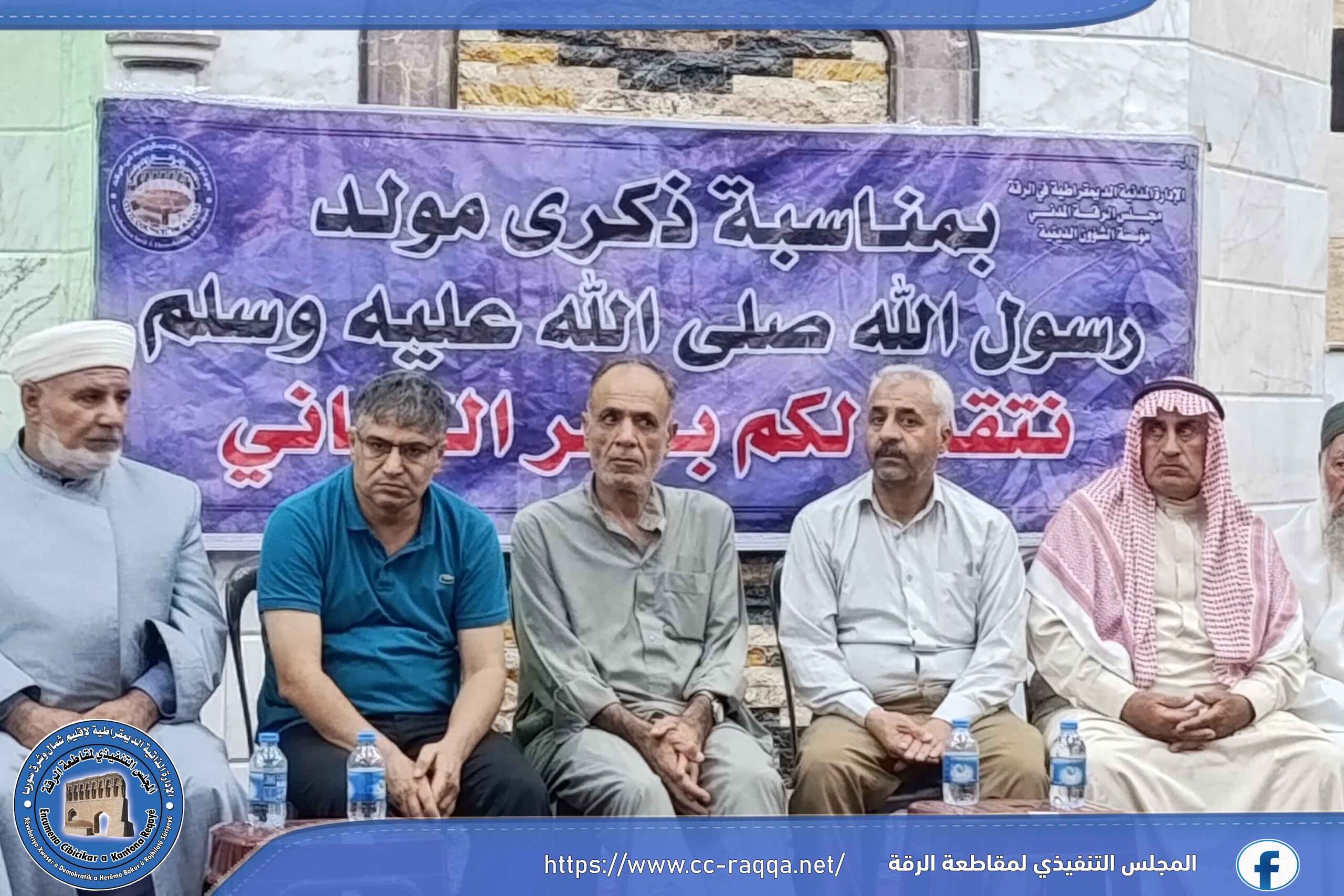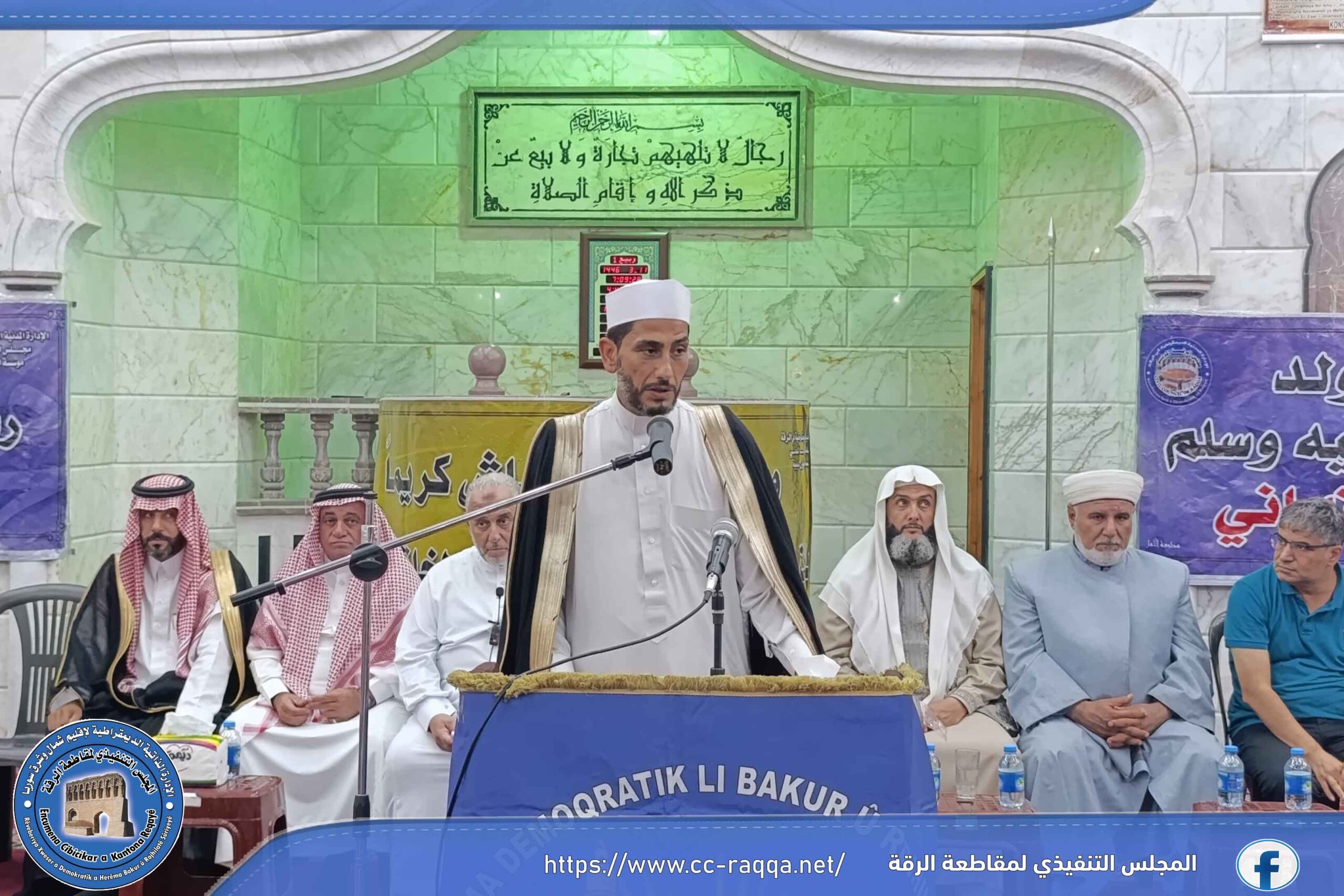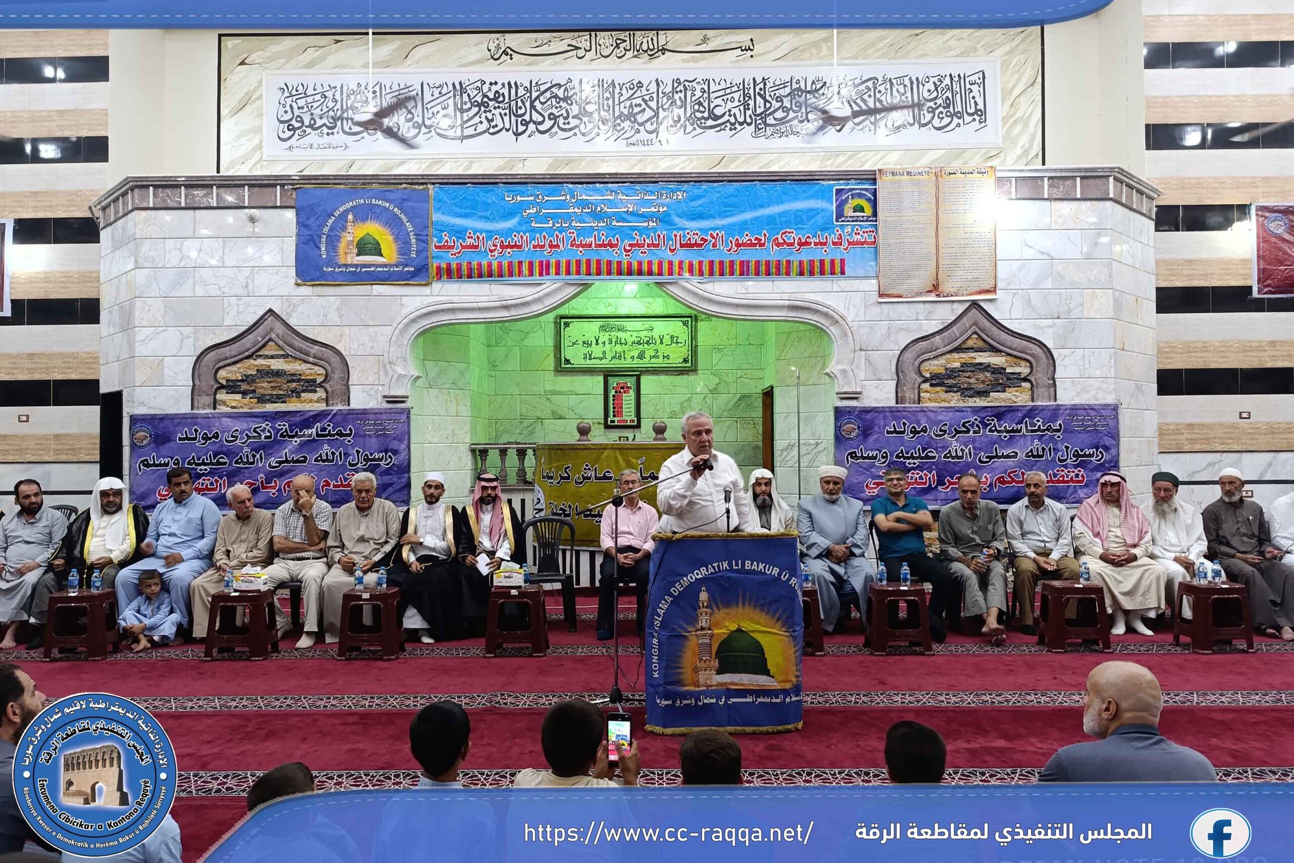 نظم المجلس الديني في مدينة الرقة وريفها، والتابع للمؤتمر الإسلامي الديمقراطي في إقليم شمال وشرق سوريا أمس 15 أيلول والمصادف لـ 12 ربيع الأول من عام 1446 هجري، احتفالاً بمناسبة مولد النبي محمد صلّى الله عليه وسلم في مسجد عبد الرحمن بن عوف، بحضور ممثلين عن المجلس التنفيذي لمقاطعة الرقة وعدد من شيوخ الدين وأهالي الحي.