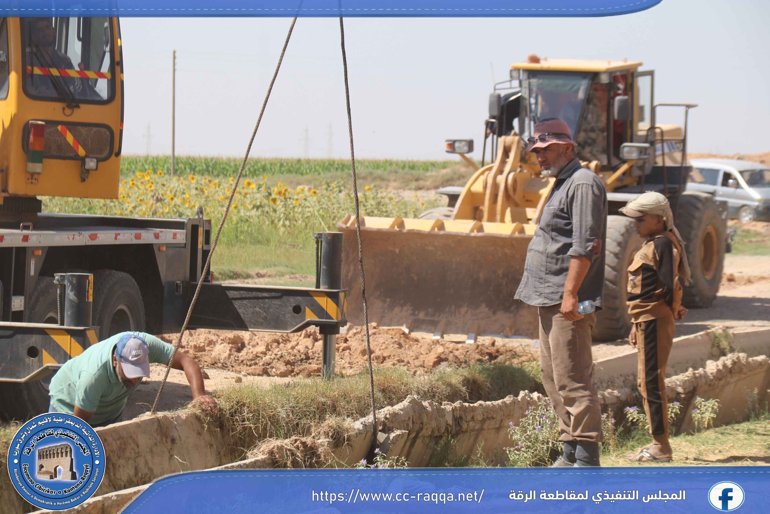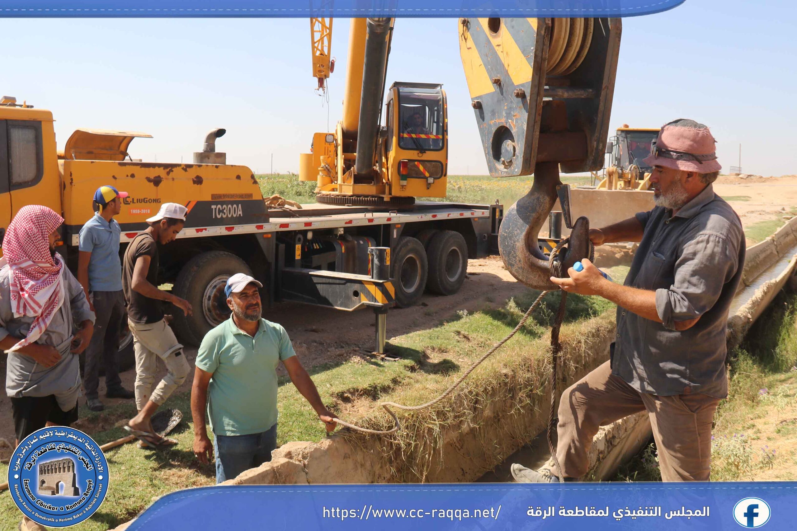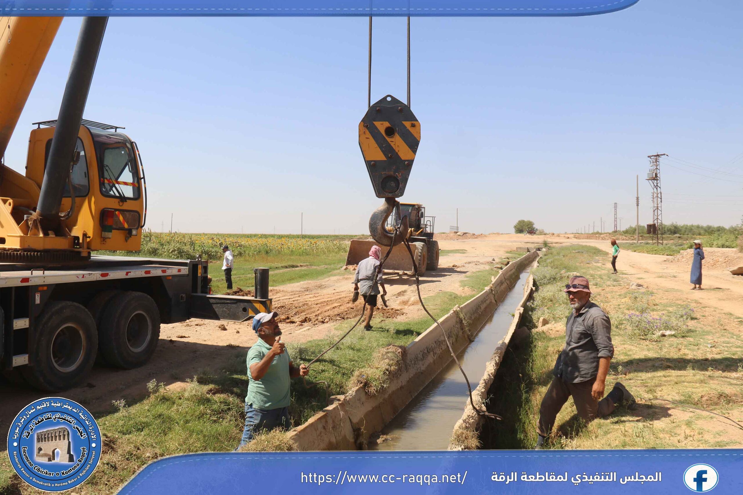 بعد قيام ورشة الرافعة التابعة لقسم الصيانة في مكتب الري أعمالها في معالجة وإصلاح الفلوم في منطقة بئر الهشم، تم التوجه إلى الريف الشرقي بناءاً على الكتب المقدمة، حيث تمت معالجة 40 فلومة قياس 1600 على قناة 32 جماسة في الفيضة.