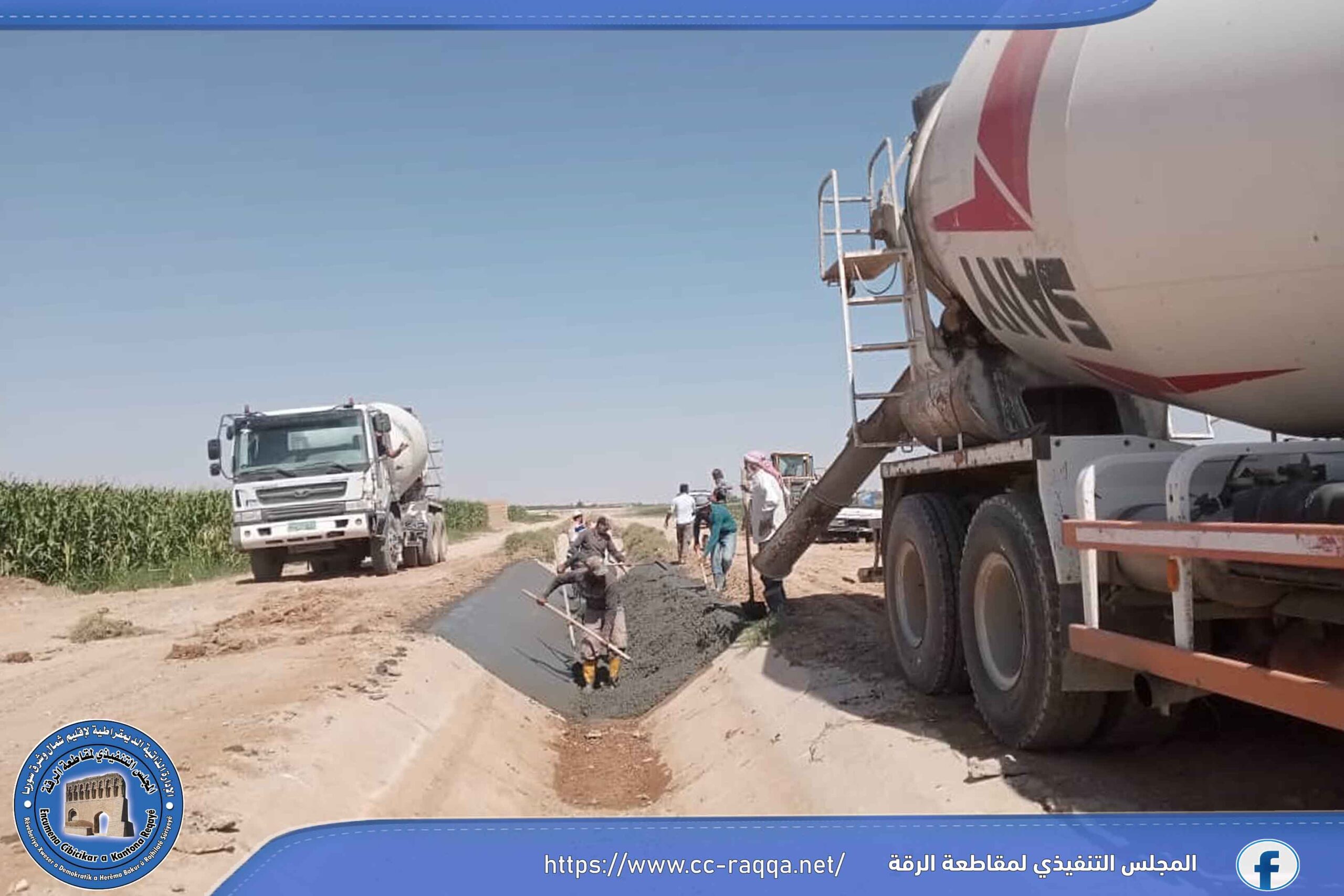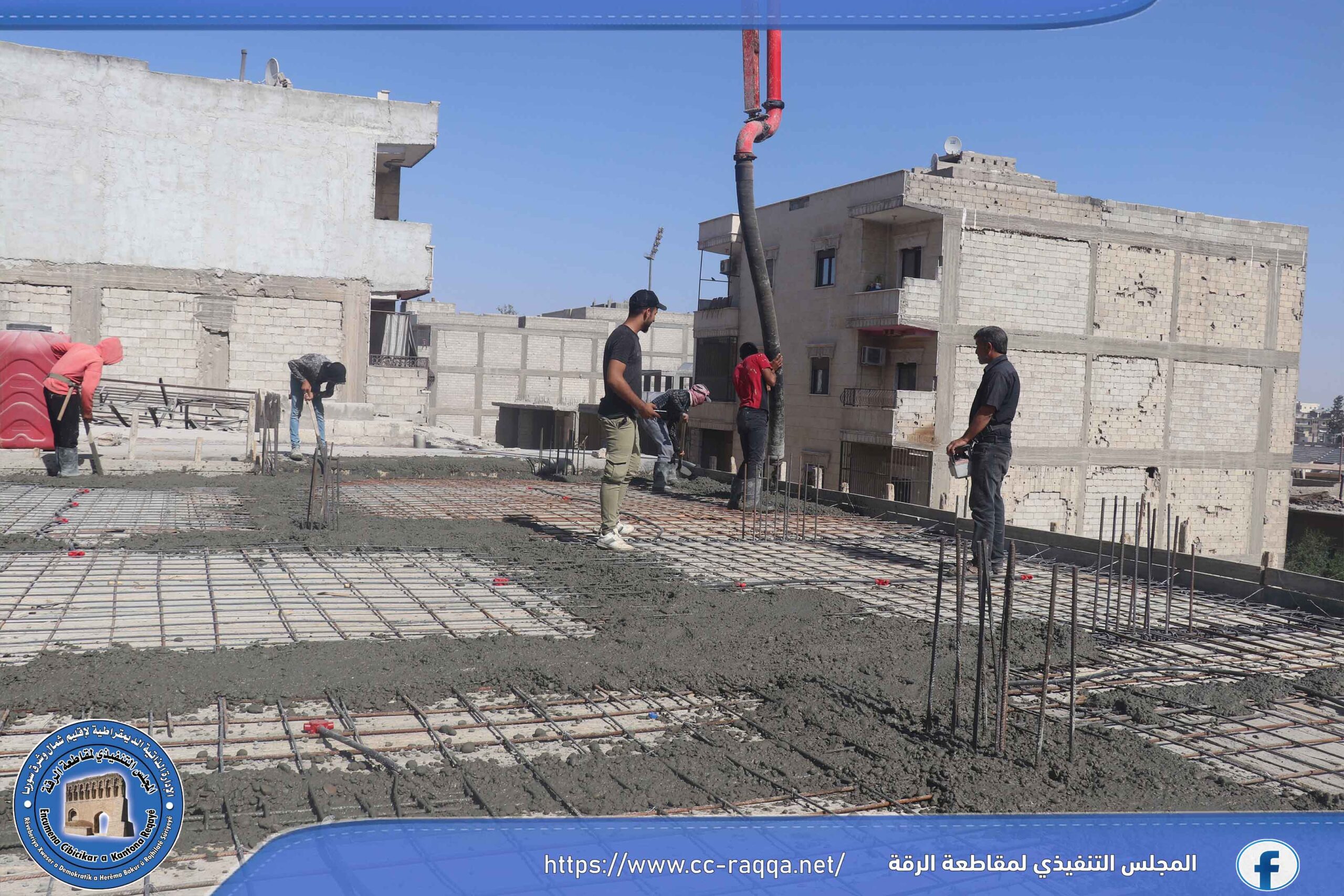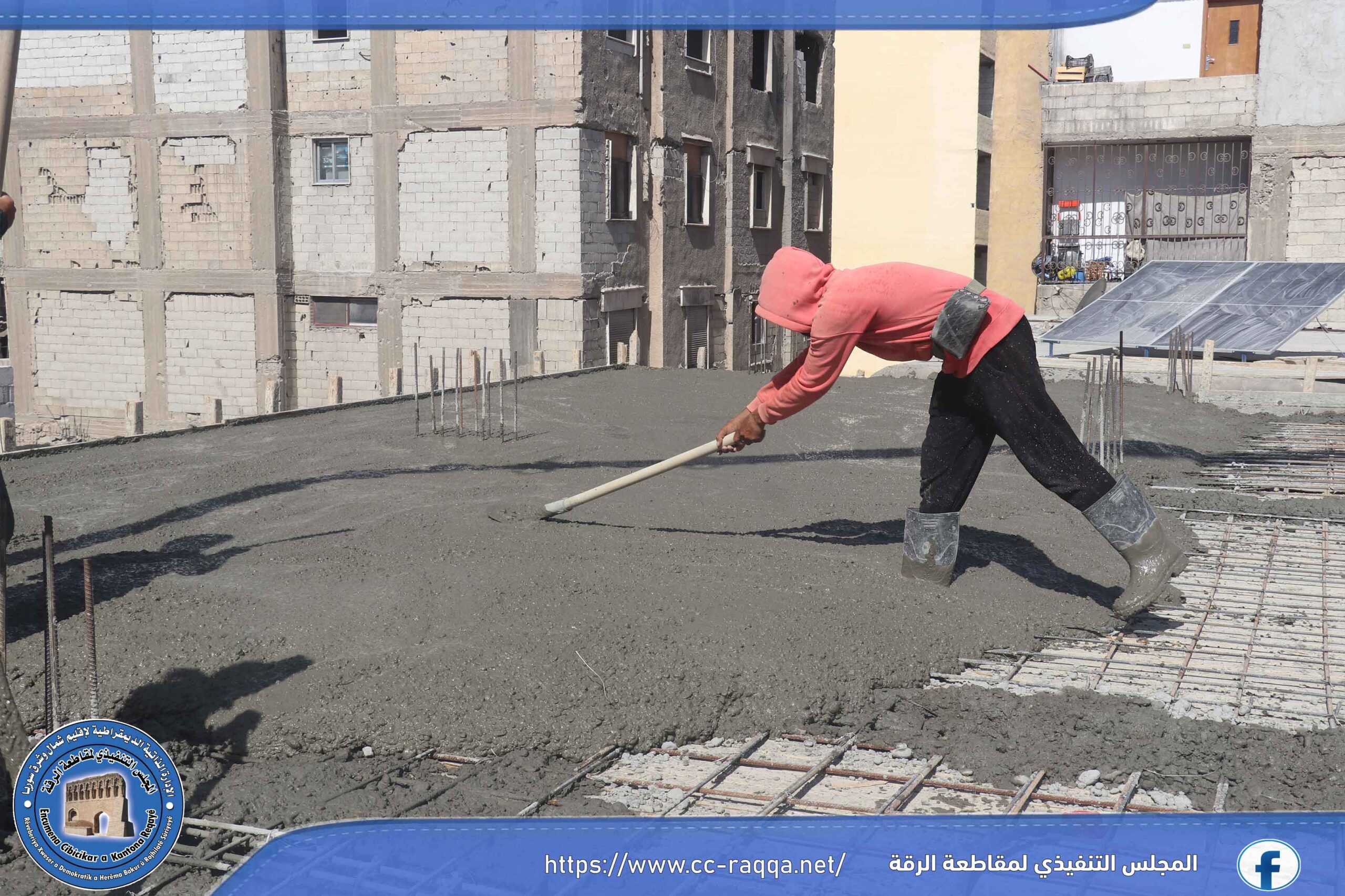 أنهى مجبل شمس الفرات التابع لهيئة الاقتصاد في مقاطعة الرقة وخلال الأسبوع الجاري، أعماله في صب عدة مواقع خاصة بالأهالي في مدينة الرقة، كان منها موقع في حي الفردوس، بالإضافة لموقع آخر في منطقة الماكف، بكمية تقدر بأكثر من 400 متر مكعب وفق عيار 300 كغ متر مكعب.