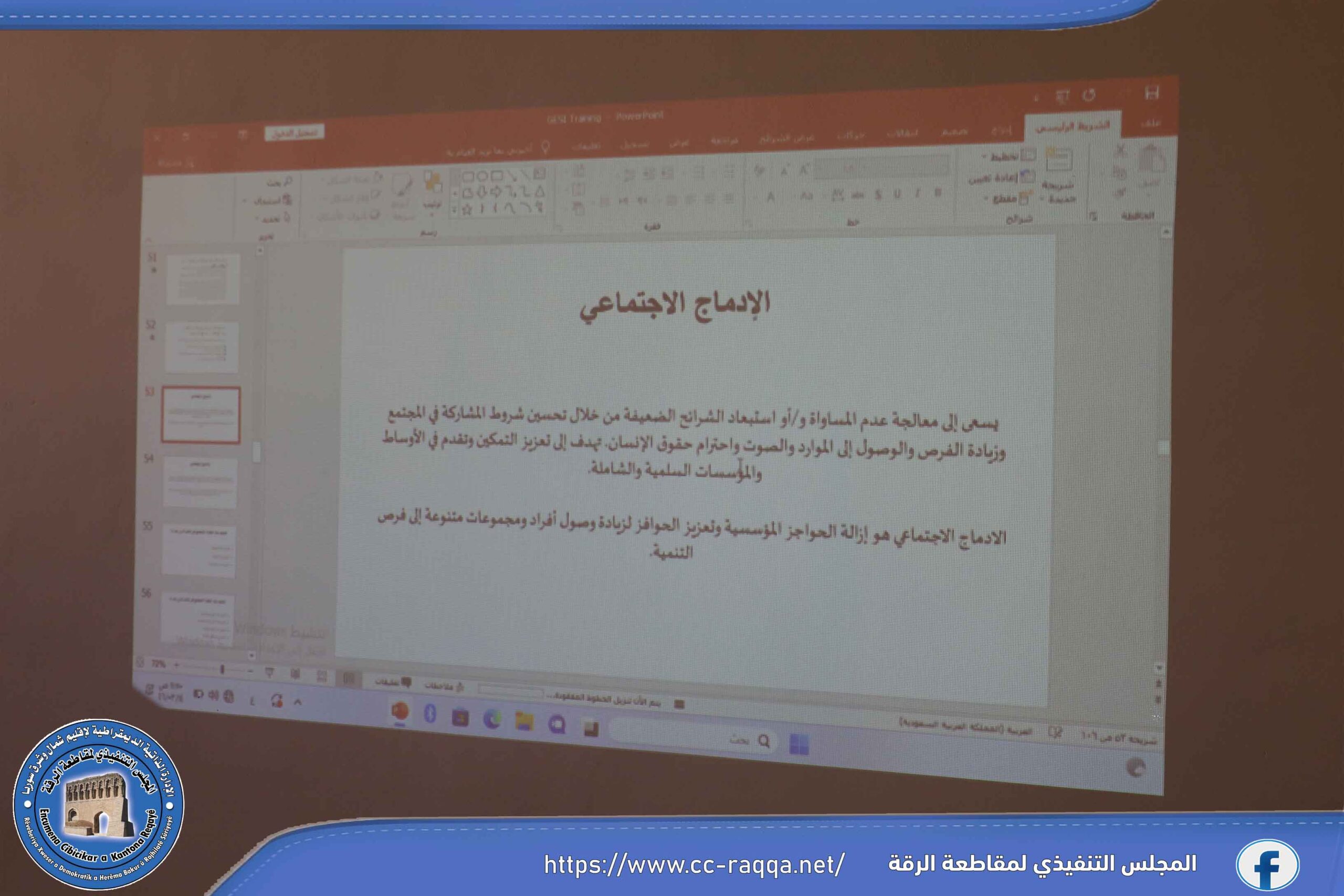 أطلق المجلس التنفيذي لمقاطعة الرقة وبالتعاون مع برنامج فرات، ومع بداية شهر أيلول الجاري، دورة تدريبية في مجال الحاسوب (مرحلة متقدمة)، بالإضافة لجلسة حوارية حول الاندماج المجتمعي والمساواة بين الجنسين، وذلك ضمن مشروع رفع القدرات.