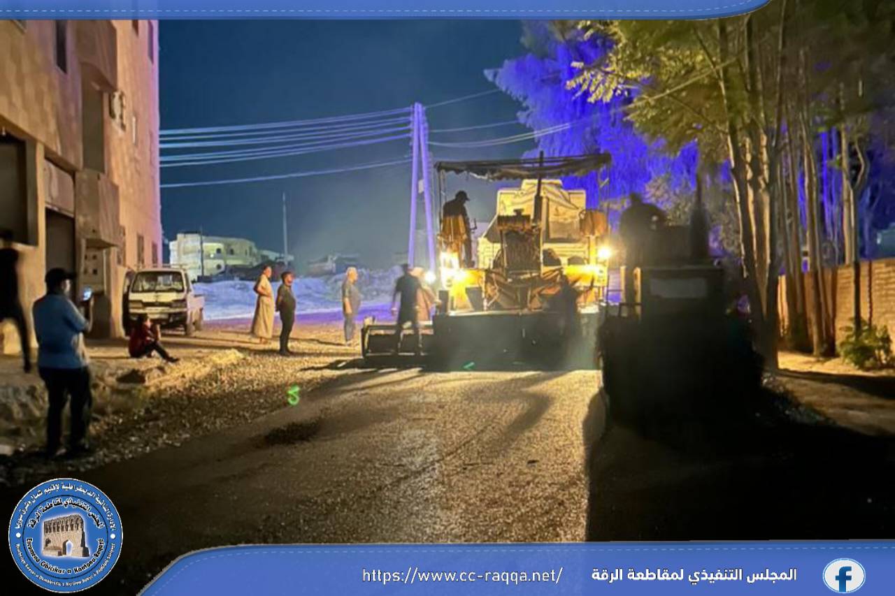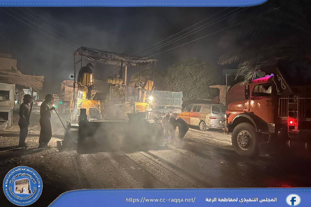 تعبيد طريقين رئيسيين في منطقة الكسرات بريف الرقة الجنوبي