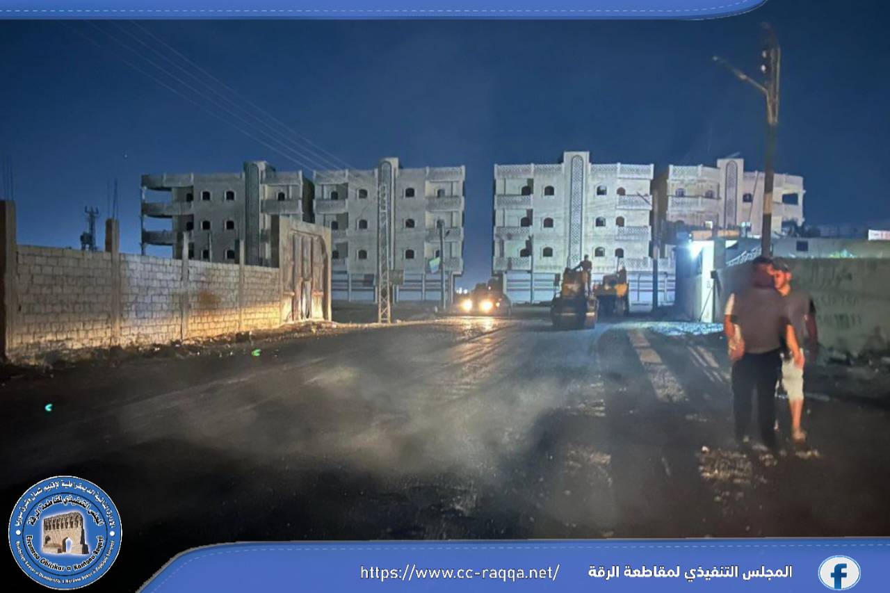 عملت ورشات بلدية الشعب في الرقة والتابعة لهيئة الإدارة المحلية والبلديات في مقاطعة الرقة صباح اليوم ٢٠ أيلول، على تعبيد شارع الشاليهات والممتد من الجسر القديم حتى طريق حويجة السوافي، بالإضافة للطريق الممتد من دوار الجسر إلى طريق كسرة عفنان بريف الرقة الجنوبي.