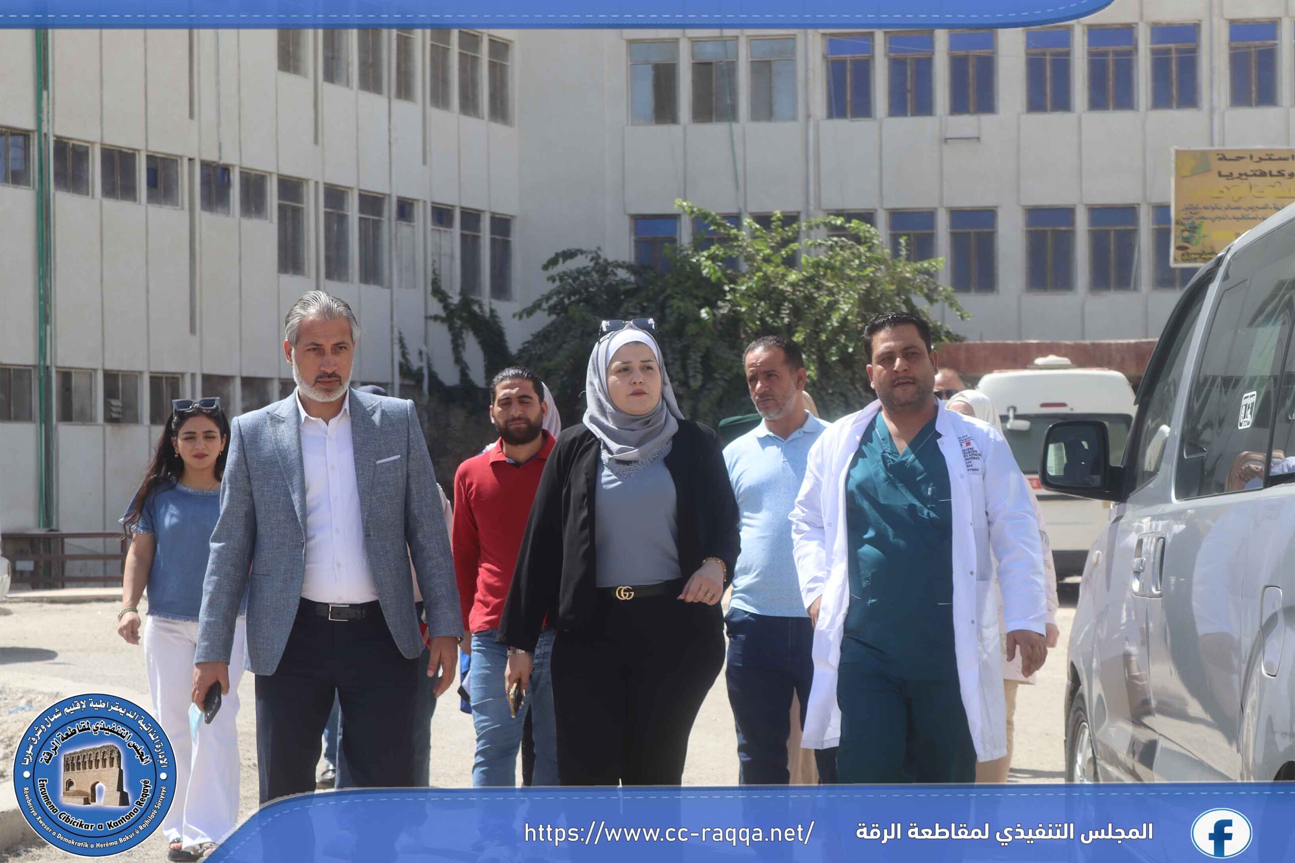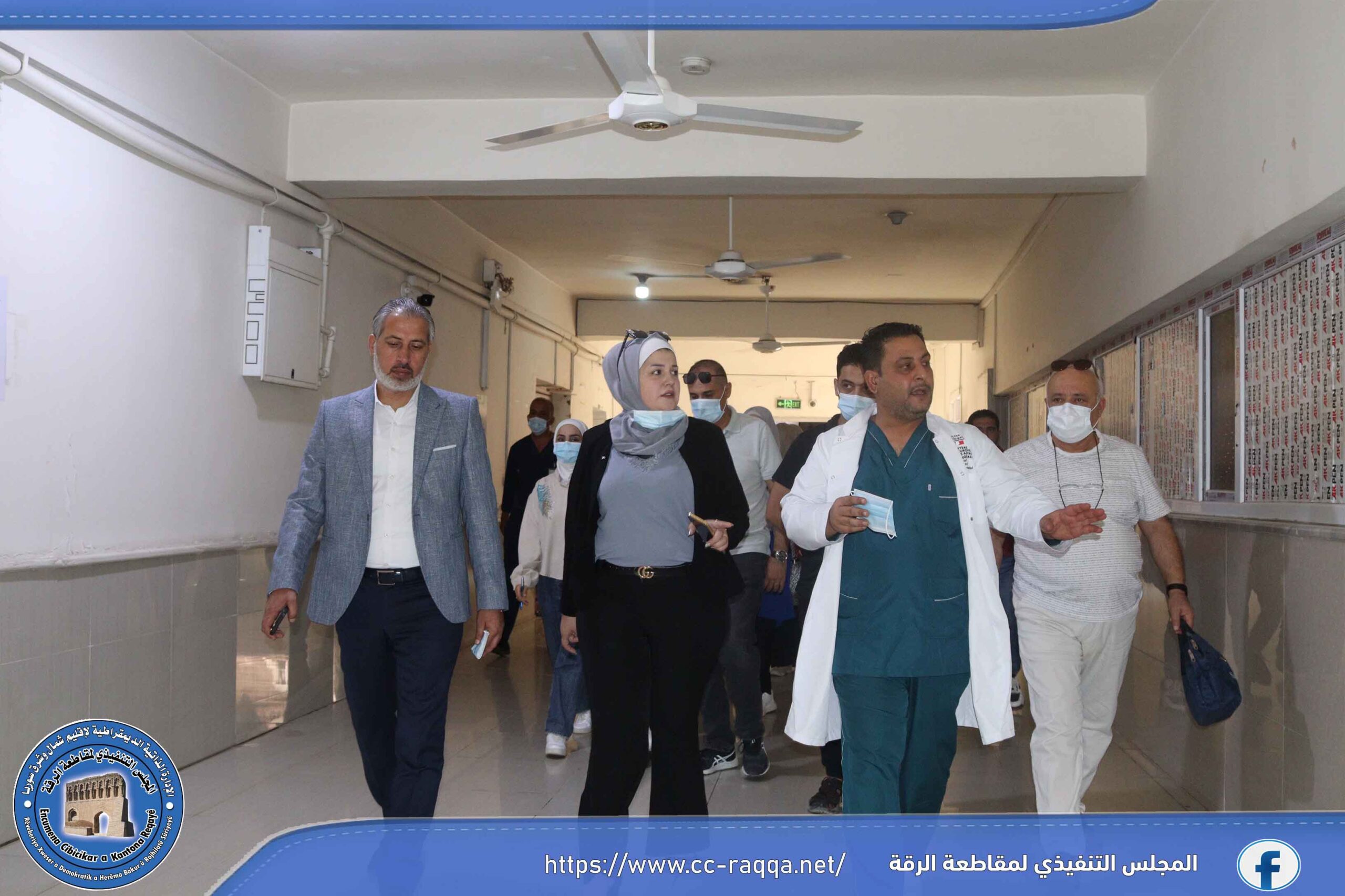 أجرى وفد من هيئة الصحة في إقليم شمال وشرق سوريا وعلى مدار يومين متتاليين (21 _ 22) أيلول، زيارة إلى كل من مشفى الرقة الوطني ومشفى الأطفال ومشفى التوليد، شملت عدة أقسام كان منها (العيادات الخارجية _ الإسعاف _ الحروق _ الأشعة _ المخبر الاسعافي _ العناية المركزية _ الجراحة _ الداخلية _ الأطراف الصناعية _ المعالجة الفيزيائية _ الكلية _ الأورام _ التلاسيميا _ بنك الدم).