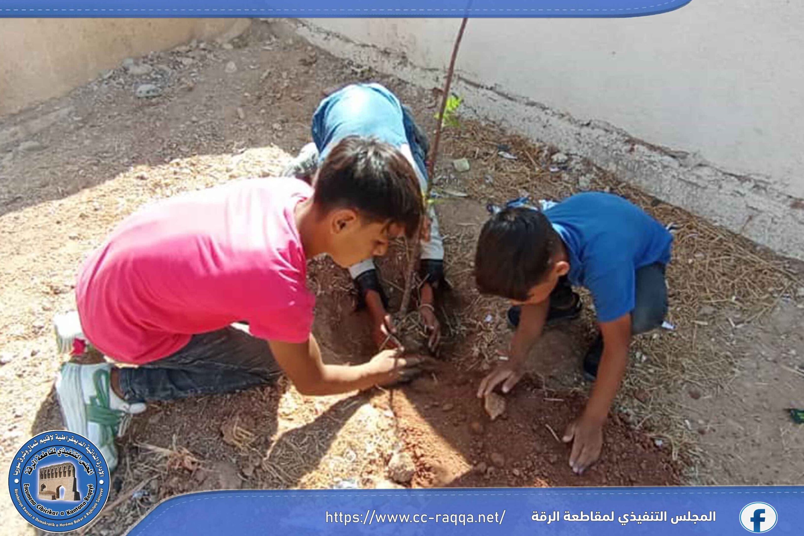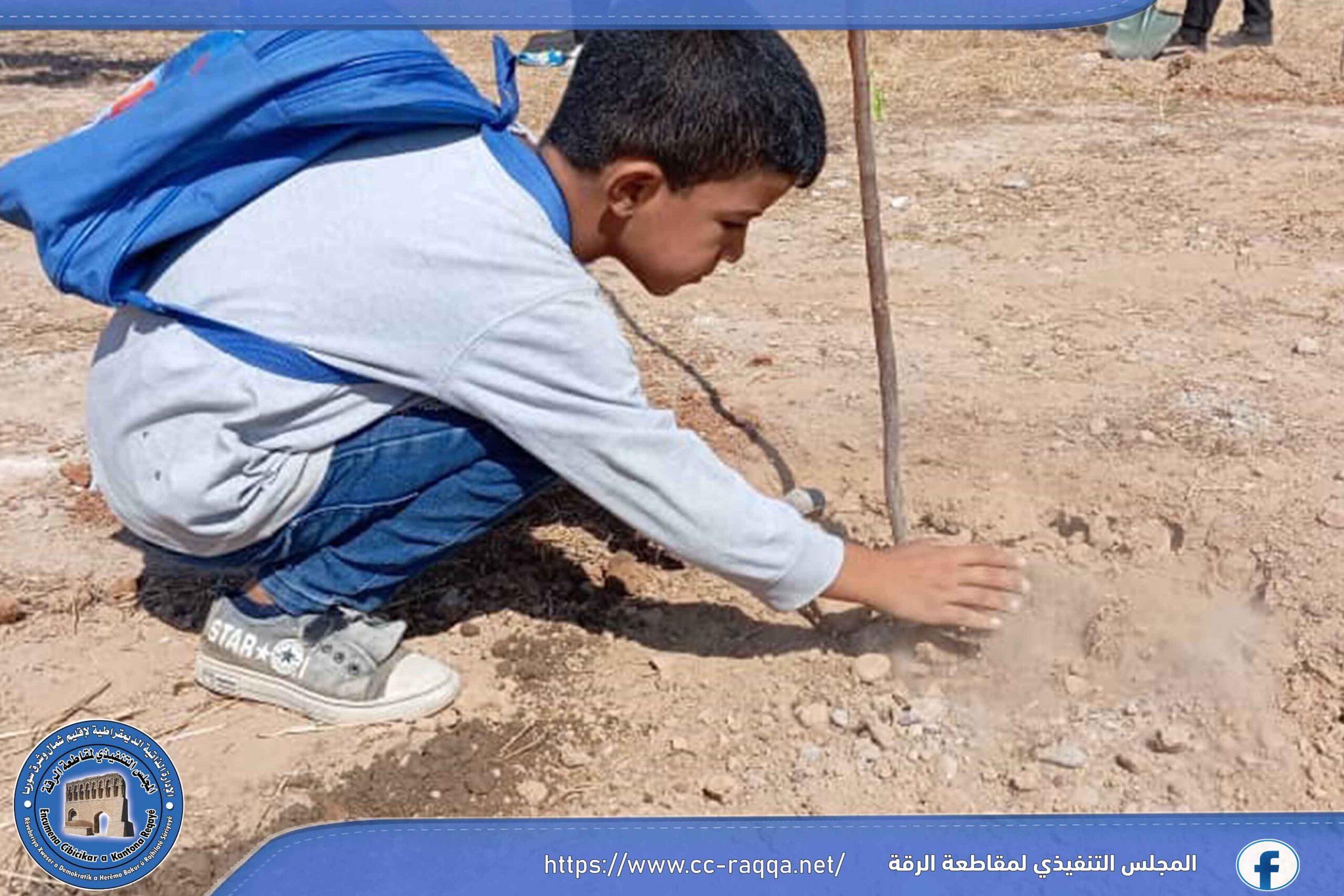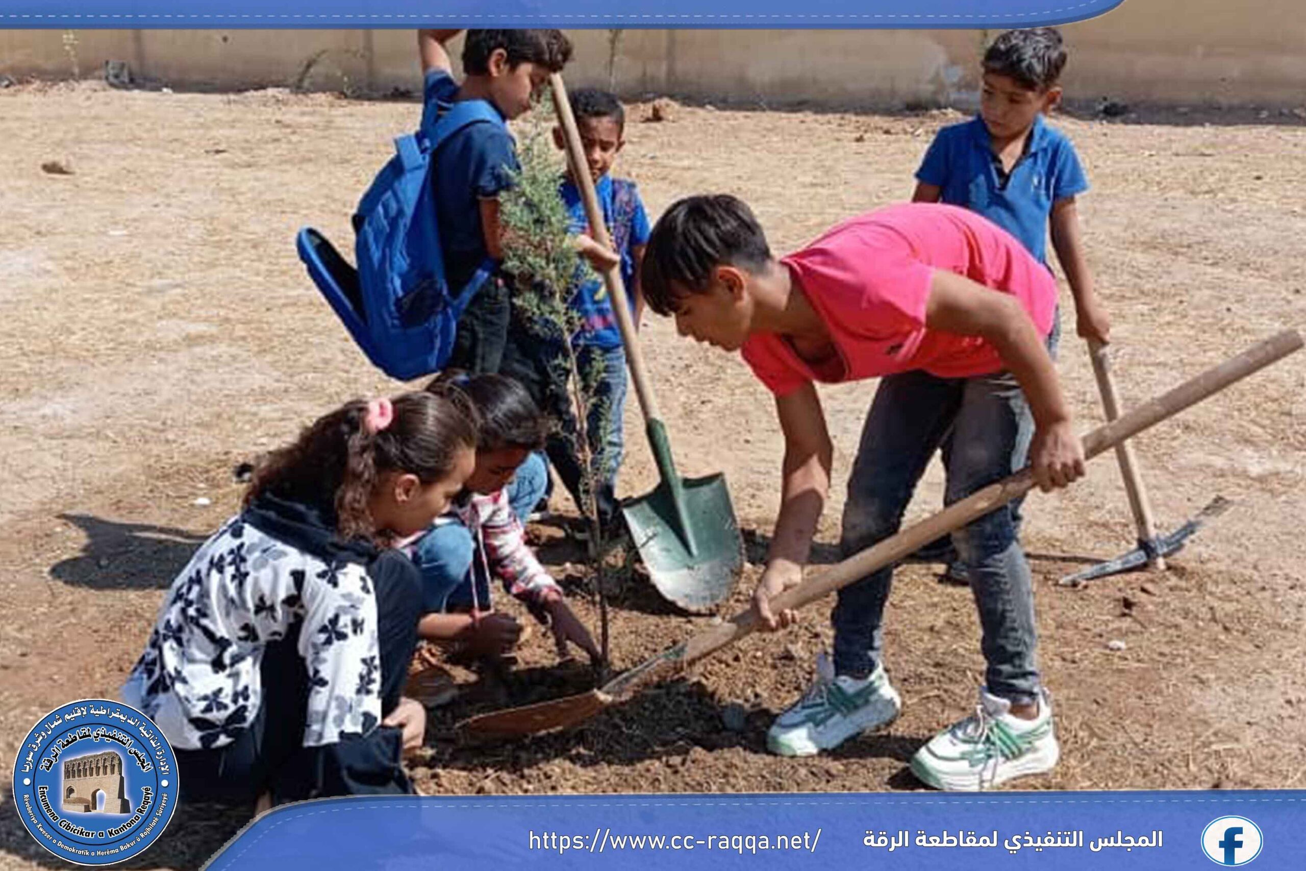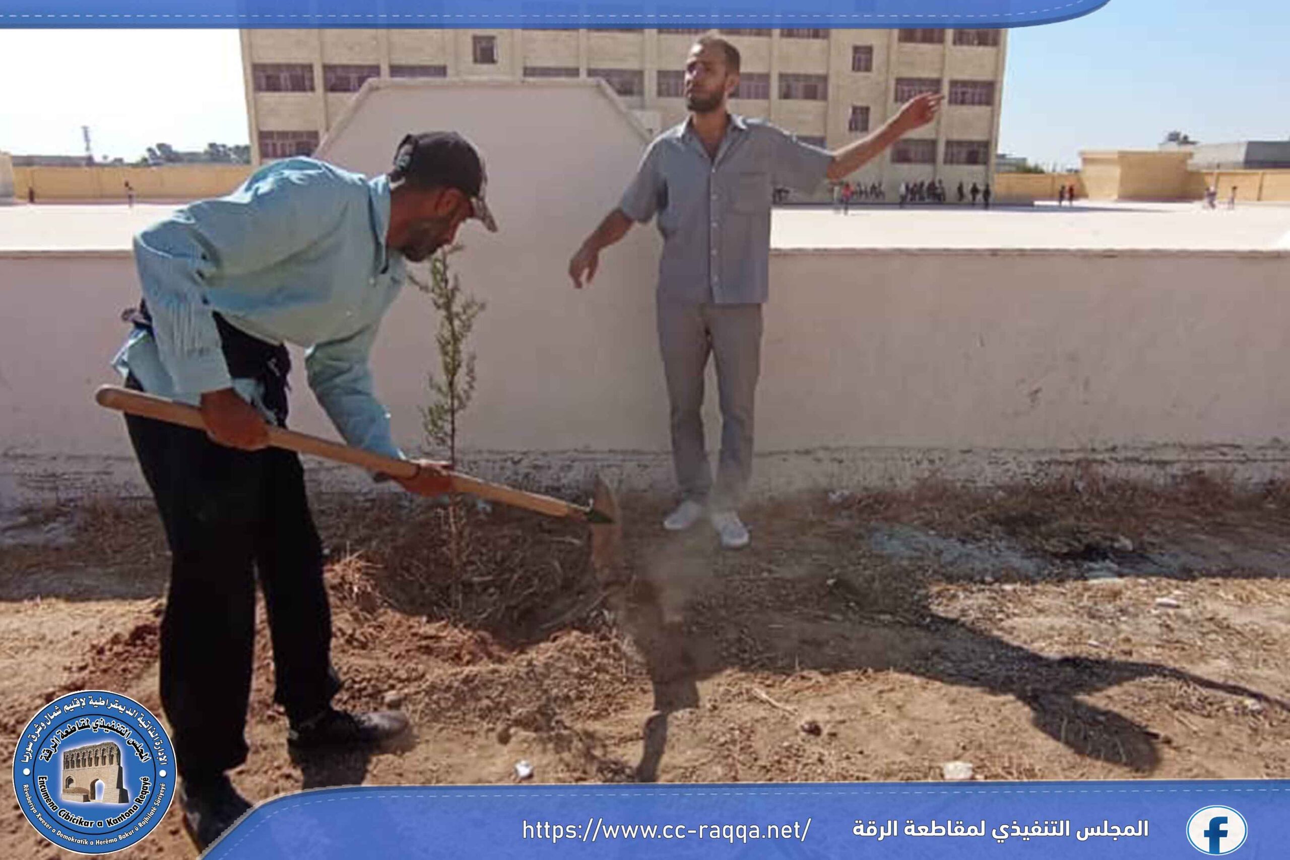 ضمن الخطط الموضوعة من قبل هيئة التربية والتعليم في مقاطعة الرقة، عمل مكتب الأنشطة المدرسية التابع للجنة التعليم، وبالتعاون مع دائرة الحدائق والتشجير التابع لبلدية الشعب في الرقة صباح اليوم 23 أيلول، على زراعة 82 شجرة في كل من حدائق المدارس التالية: (أبي تمام _ السباهية الغربية _ الشهيد عبد الله الحسن)، وذلك بهدف زيادة المساحات الخضراء ضمن المدارس.