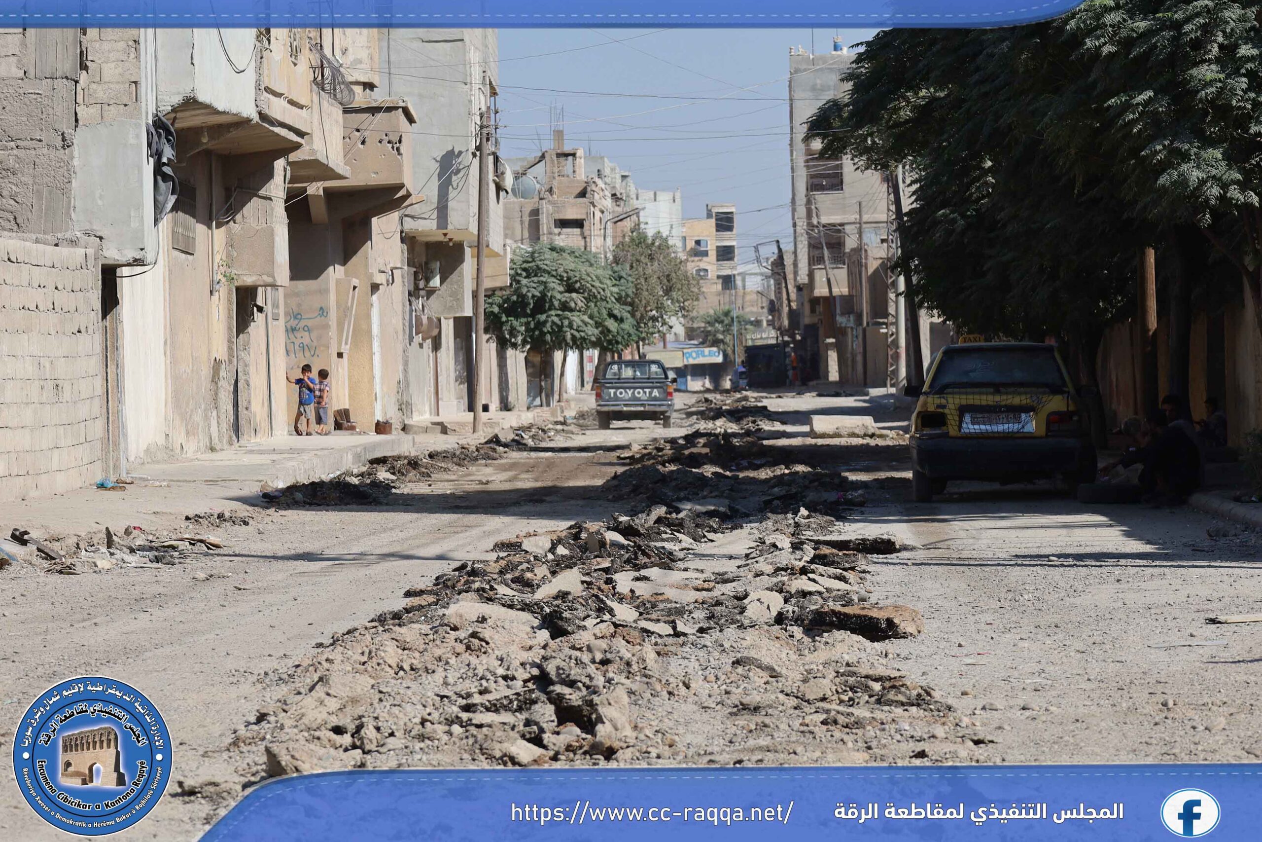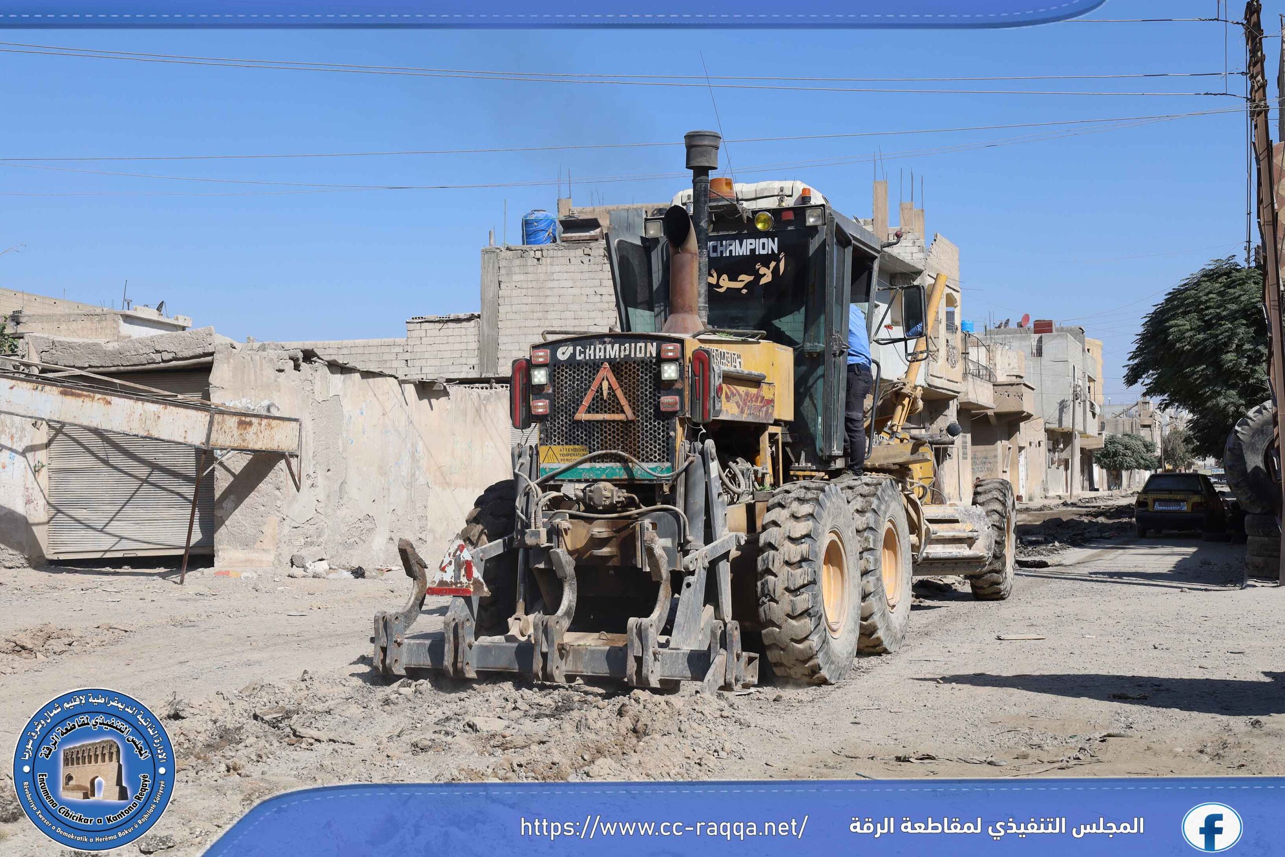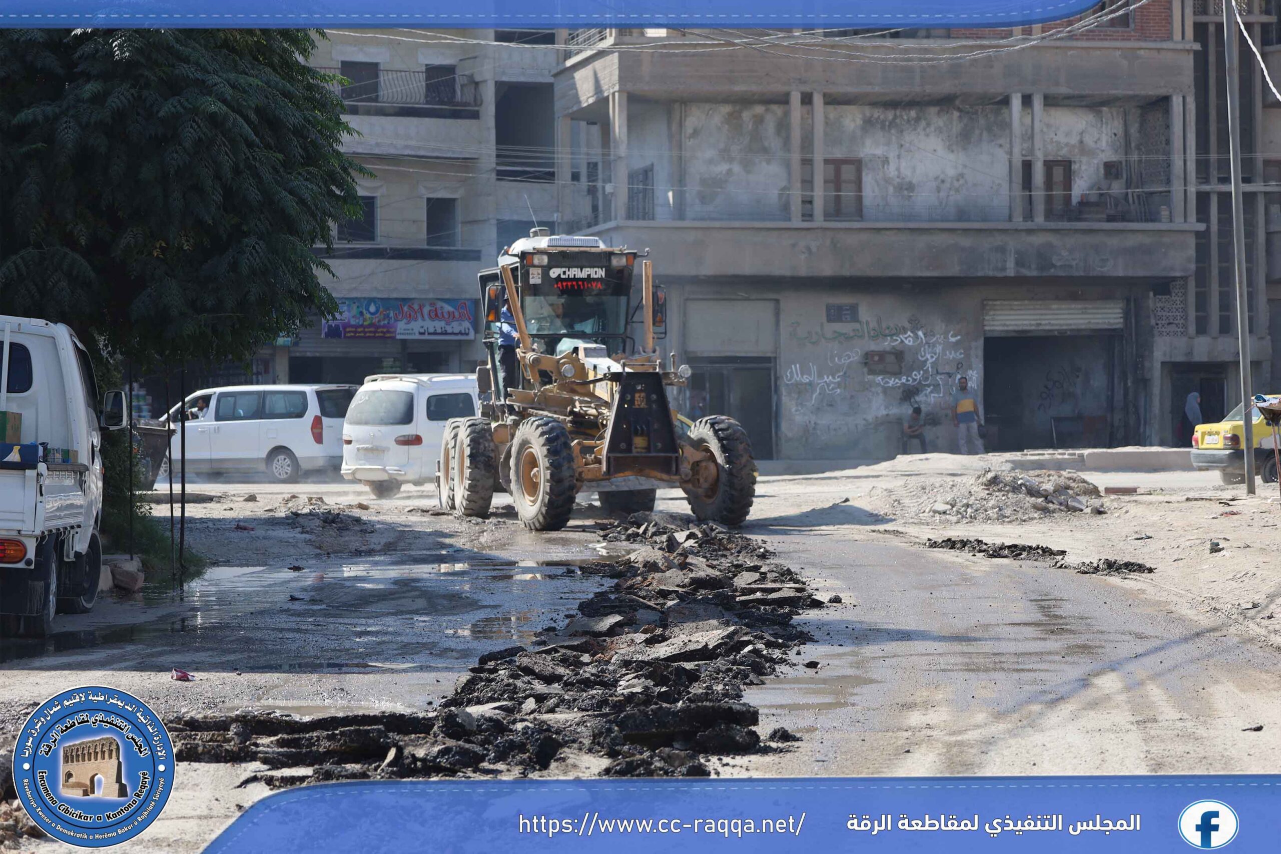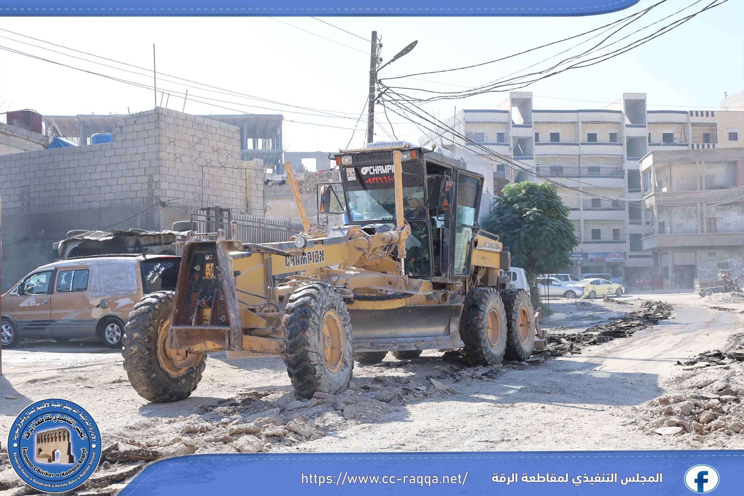 تعمل بلدية الشعب في الرقة على استهداف كافة الشوارع المتضررة في المدينة، ضمن خطة مدروسة لإعادة ترميميها وتعبيدها، حيث باشرت الورشات والآليات التابعة لها صباح اليوم 25 أيلول، بالعمل على قشط وإزالة الإسفلت المتضرر من شارع جامع الروضة، والممتد من شارع المسامك باتجاه دوار الدلة وصولاً إلى كازية الشرطة.