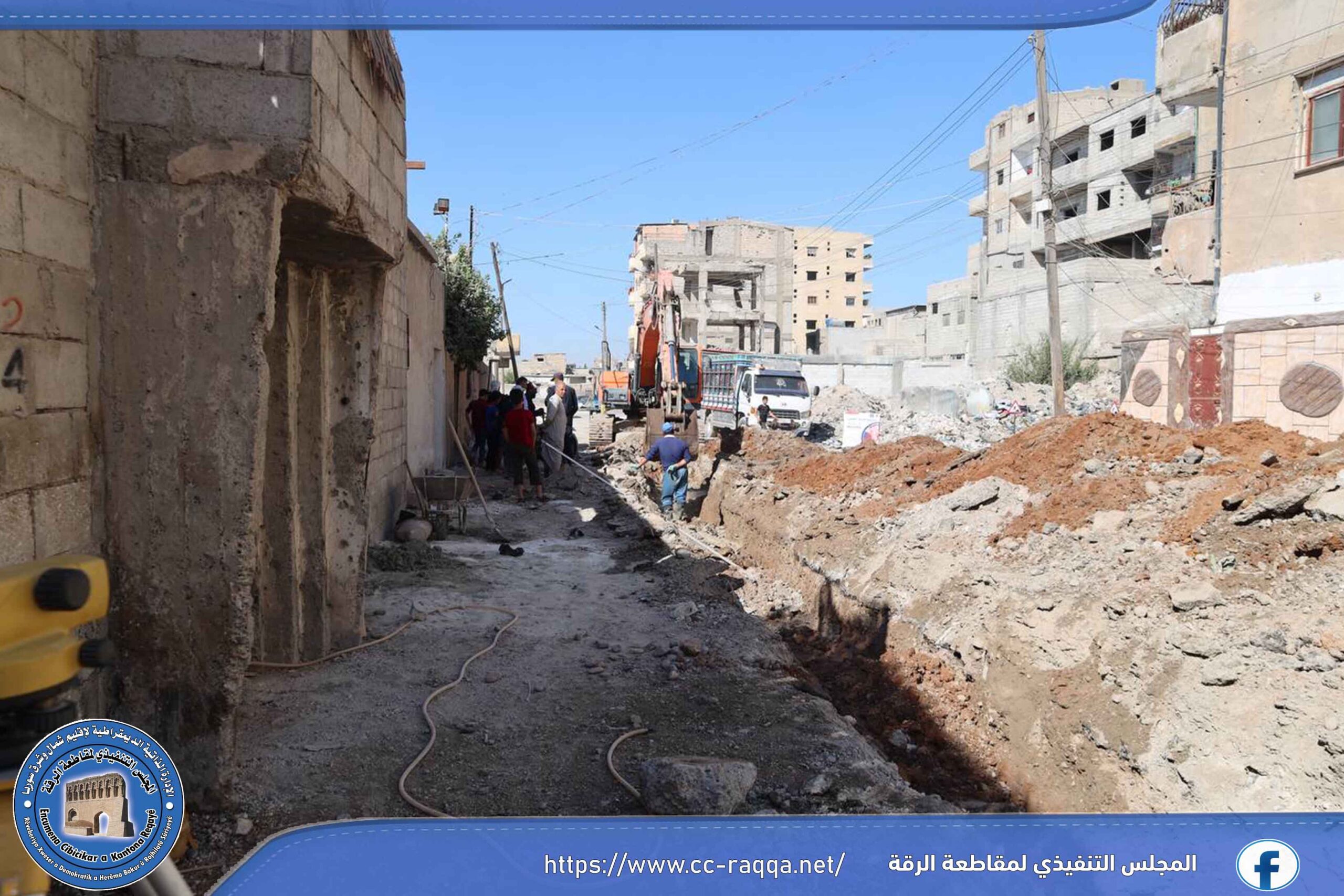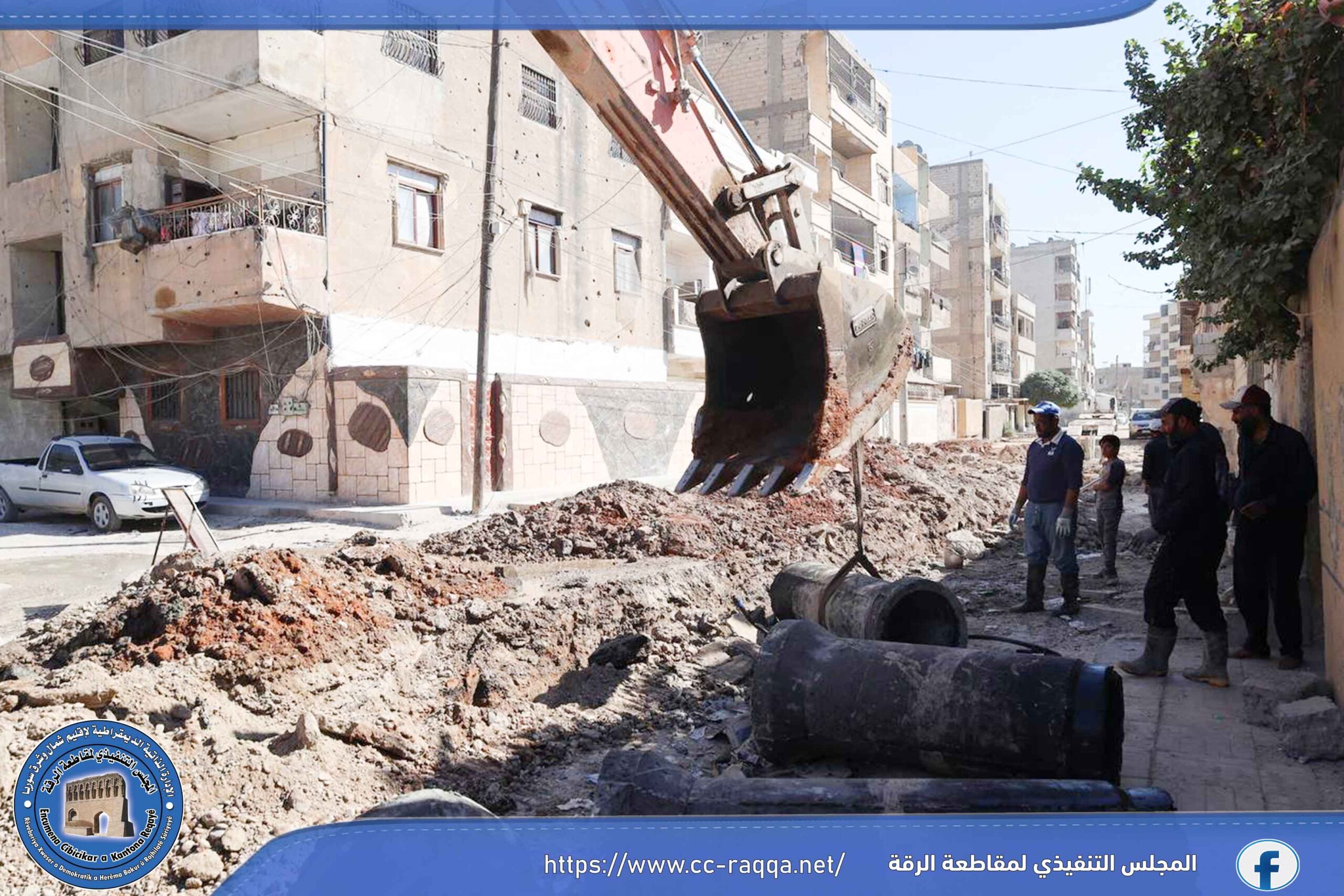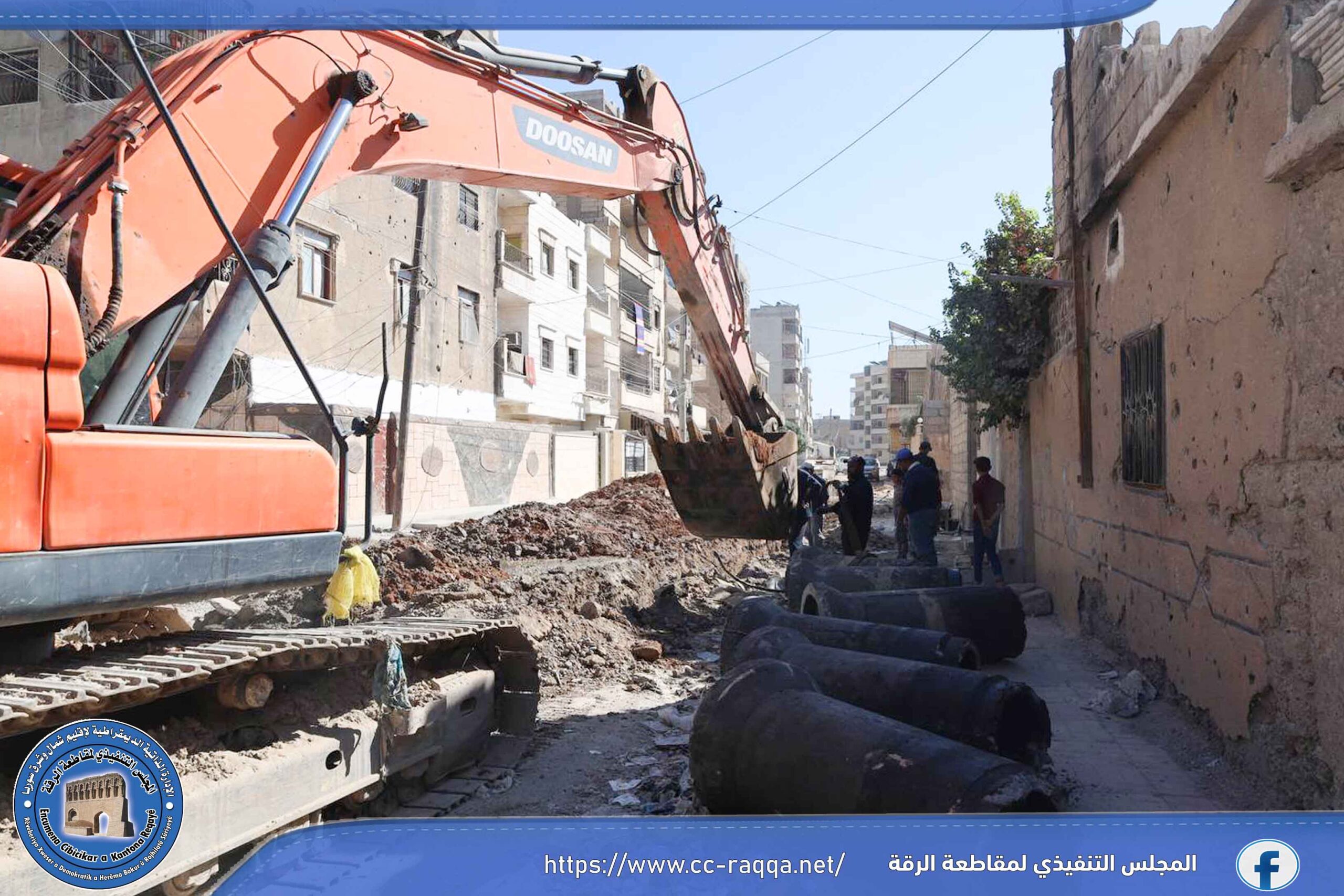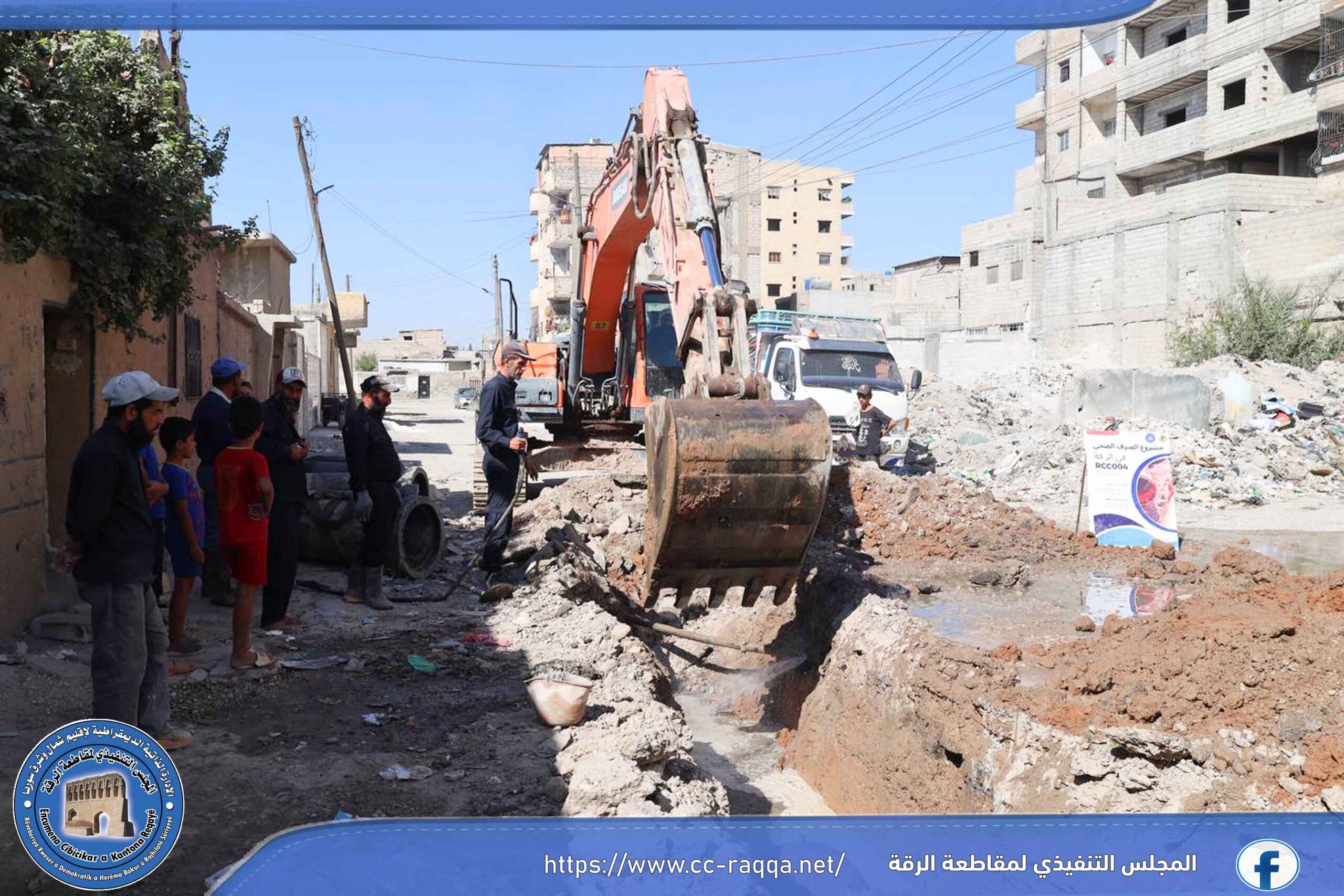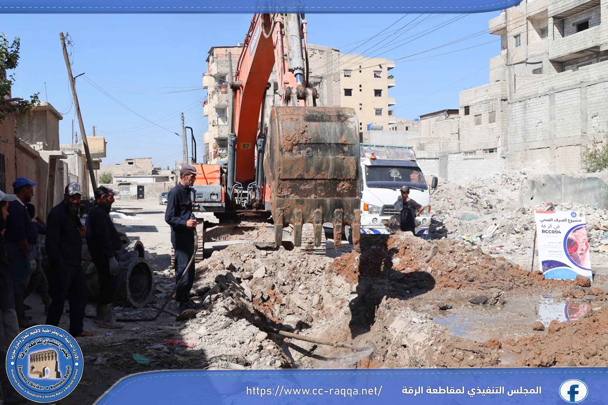 أطلق قسم الصرف الصحي التابع لبلدية الشعب في الرقة صباح اليوم 26 أيلول، مشروع صرف صحي جديد خلف فرن العنيزان في شارع القطار، بطول 200 متر وقطر 40 سم.