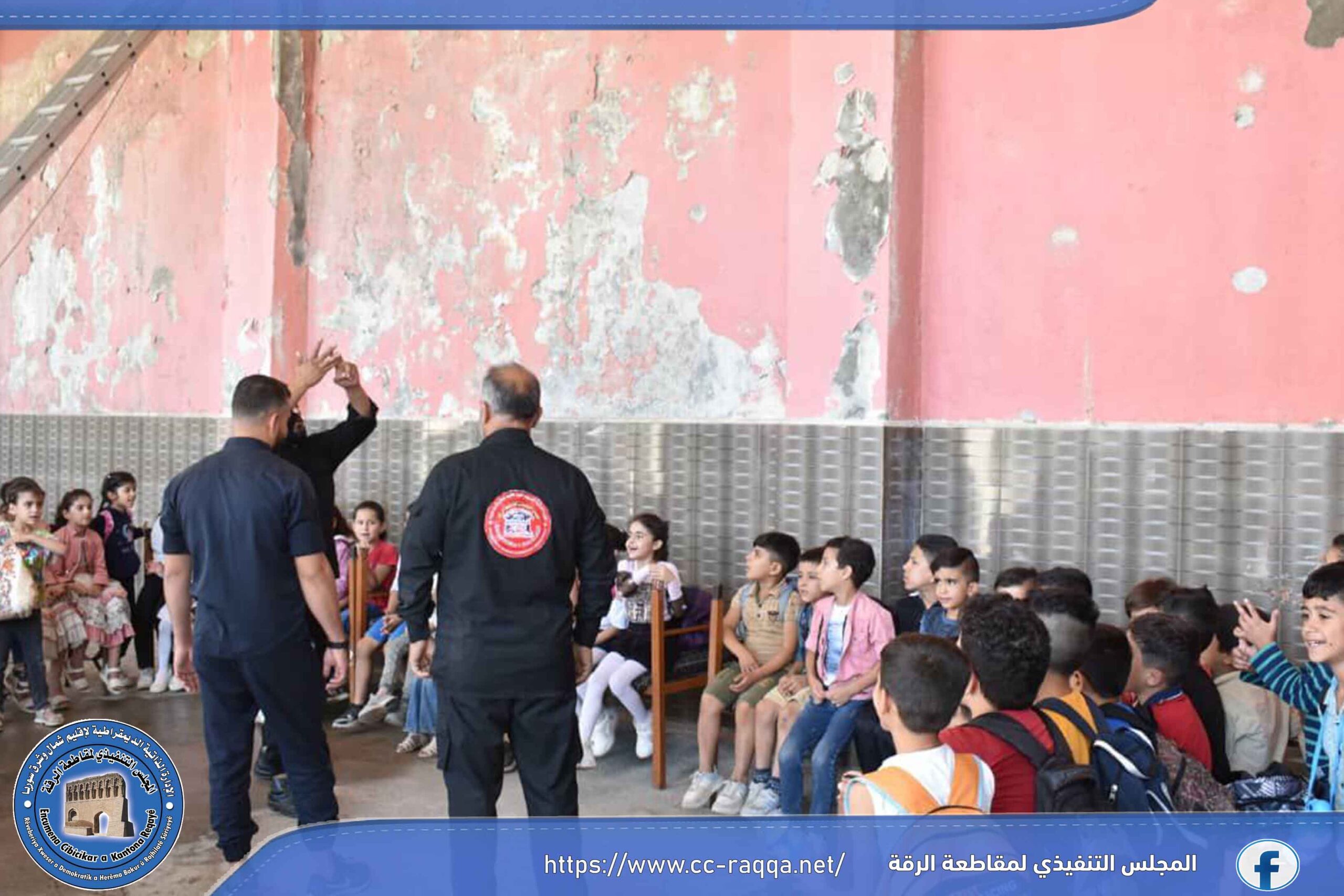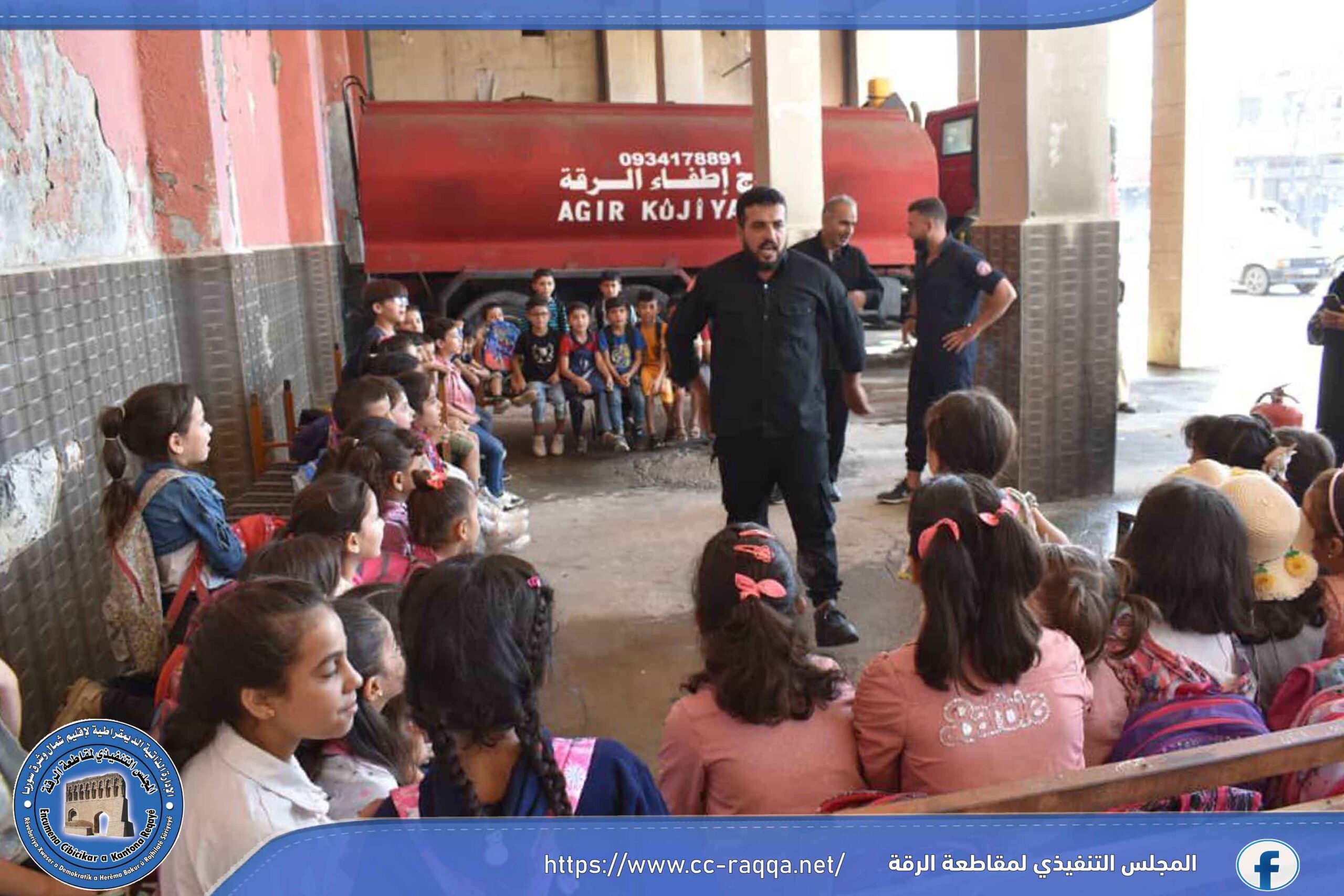 أجرت إحدى رياض الأطفال في مدينة الرقة صباح اليوم 1 تشرين الأول، زيارة إلى قسم الإطفاء التابع لفريق الاستجابة الأولية، بهدف التعرف على عمل رجال الإطفاء وطرق التعامل مع الحرائق، حيث تم افتعال حريق صغير وإخماده من قبل الأطفال.