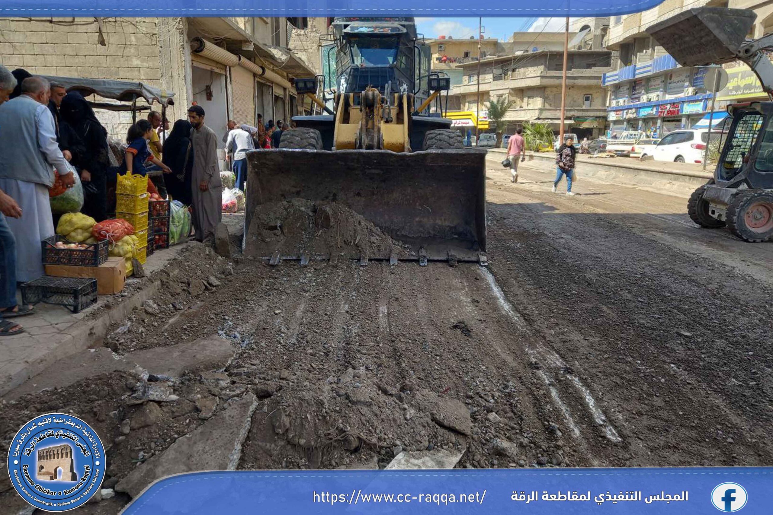 تستمر الورش العاملة في بلدية الشعب في الرقة، أعمال تأهيل الطرق الرئيسية والفرعية ضمن المدينة، حيث تم صباح اليوم 2 تشرين الأول قشط الشارع الرئيسي الممتد من دوار النعيم حتى دوار الدلة، وذلك لمد طبقة من المجبول الإسفلتي خلال الأيام القادمة.