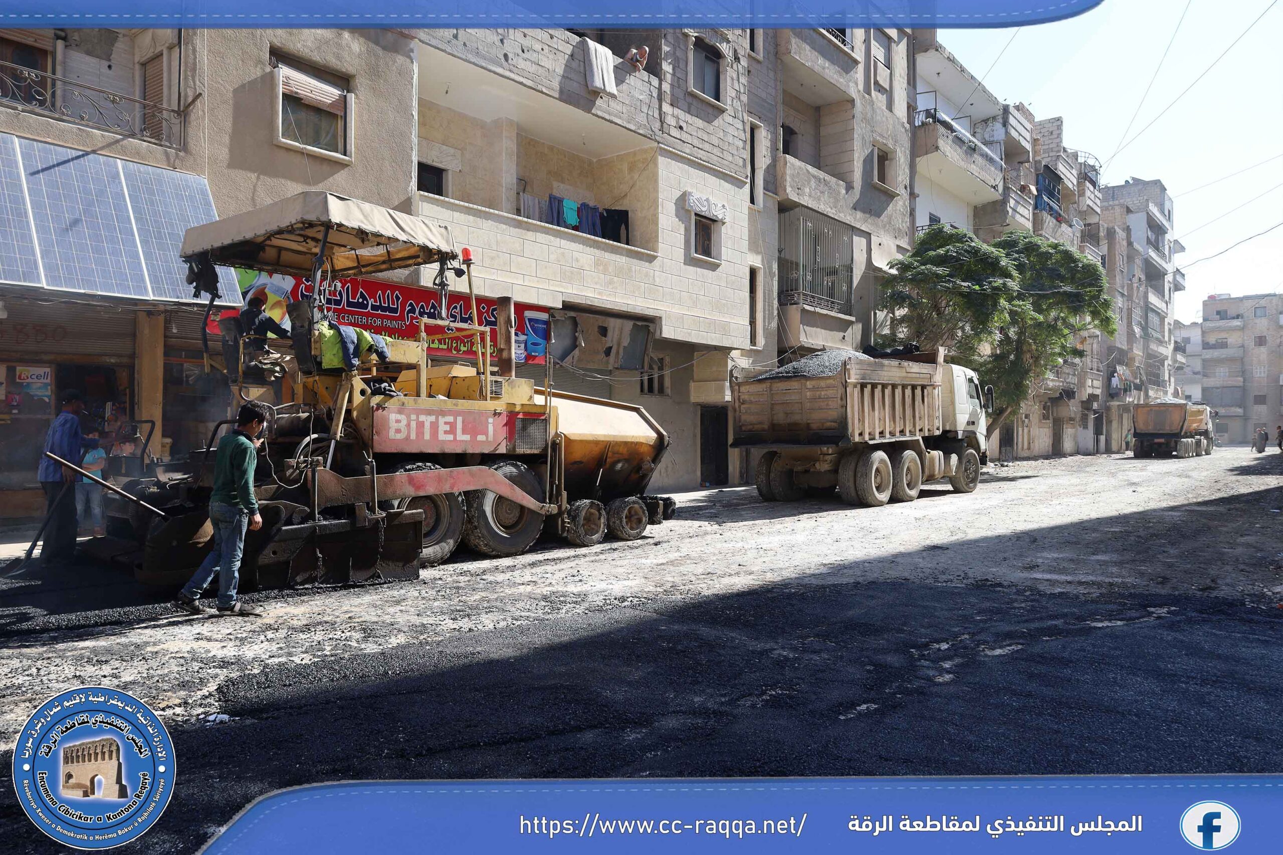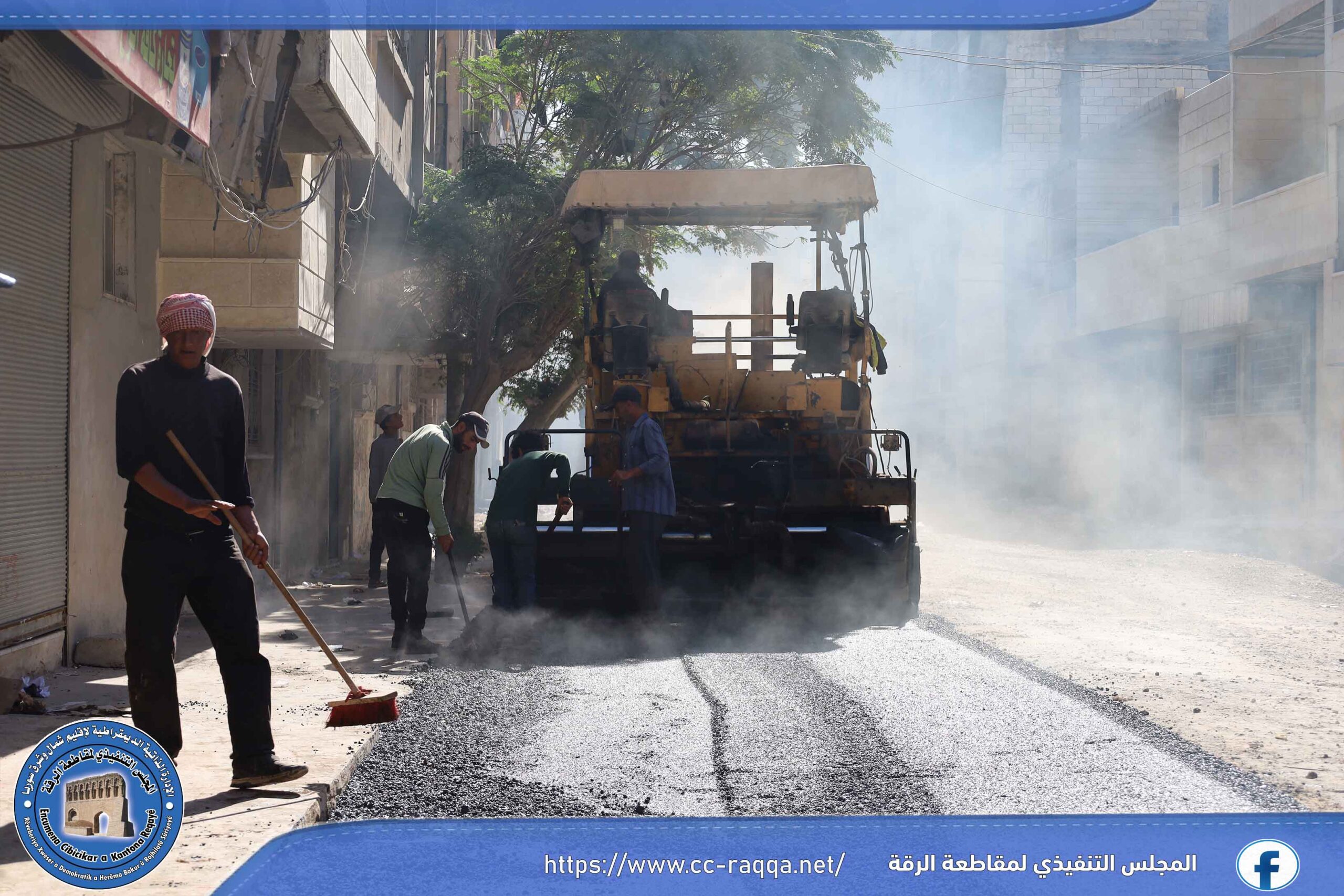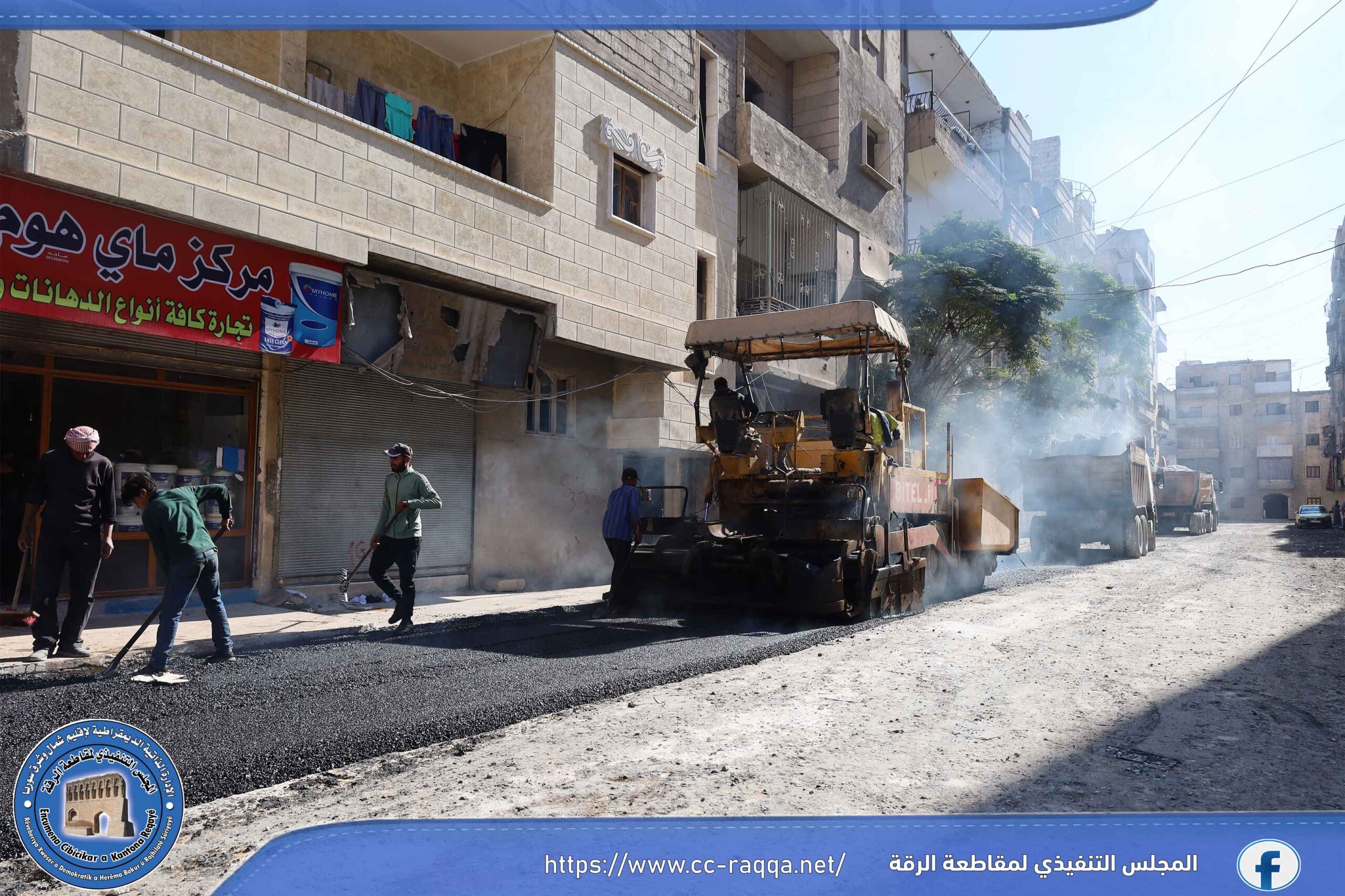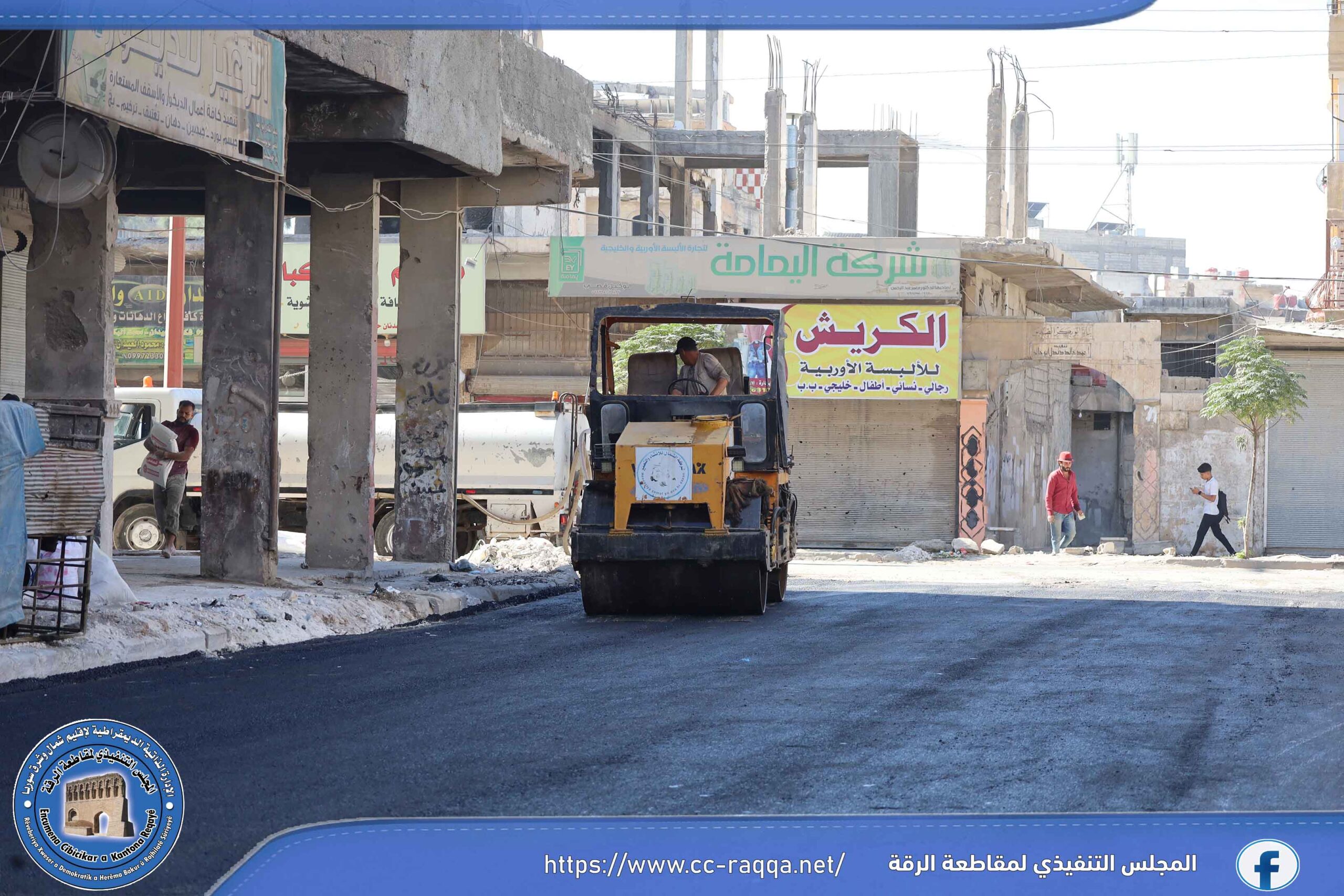 باشرت الورشات التابعة لبلدية الشعب في الرقة صباح اليوم 5 تشرين الأول، باستكمال أعمال مد طبقة من المجبول الإسفلتي في الشوارع الرئيسية والفرعية من حي الجميلي، وذلك بعد رشه بمادة الـ MC0.