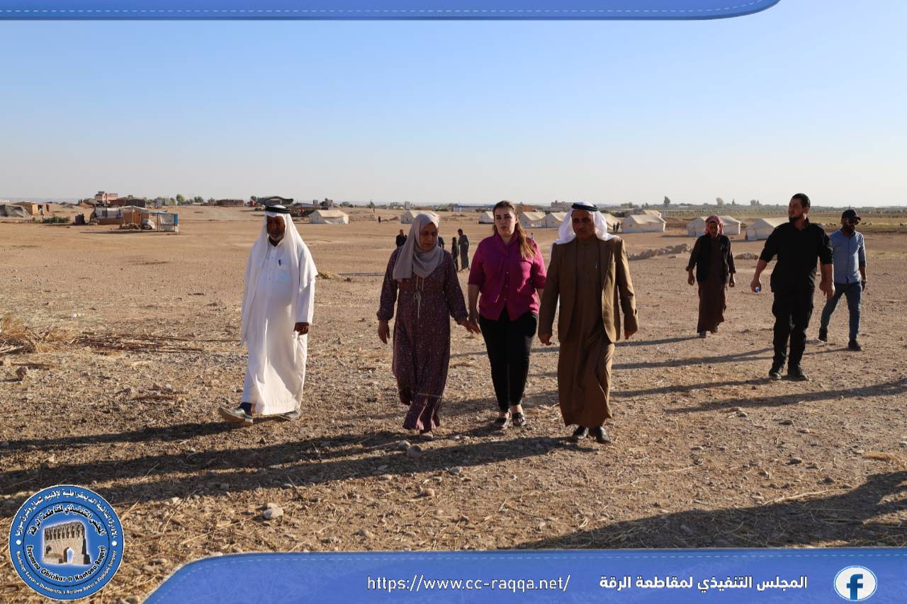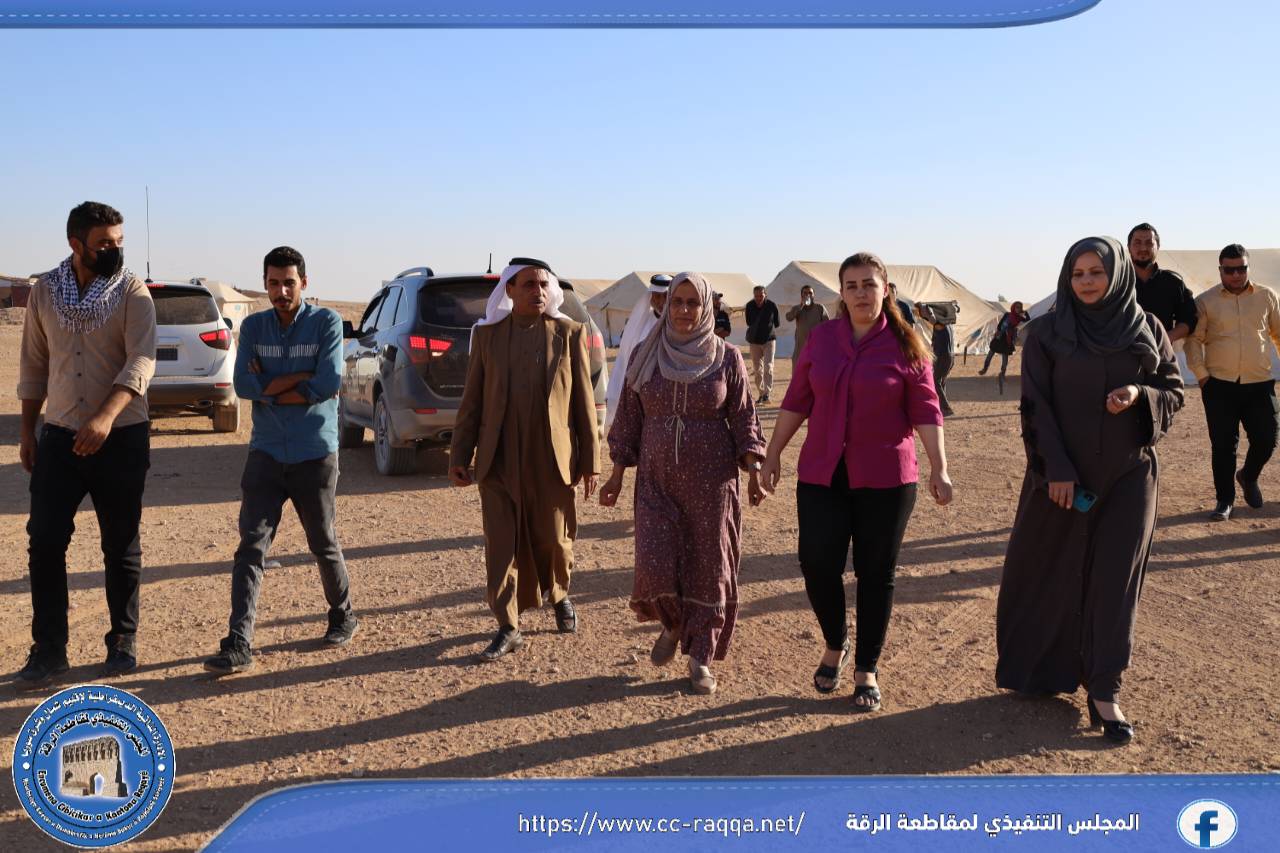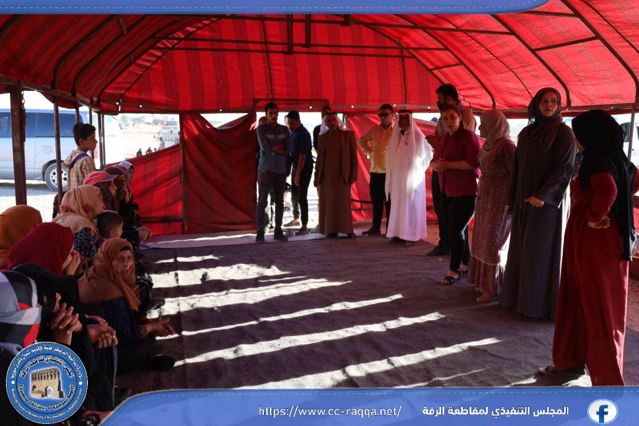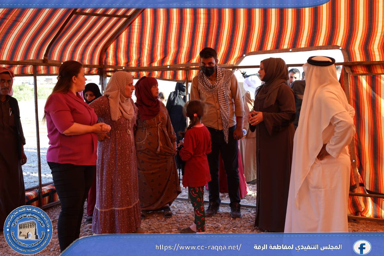 زار وفد مؤلف من الرئيسة المشتركة للمجلس التنفيذي في مقاطعة الرقة الآنسة “هيڤين اسماعيل” وهيئة الشؤون الاجتماعية والكادحين في إقليم شمال وشرق سوريا وهيئة الشؤون الاجتماعية والكادحين في مقاطعة الرقة عصر اليوم 6 تشرين الأول، مخيم العدنانية بريف الرقة الغربي، بهدف الاطلاع على واقع الأهالي النازحين من المناطق اللبنانية جراء الحـ.ـرب الحاصلة هناك.