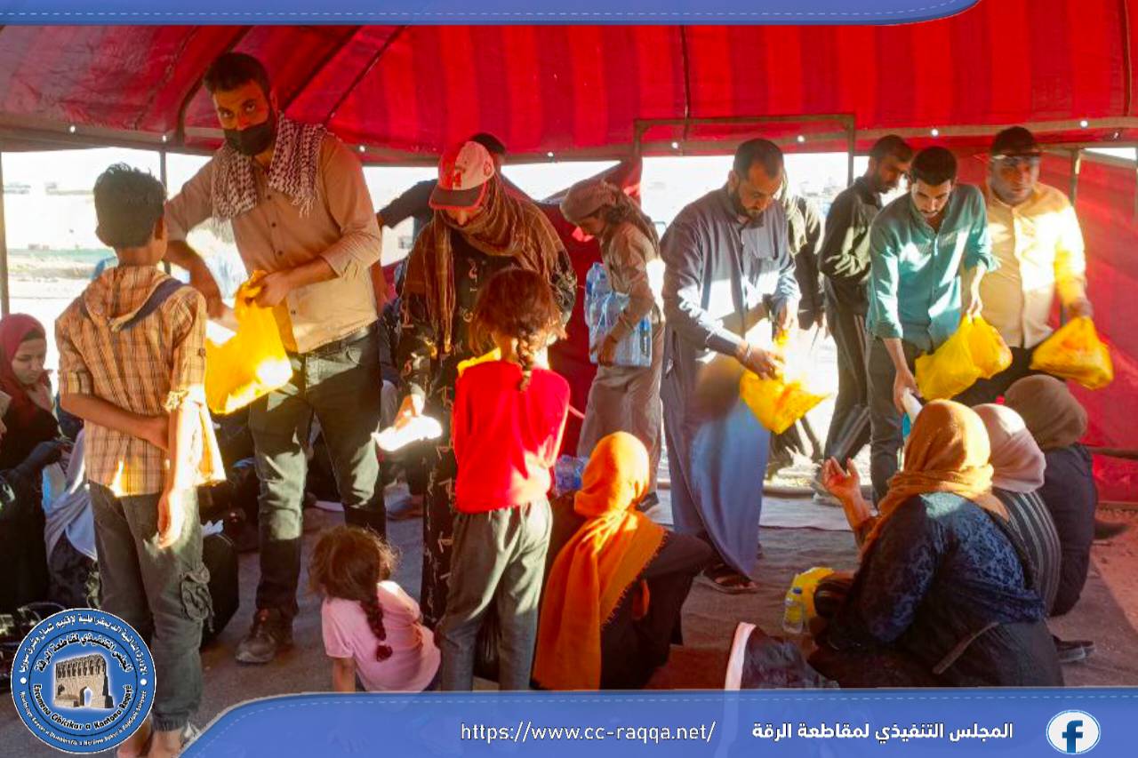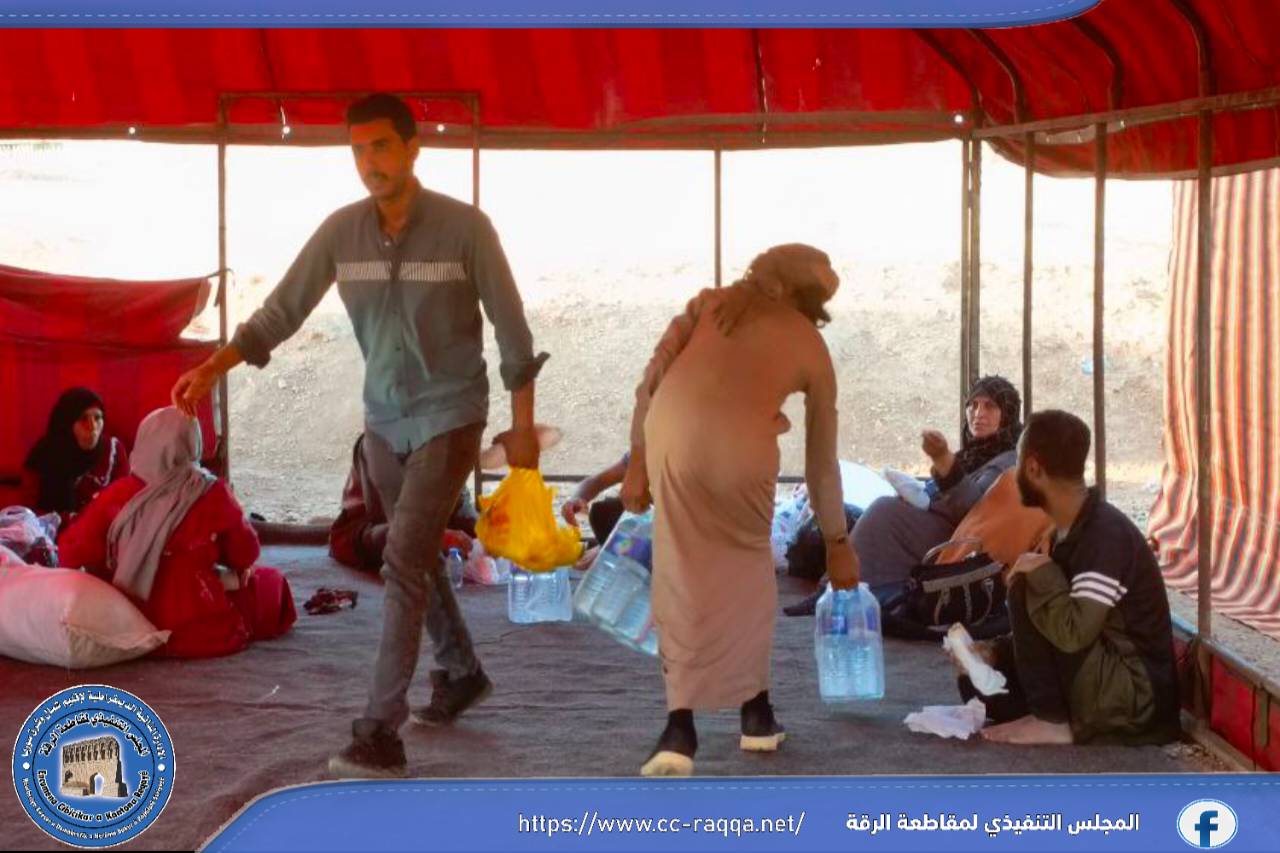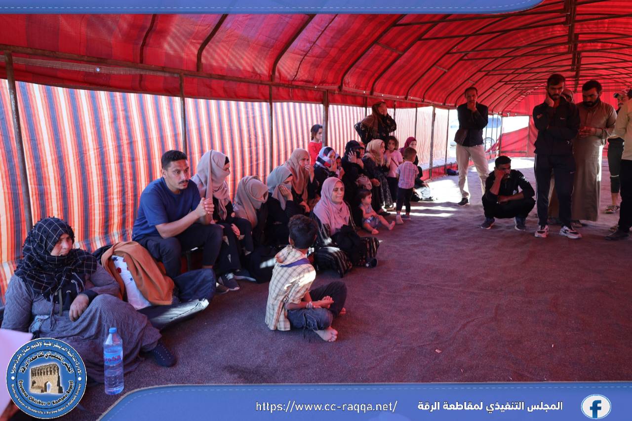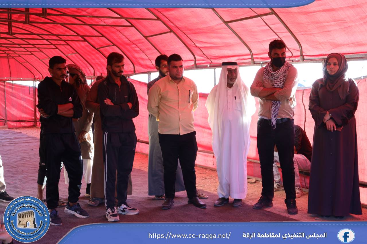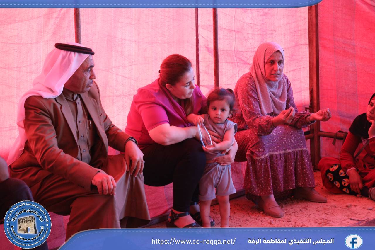 زار وفد مؤلف من الرئيسة المشتركة للمجلس التنفيذي في مقاطعة الرقة الآنسة “هيڤين اسماعيل” وهيئة الشؤون الاجتماعية والكادحين في إقليم شمال وشرق سوريا وهيئة الشؤون الاجتماعية والكادحين في مقاطعة الرقة عصر اليوم 6 تشرين الأول، مخيم العدنانية بريف الرقة الغربي، بهدف الاطلاع على واقع الأهالي النازحين من المناطق اللبنانية جراء الحـ.ـرب الحاصلة هناك.