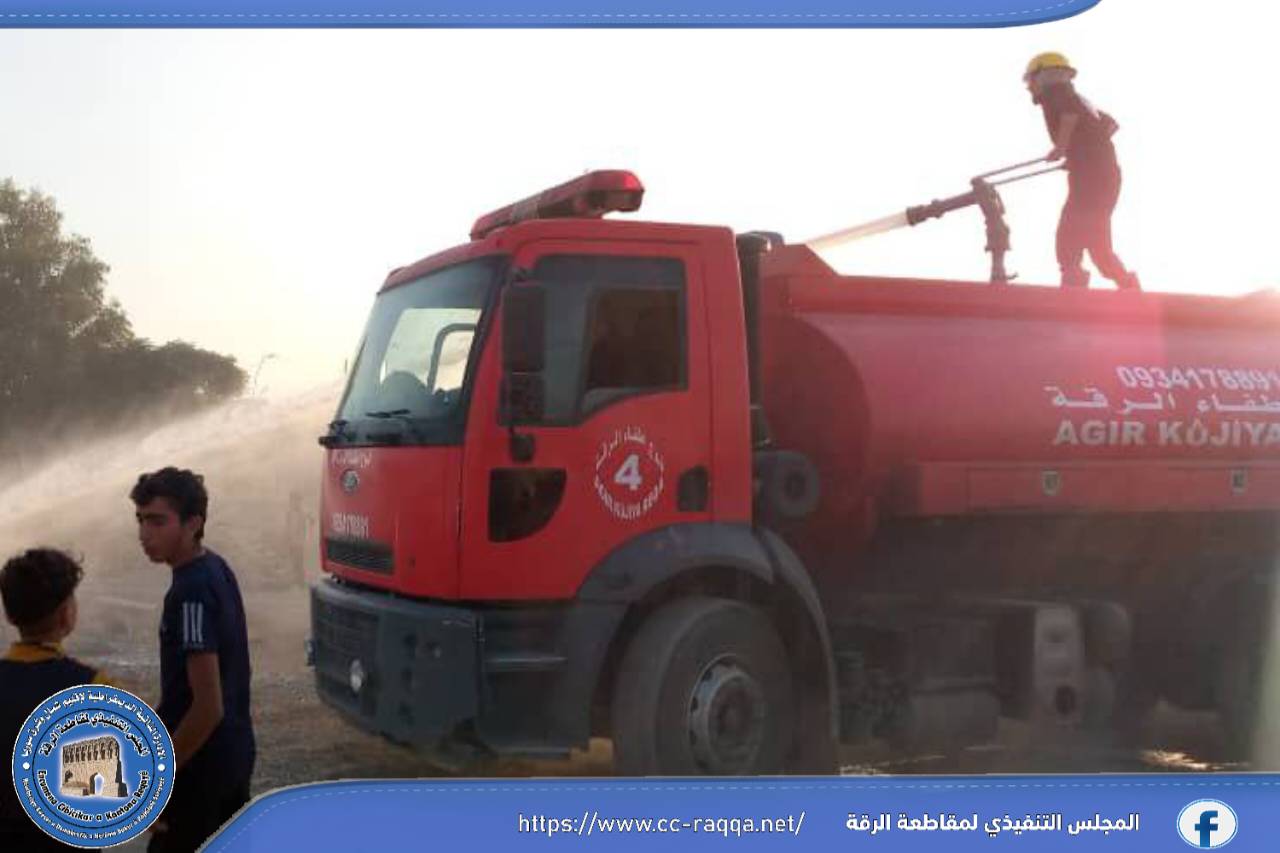 أخمدت مفرزة إطفاء المدينة والتابعة لفريق الاستجابة الأولية مساء اليوم 8 تشرين الأول، حريقين منفصلين في مدينة الرقة، نشب أحدهما في أحد منازل حارة الكويتي نتيجة ماس كهربائي، والثاني في مستودع للإطارات المستعملة بجانب دوار الصوامع ناتج عن عبث أطفال، حيث تعامل الفريق مع الحريق دون وقوع إصابات بشرية.