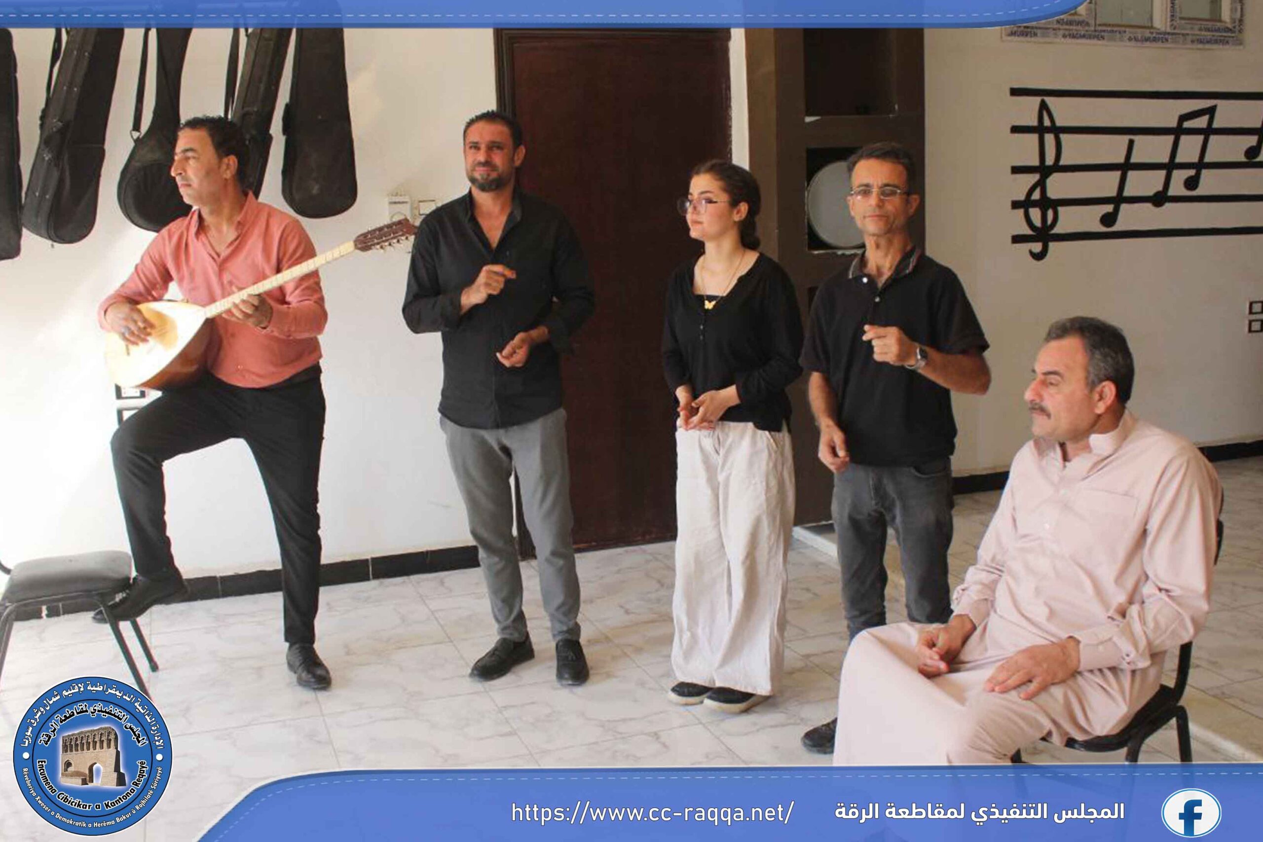 يعمل كل من مكتب الموسيقا ومكتب التراث في المركز الثقافي، على إجراء بعض التدريبات والبروڤات لأغاني جديدة، تحضيراً لفعالية المقامة بمناسبة الذكرى السنوية السابعة لتحرير مدينة الرقة.