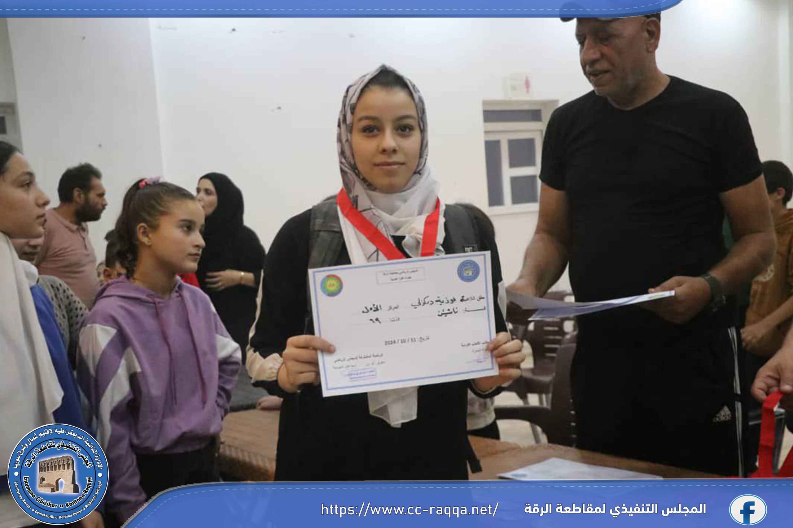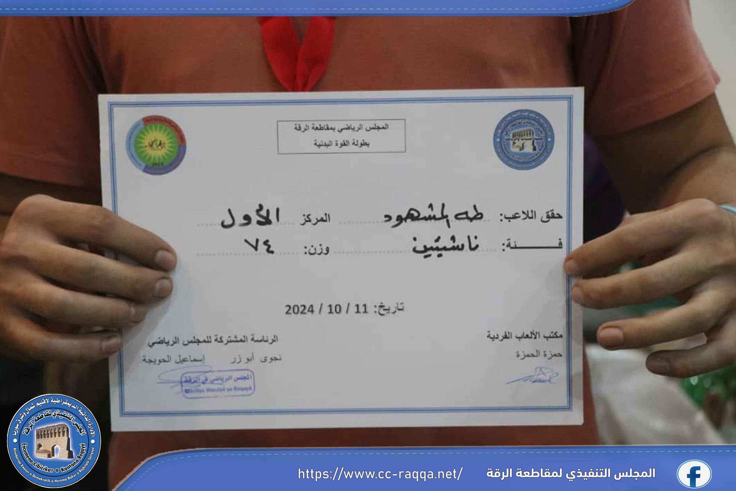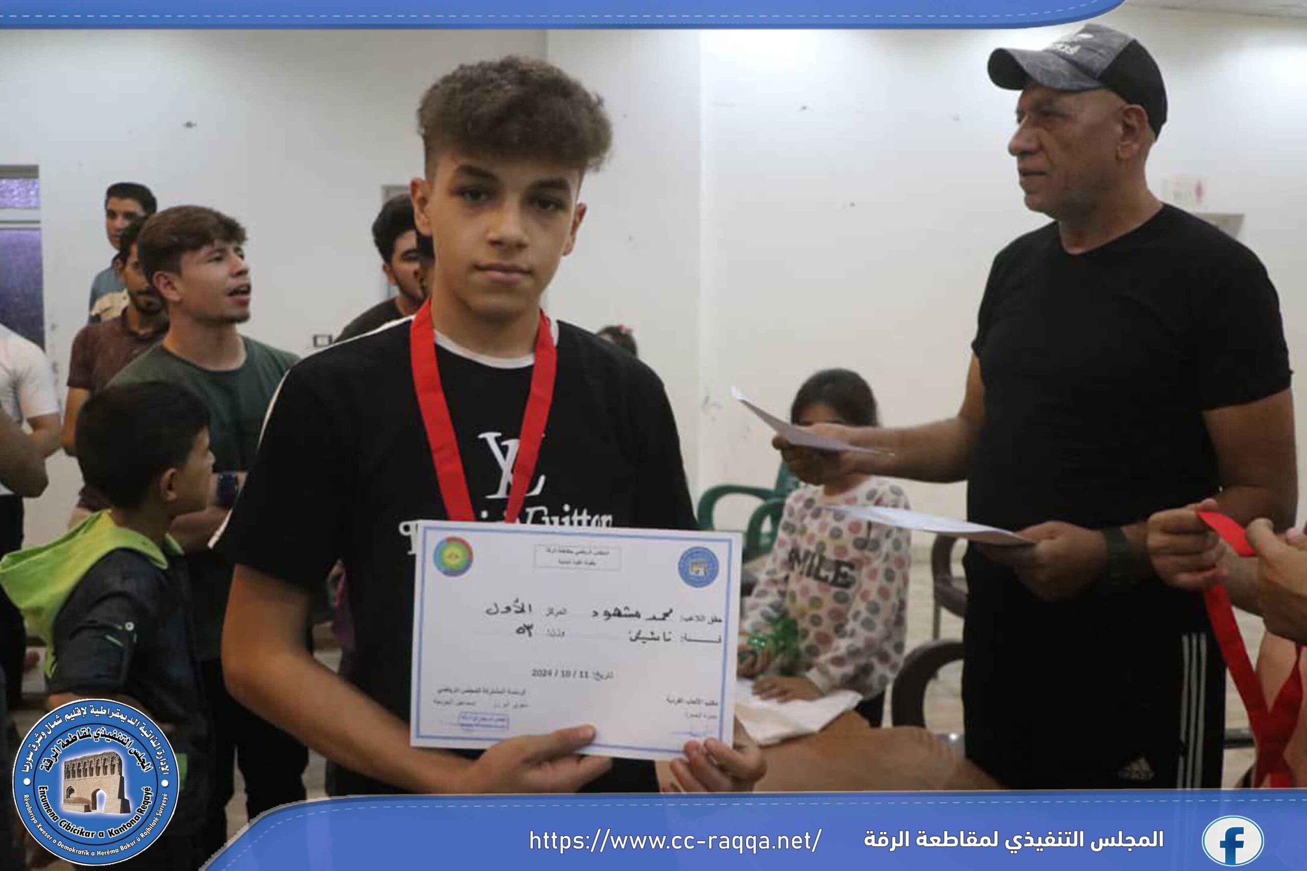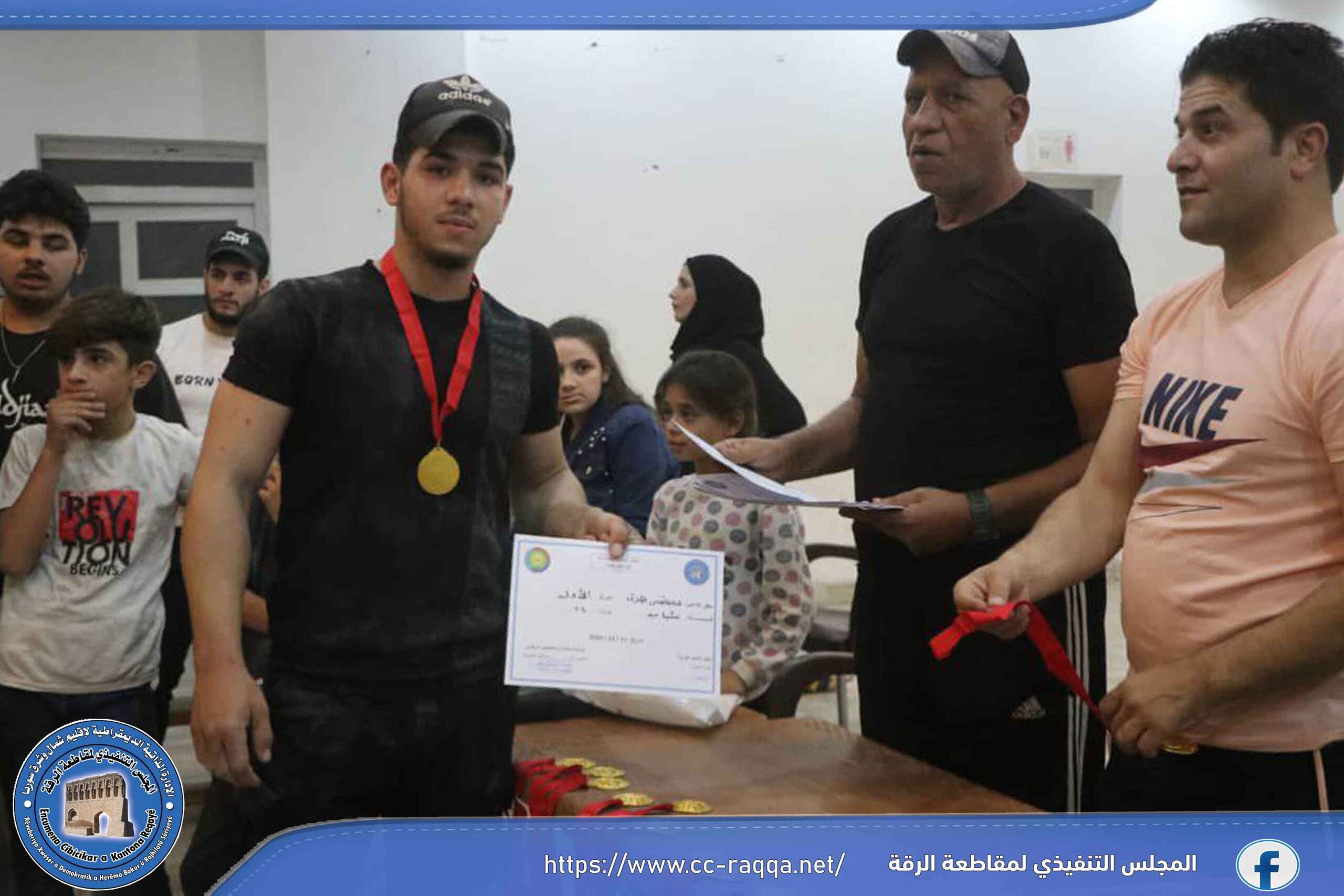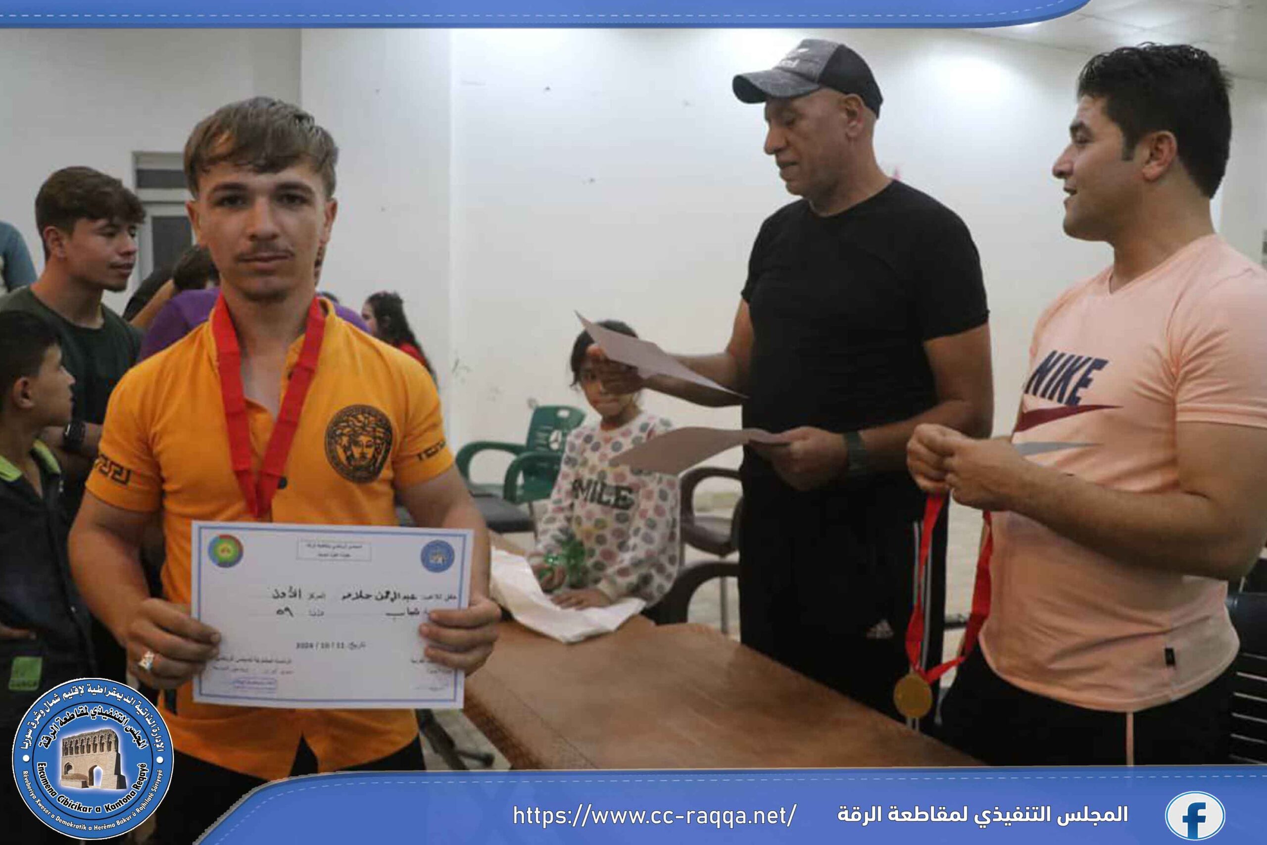 أقام المجلس الرياضي التابع لهيئة الشباب والرياضة في مقاطعة الرقة يوم أمس 12 تشرين الأول، بطولة محلية في ألعاب القوى البدنية بمشاركة 60 لاعباً من جميع الفئات، وذلك في صالة القوى البدنية بملعب الرقة البلدي، وكانت النتائج على الشكل التالي: