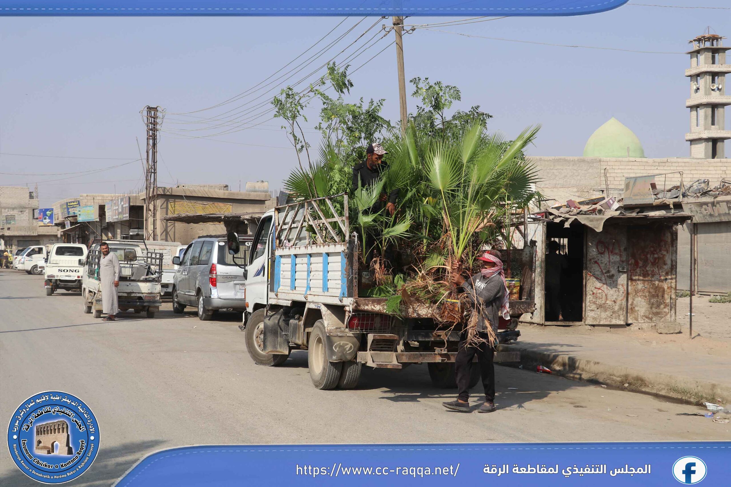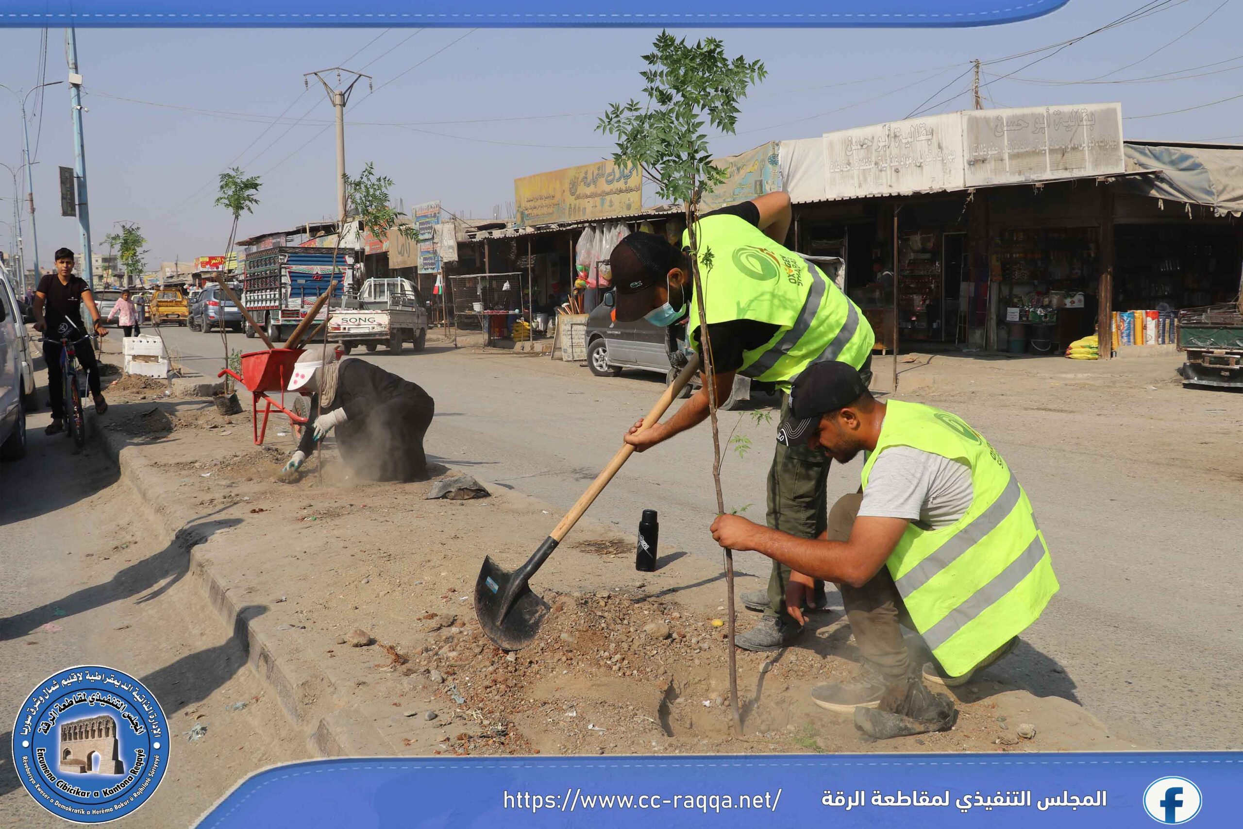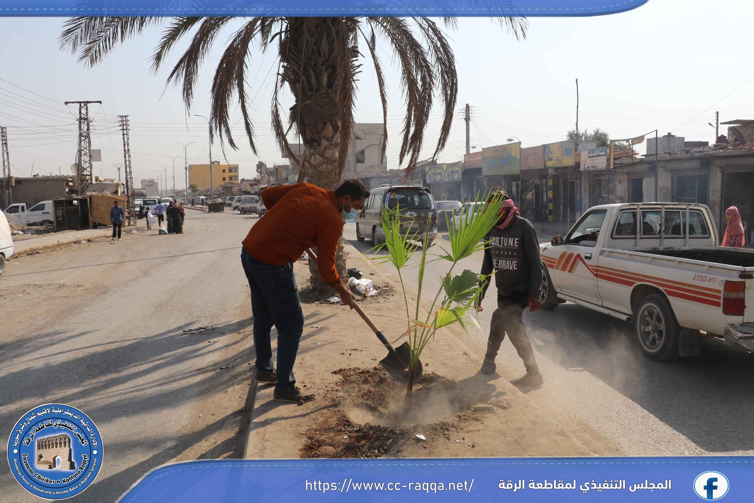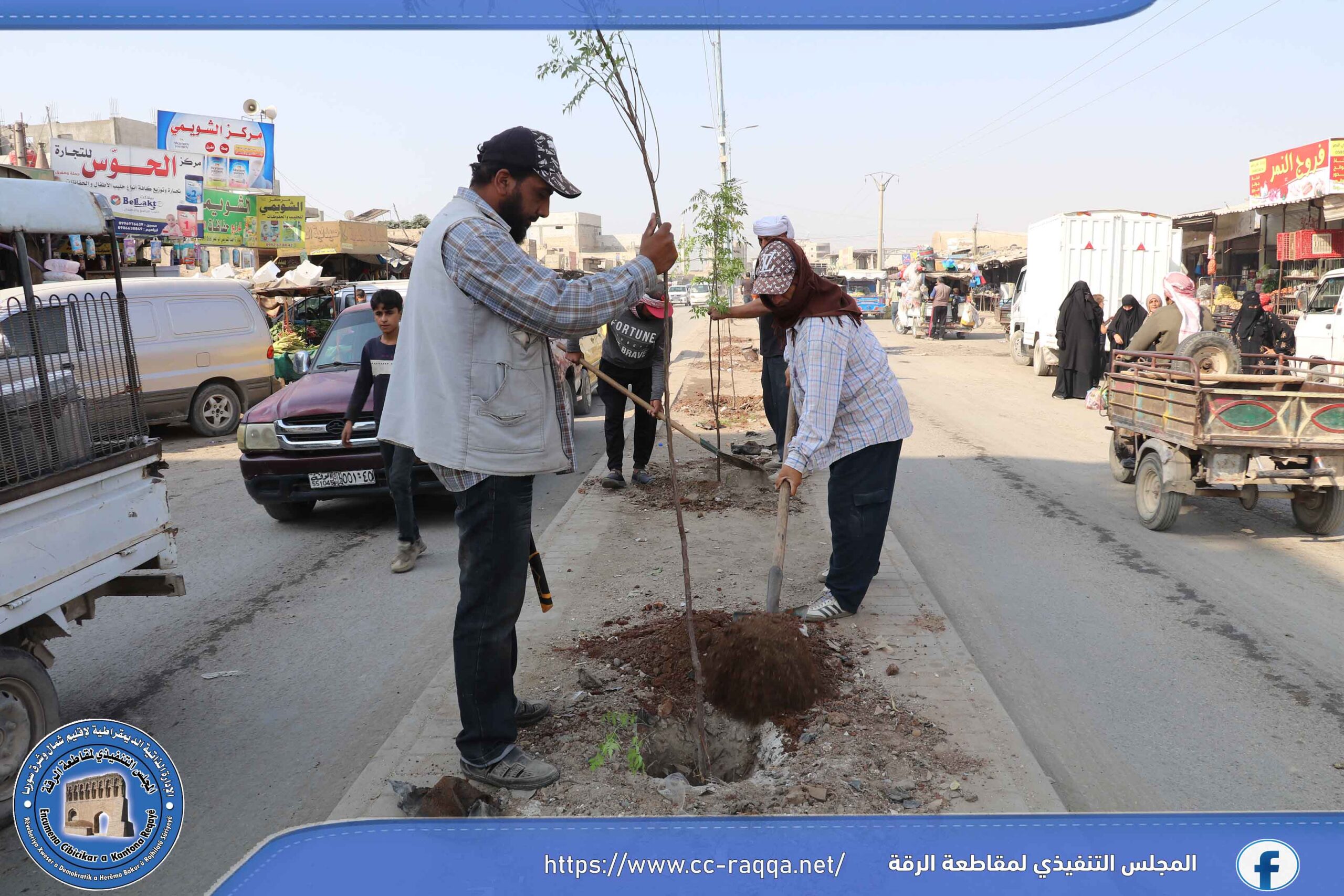 بهدف زيادة الغطاء النباتي في مدينة الرقة، أطلقت ورشات دائرة الحدائق والتشجير التابعة لبلدية الشعب في الرقة وبالتعاون مع برنامج فرات مؤخراً، حملة تشجير تشمل منصفات الطرق الرئيسية والفرعية في المدينة.