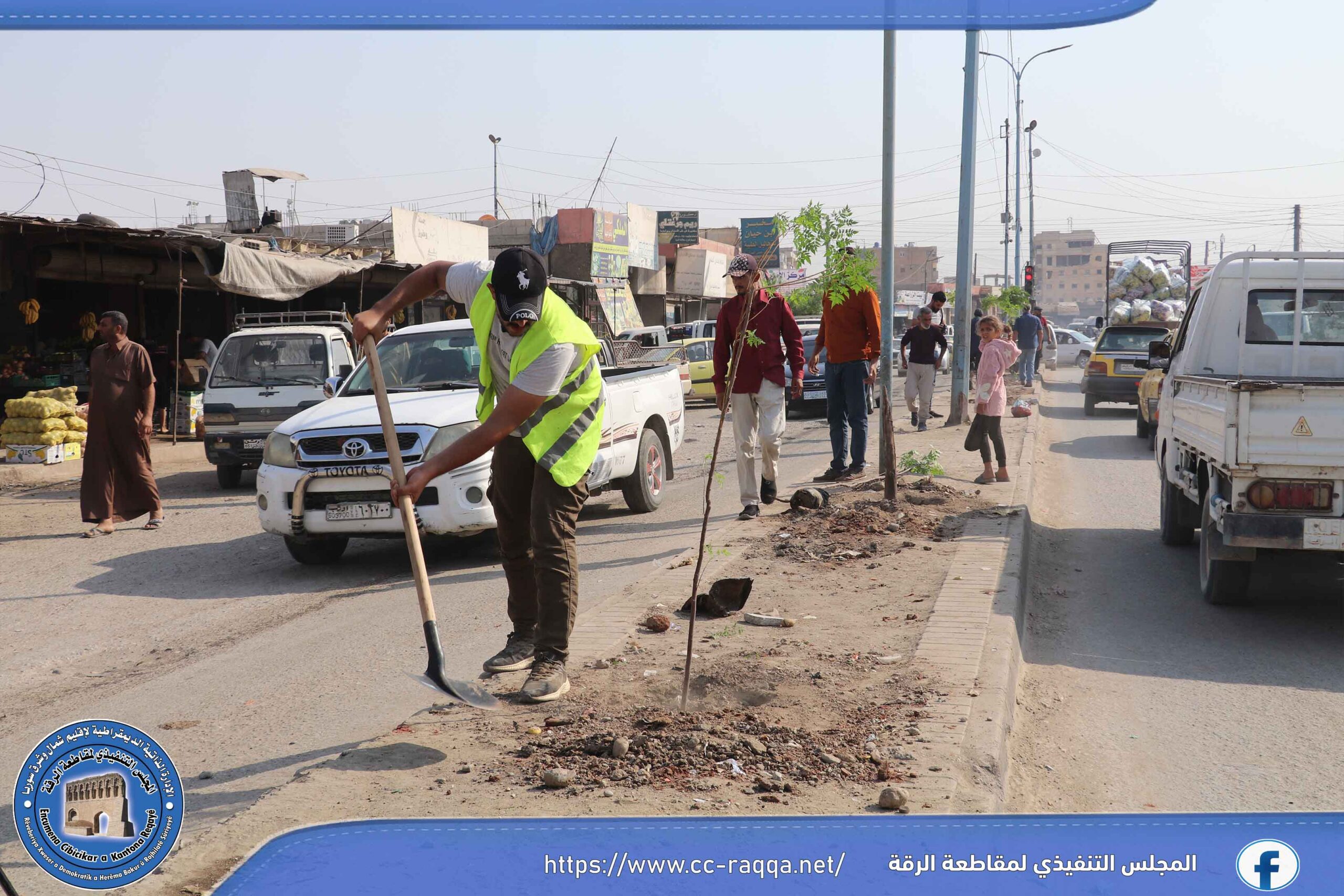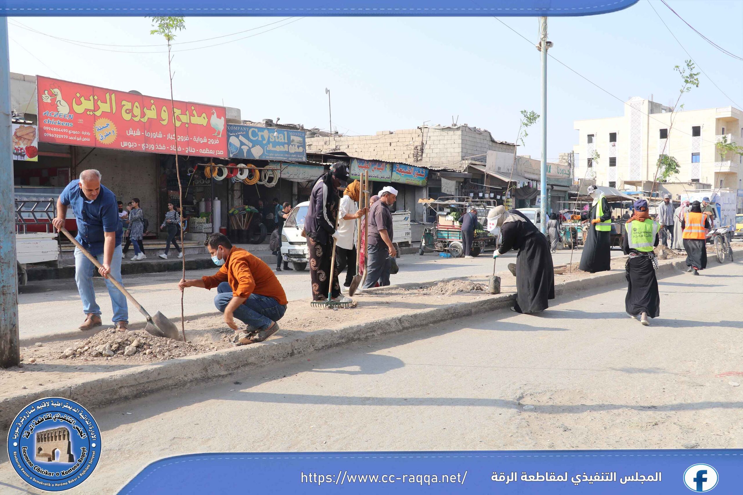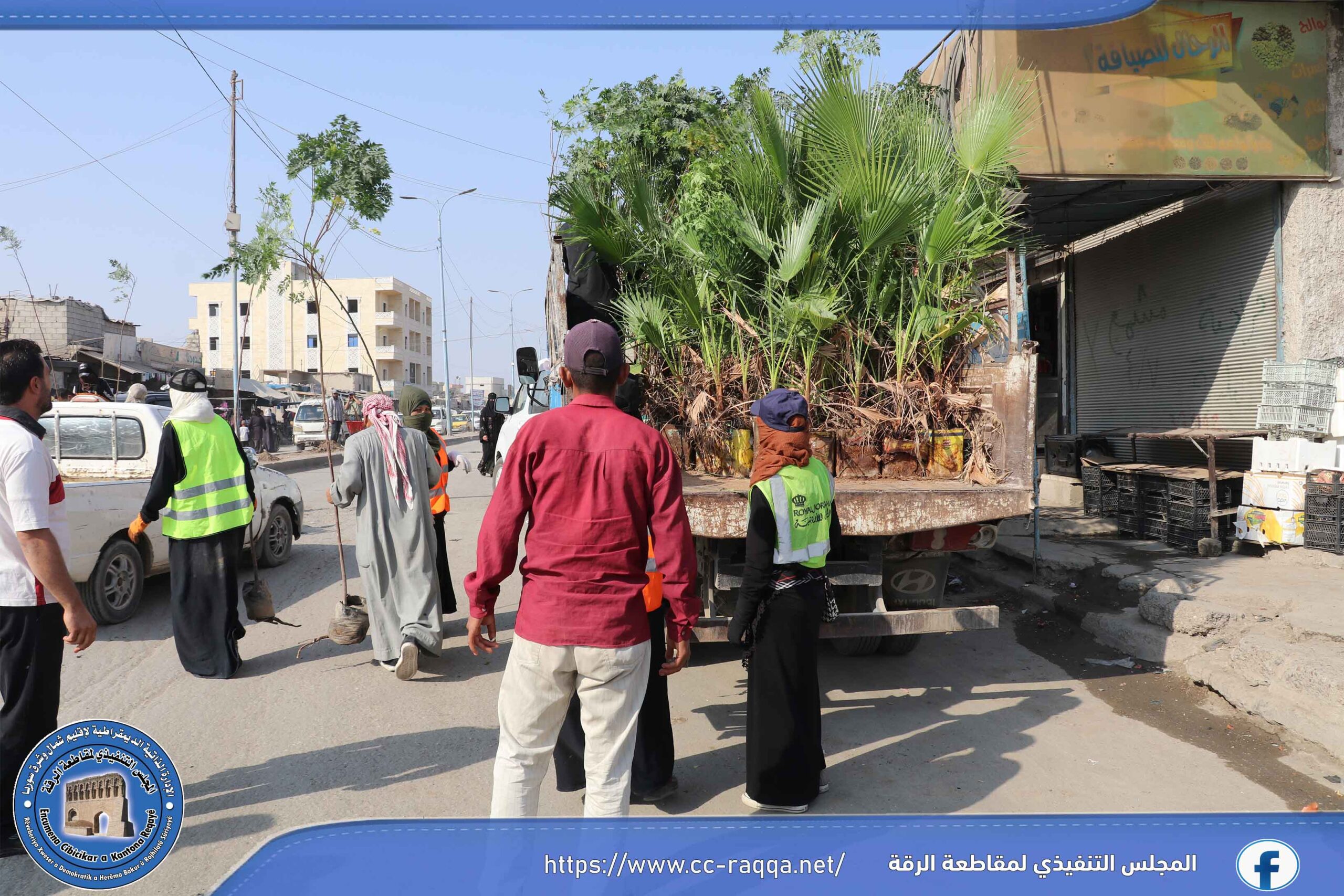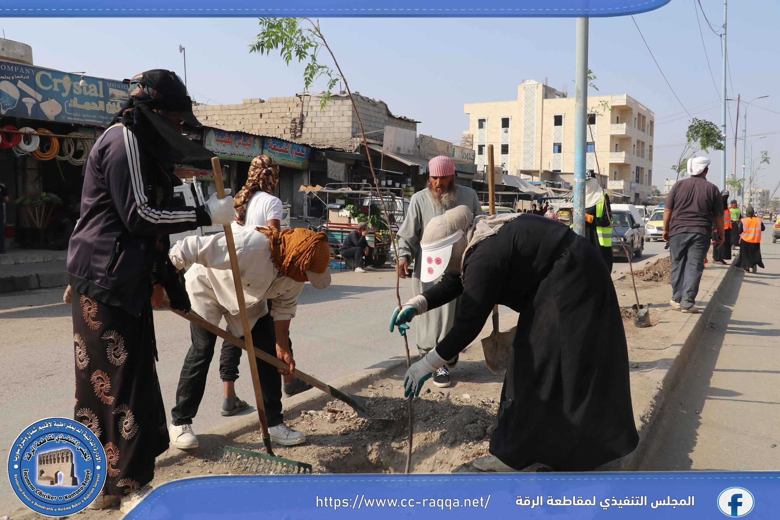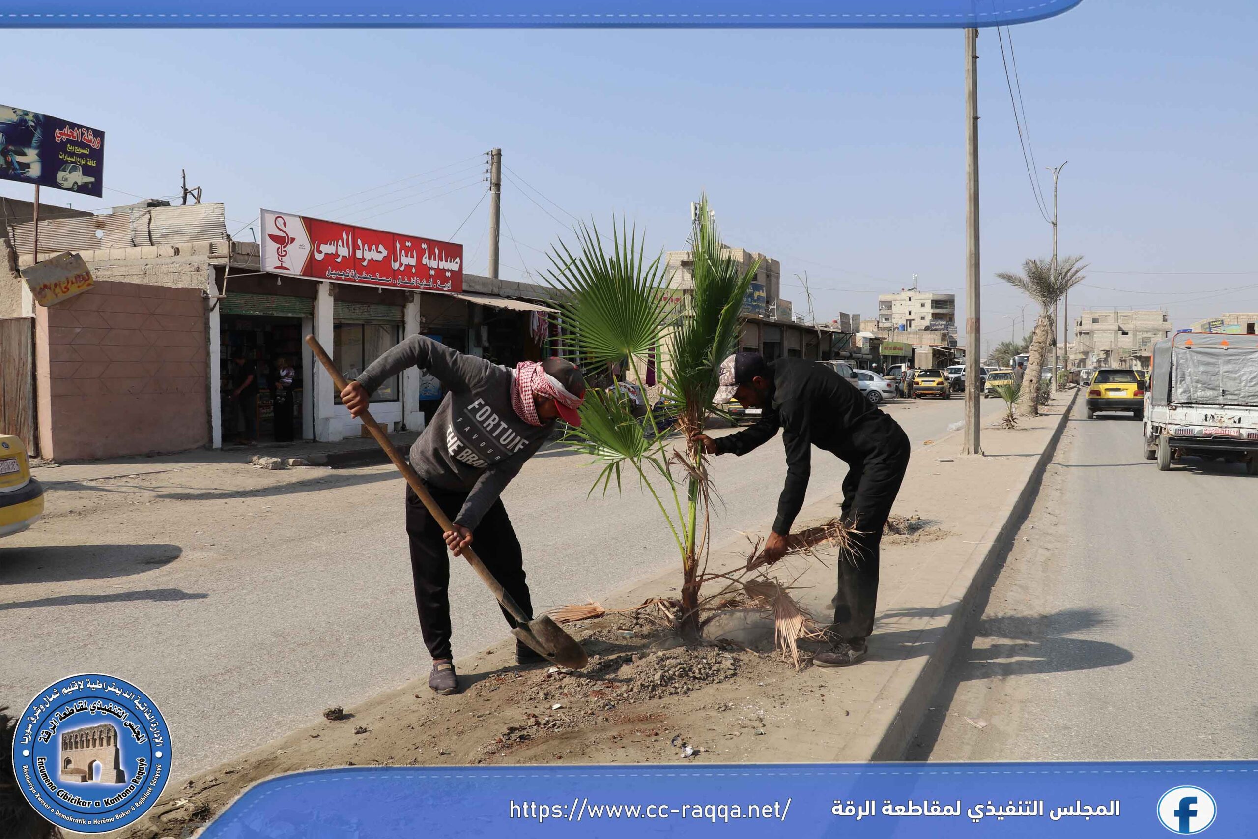 بهدف زيادة الغطاء النباتي في مدينة الرقة، أطلقت ورشات دائرة الحدائق والتشجير التابعة لبلدية الشعب في الرقة وبالتعاون مع برنامج فرات مؤخراً، حملة تشجير تشمل منصفات الطرق الرئيسية والفرعية في المدينة.