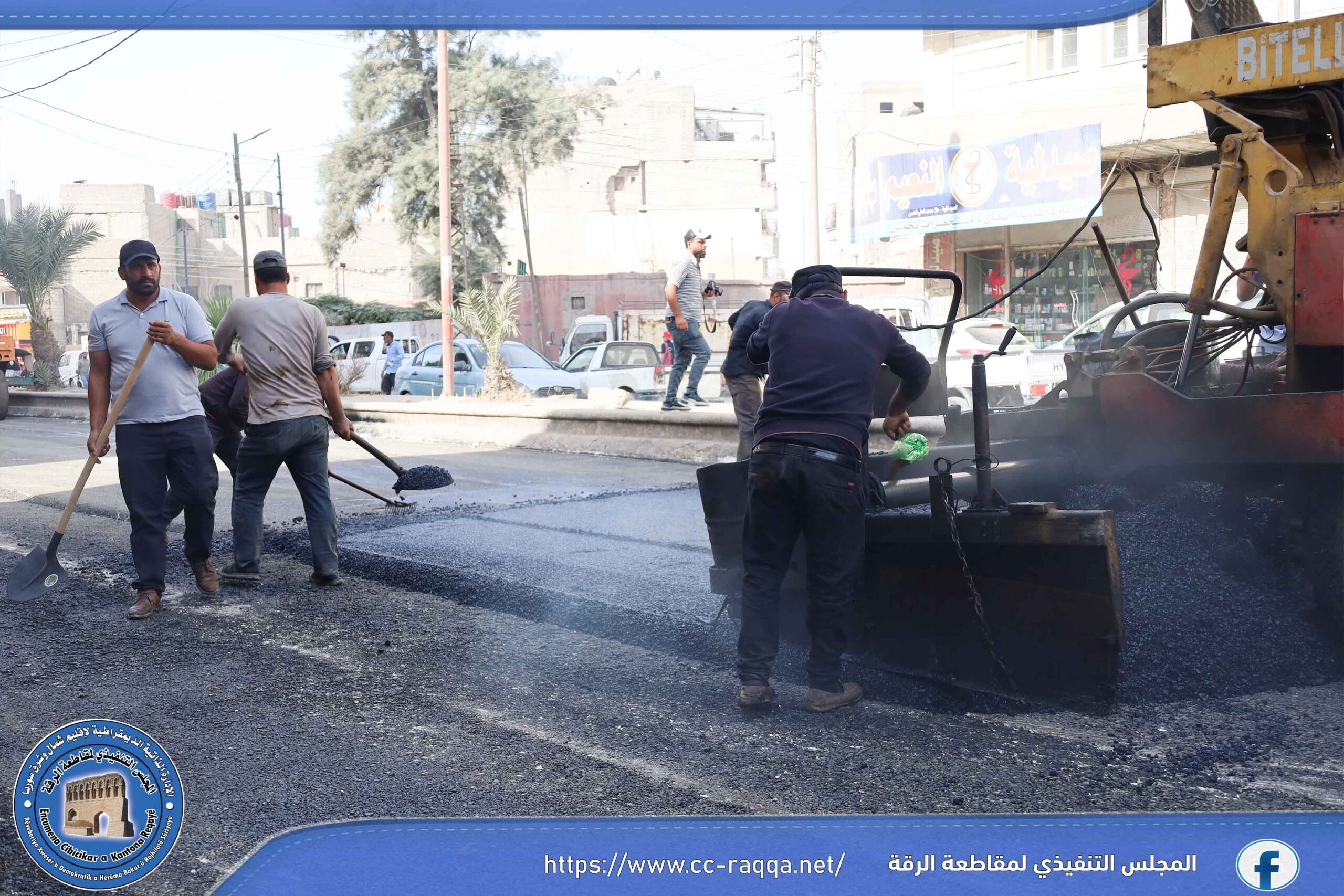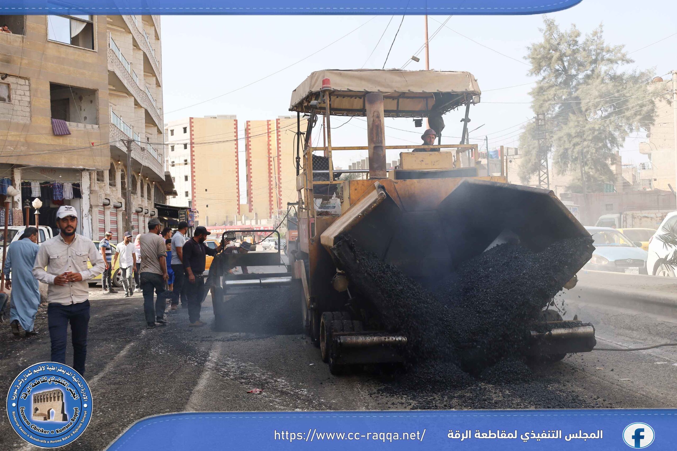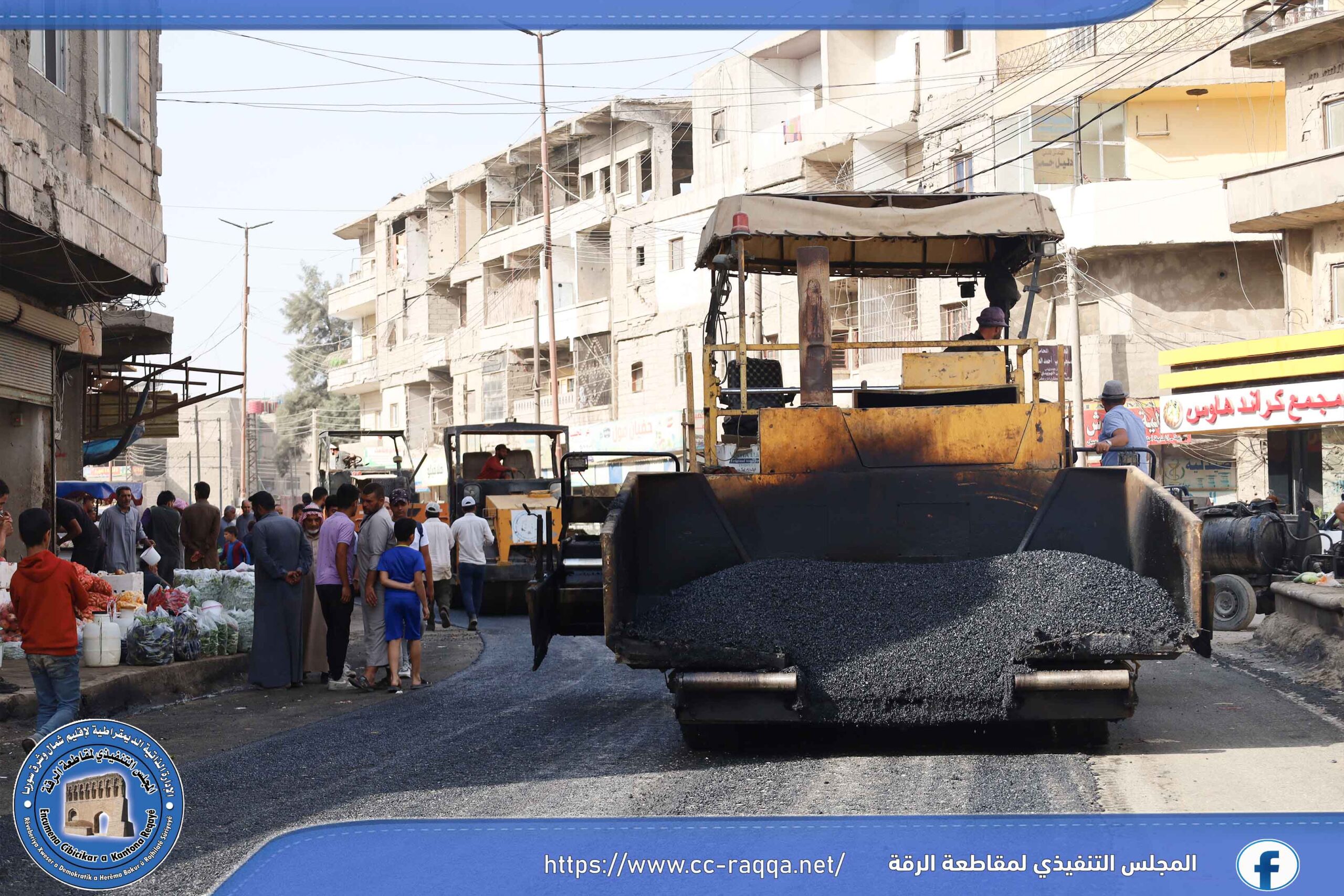 باشرت الورشات التابعة لبلدية الشعب في الرقة صباح اليوم 14 تشرين الأول، بأعمال تعبيد الشارع الممتد من دوار النعيم حتى دوار الدلة (سوق المزارع)، عن طريق مد طبقتين من مادة الإسفلت، ومن المقرر الانتقال بعدها إلى الشوارع الفرعية لمنطقة الأماسي.