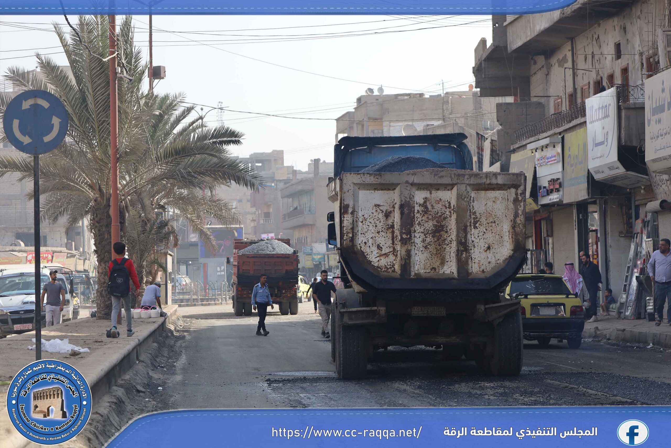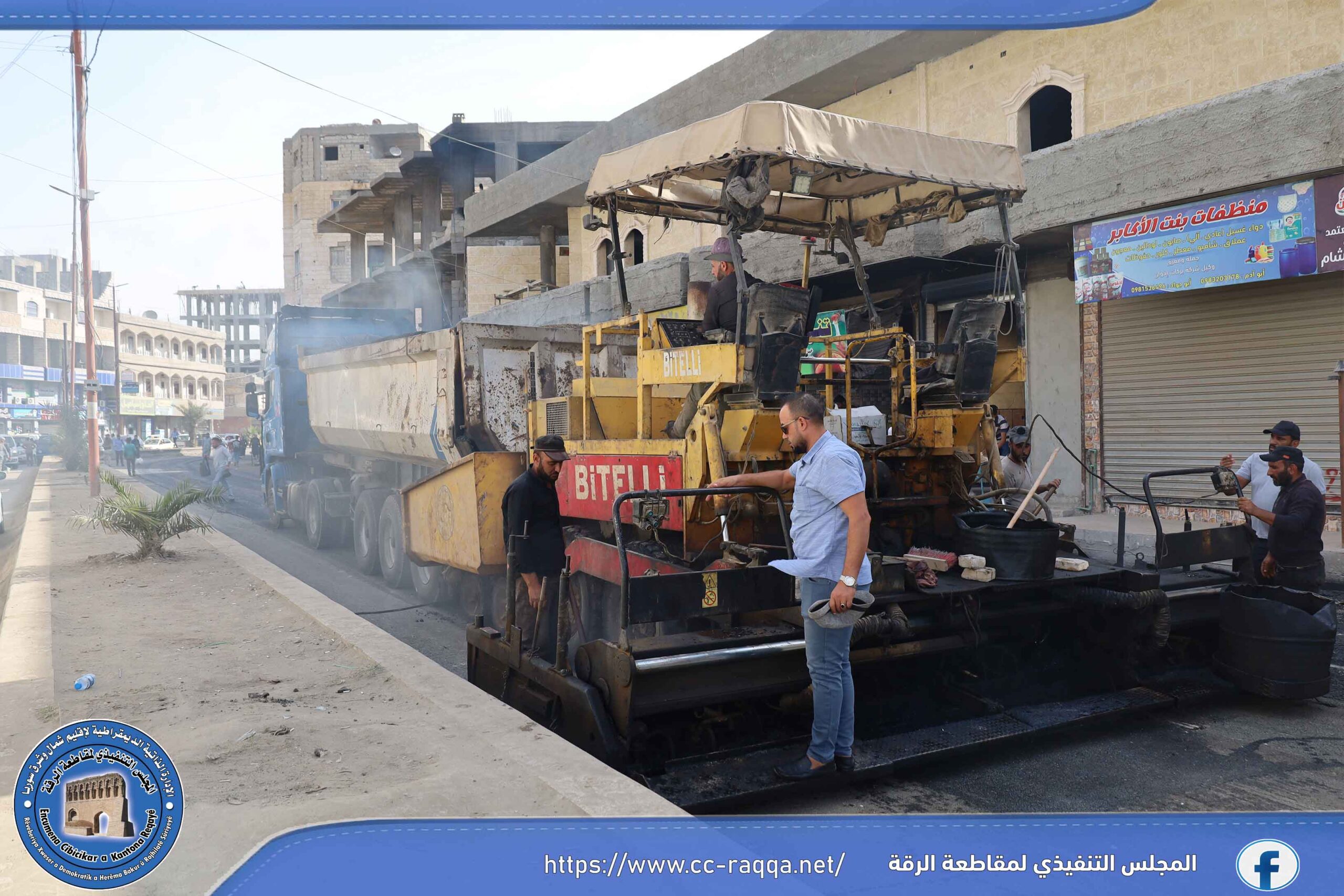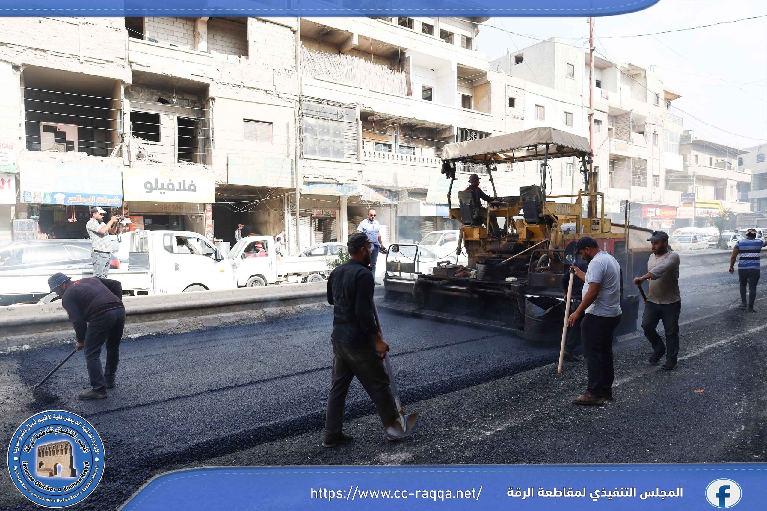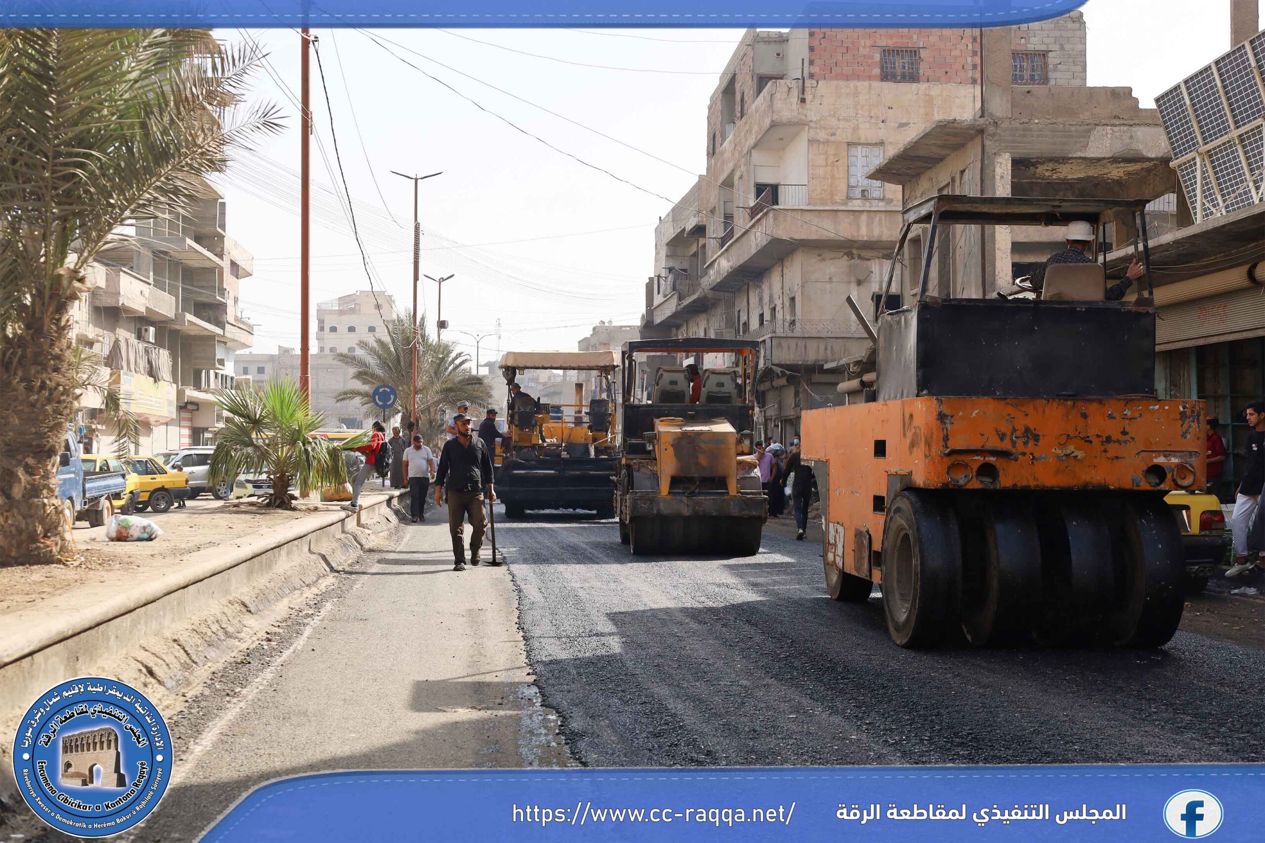 باشرت الورشات التابعة لبلدية الشعب في الرقة صباح اليوم 14 تشرين الأول، بأعمال تعبيد الشارع الممتد من دوار النعيم حتى دوار الدلة (سوق المزارع)، عن طريق مد طبقتين من مادة الإسفلت، ومن المقرر الانتقال بعدها إلى الشوارع الفرعية لمنطقة الأماسي.