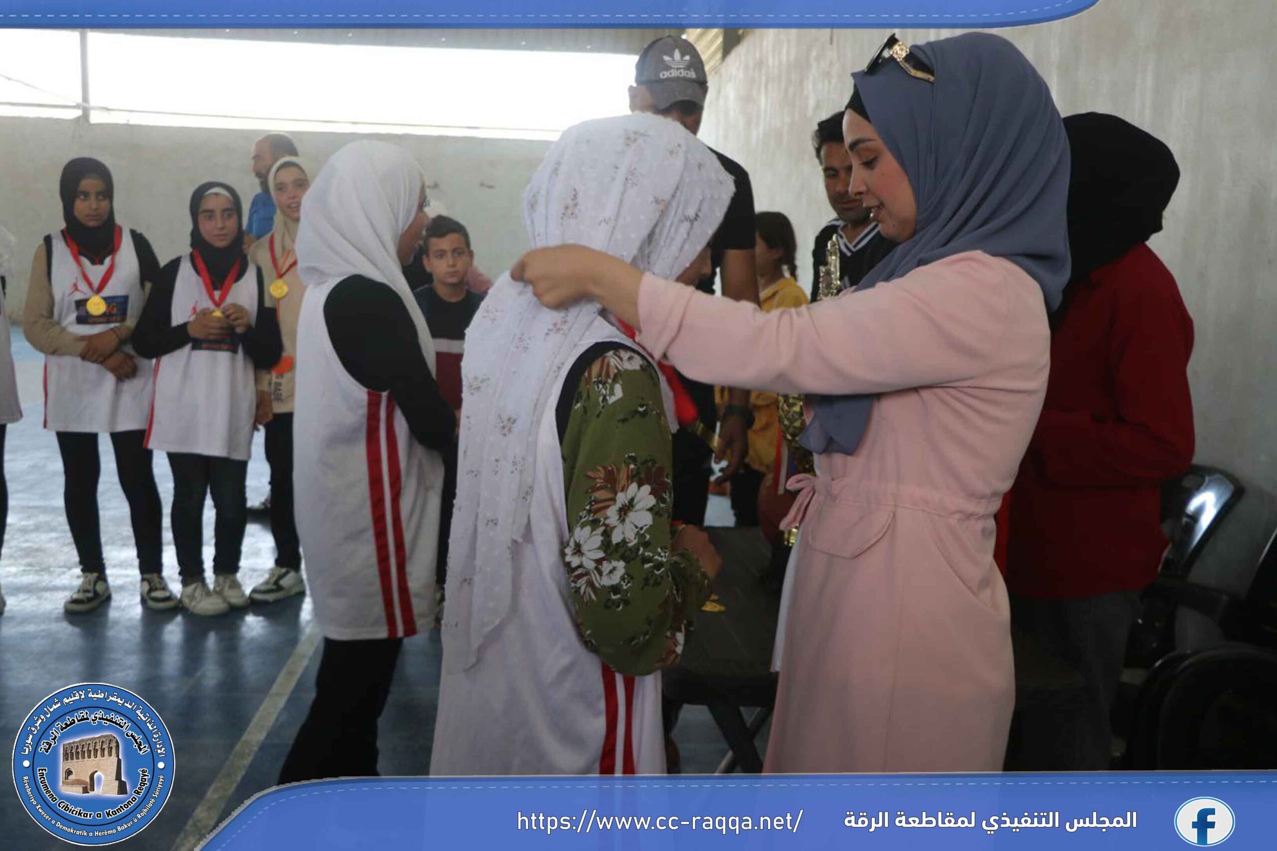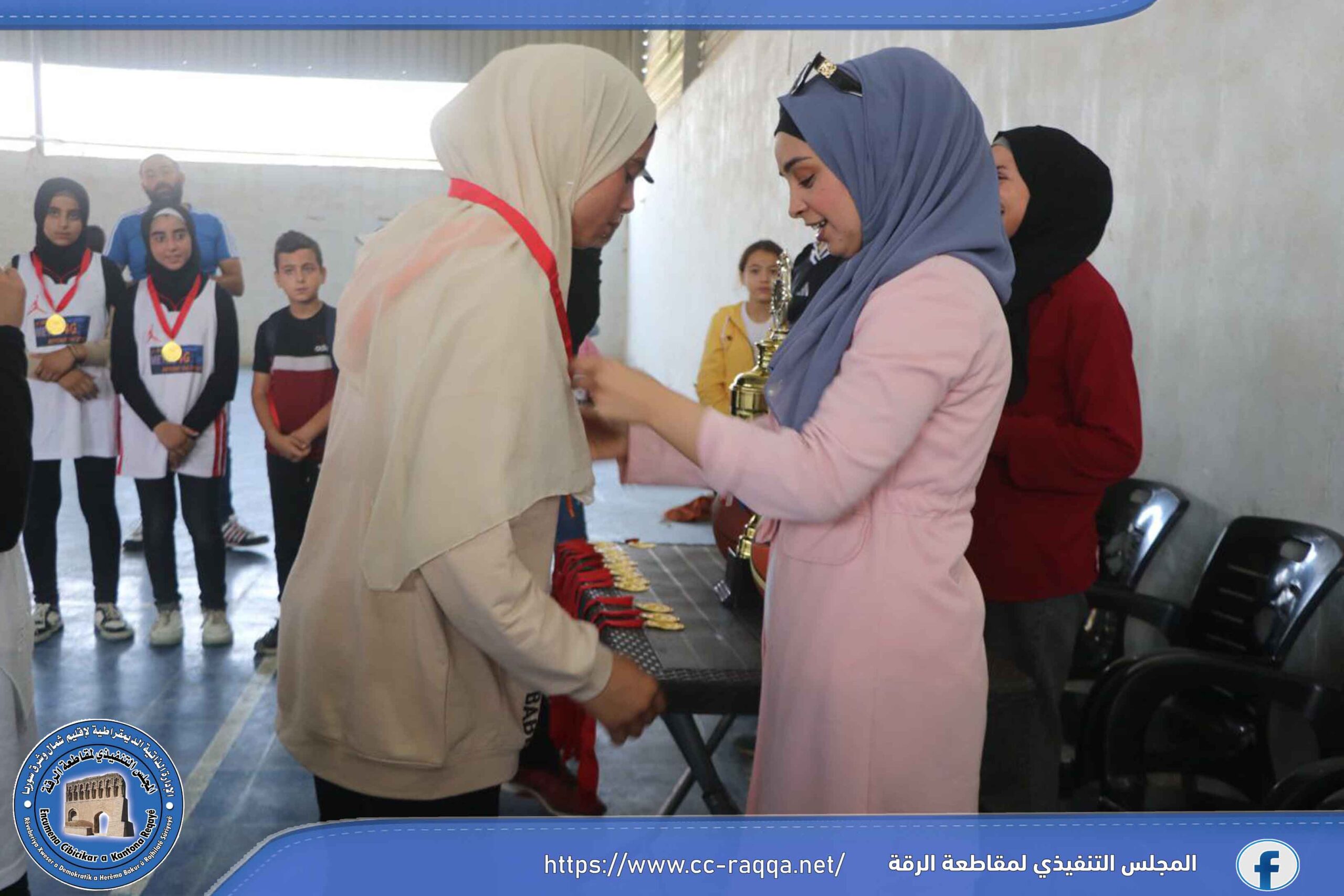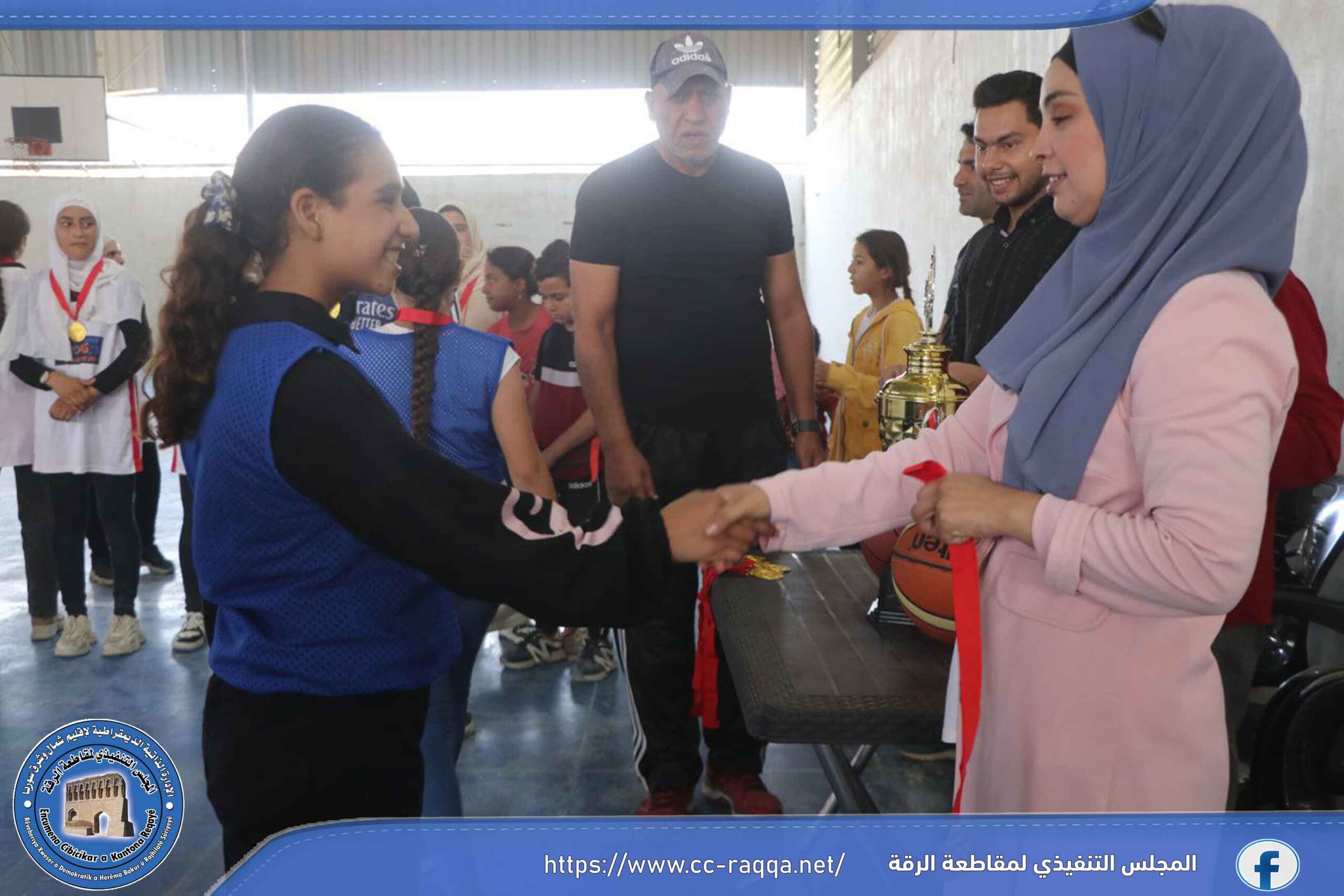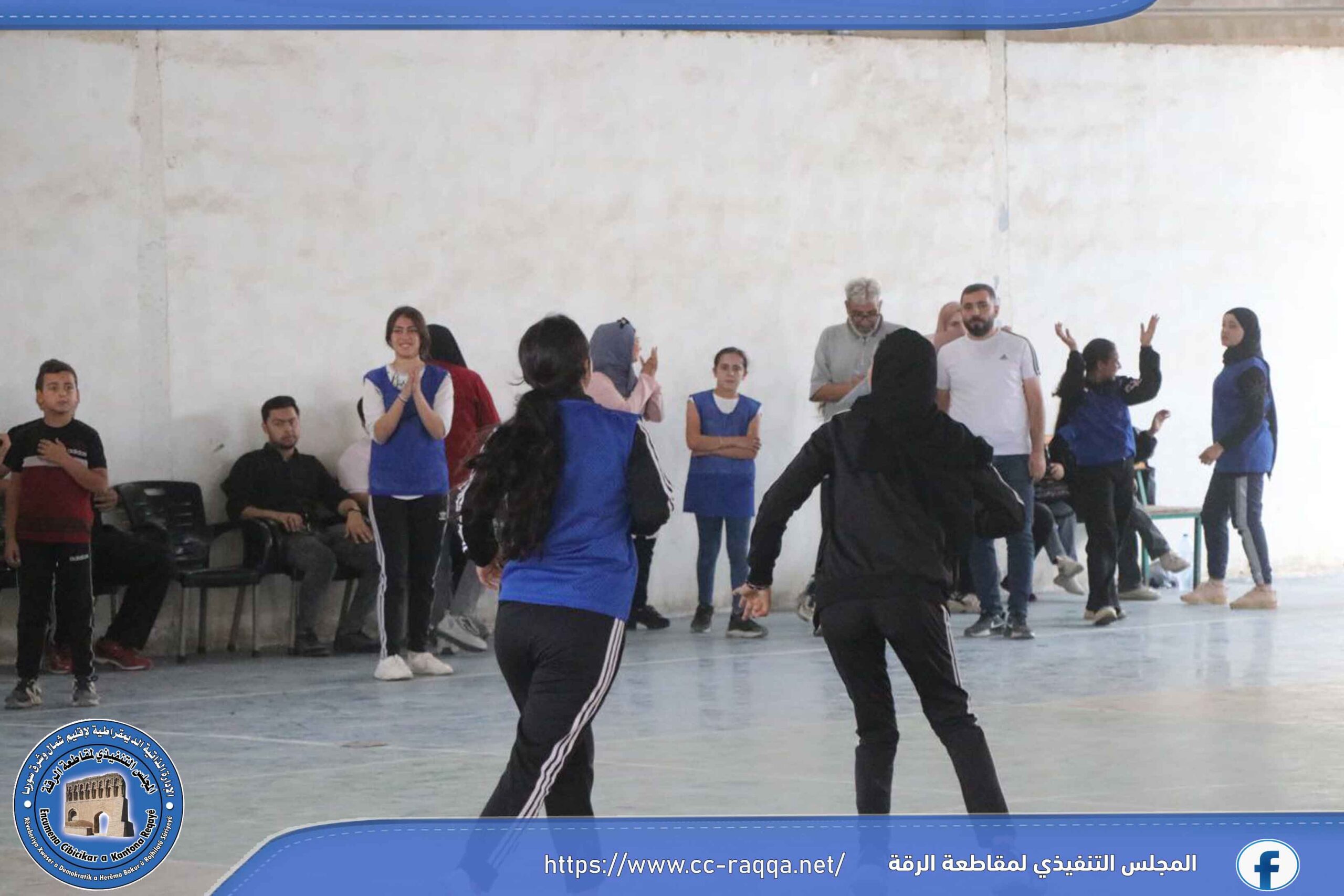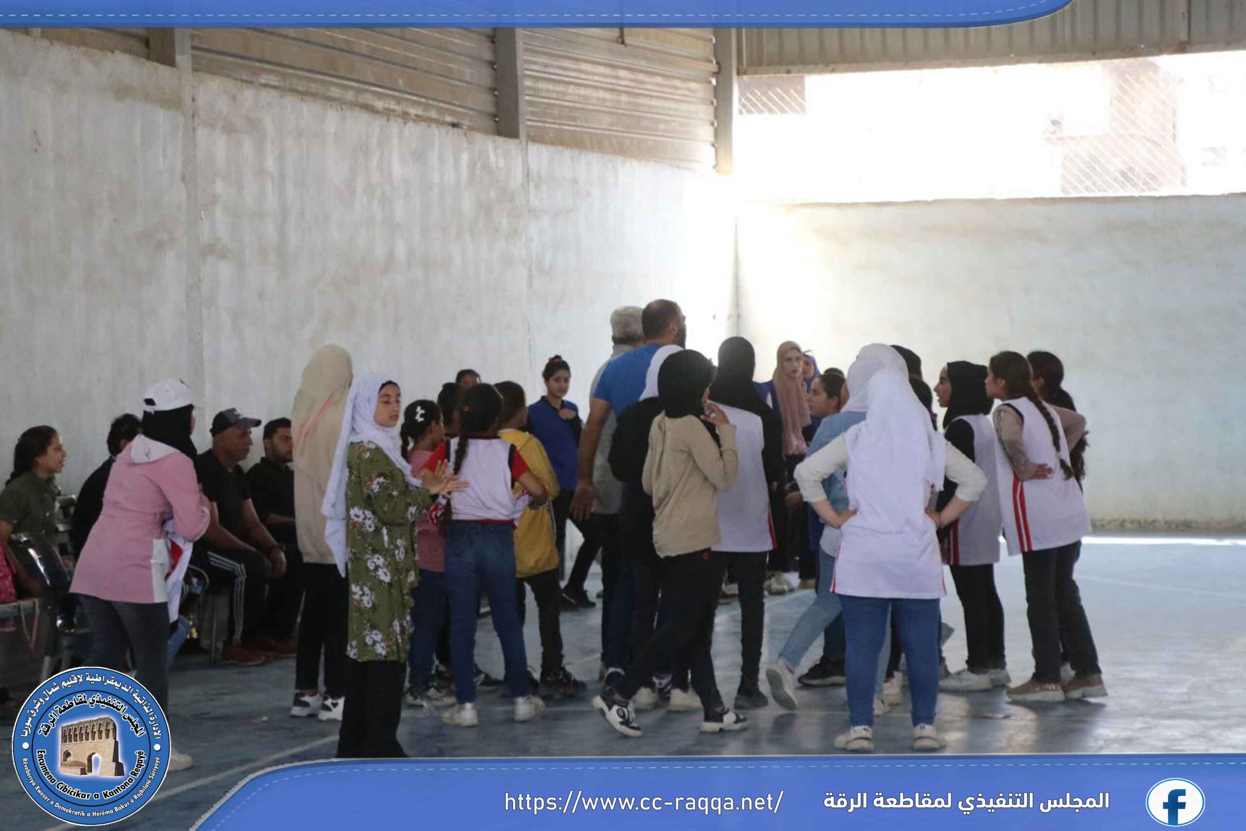 ضمن فعاليات الرياضة النسوية التي يقيمها المجلس الرياضي التابع لهيئة الشباب والرياضة وبالتعاون مع هيئة التربية والتعليم في مقاطعة الرقة، أقيمت صباح اليوم 14 تشرين الأول، مباراة في لعبة كرة السلة للشابات بين فريقي (أبي تمام _ عمر علوش)، وذلك ضمن صالة الشهيد مصطفى النكزي في منشأة الشهيد أدهم الرياضية، حيث انتهت المباراة بفوز فريق أبي تمام على نظيره بنتيجة 52 نقطة مقابل 39 نقطة.
