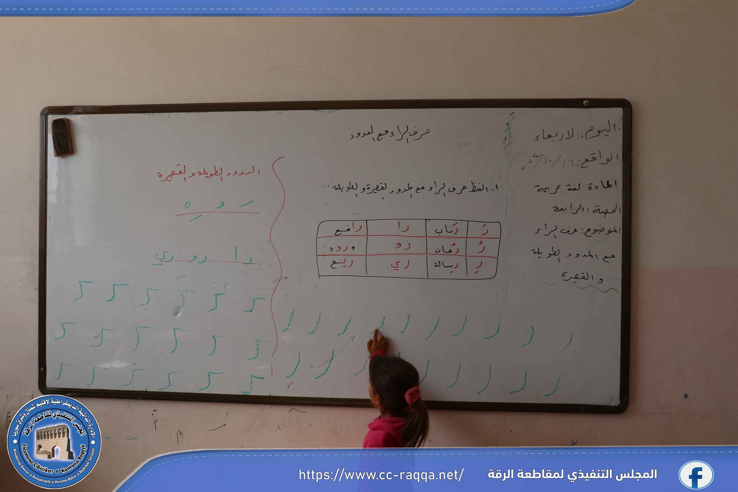 بهدف إنجاح سير العملية التعليمية والتربوية، أجرى فريق من هيئة التربية والتعليم في مقاطعة الرقة، مؤلف من نائب الرئاسة المشتركة للهيئة ومكتب الأبنية المدرسية وإدارة مدارس حزيمة صباح اليوم 16 تشرين الأول، جولة للكشف على الأبنية المدرسية الواقعة في الريف الشمالي للمدينة، والاطلاع على واقع التعليم وكيفية الإعطاء، والتأكد من استلام المنهاج من قبل متحدثين المدارس.