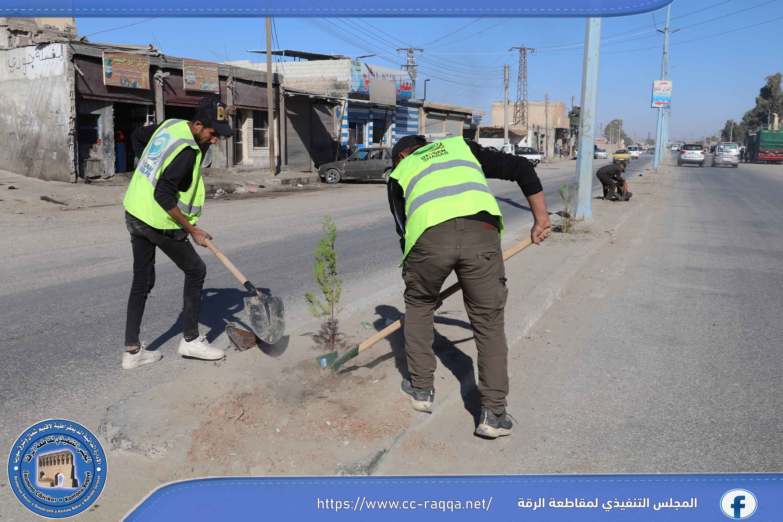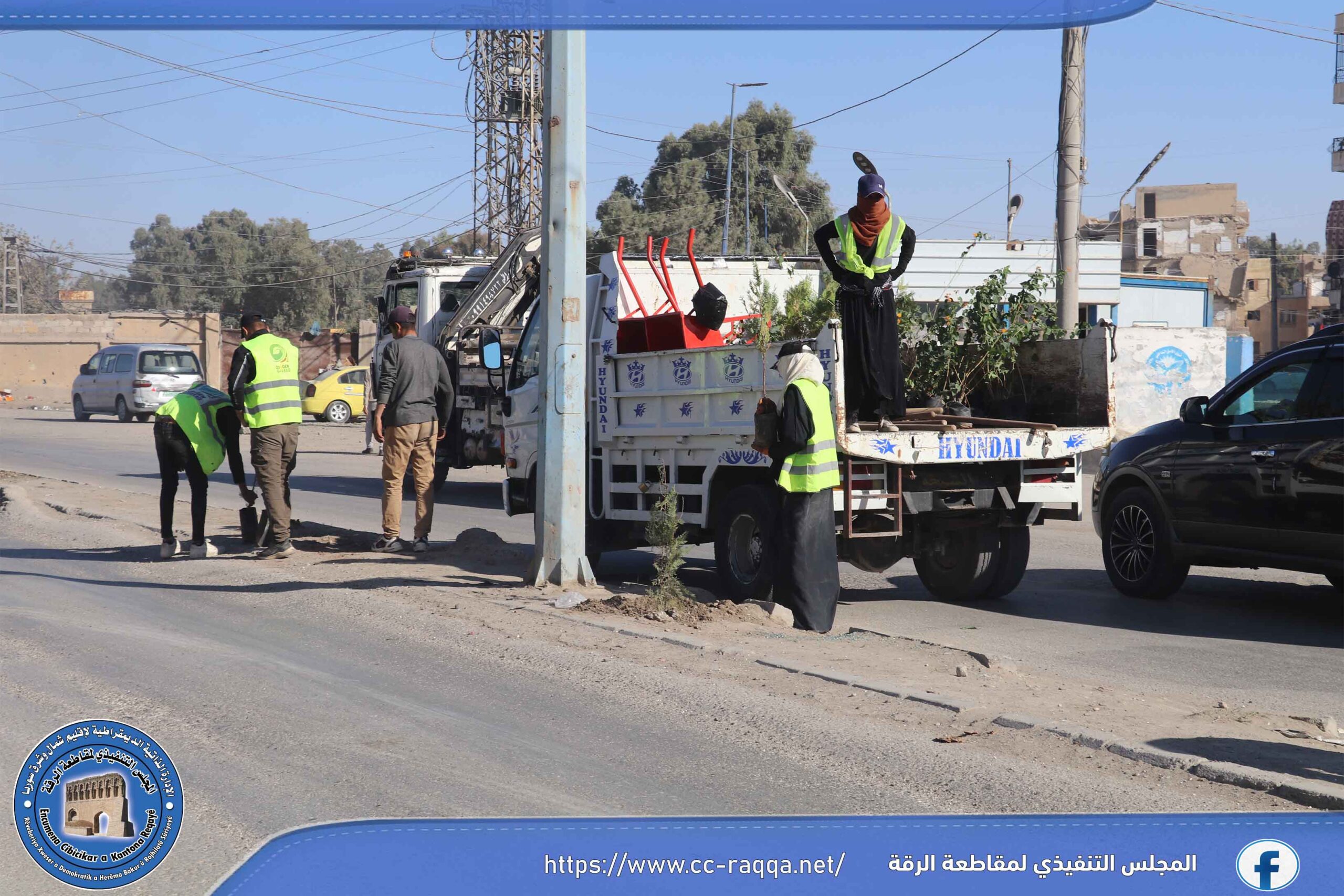تعمل ورشات دائرة الحدائق والتشجير التابعة لبلدية الشعب في الرقة، وبالتعاون مع برنامج فرات، على زراعة الأشجار ضمن المنصفات الرئيسية والفرعية ضمن شوارع المدينة، حيث تم صباح اليوم 20 تشرين الأول، زراعة عدد من الأشجار الحراجية ضمن منصف الطريق الممتد من مفرق الجزرة وصولاً إلى دوار المزارع.