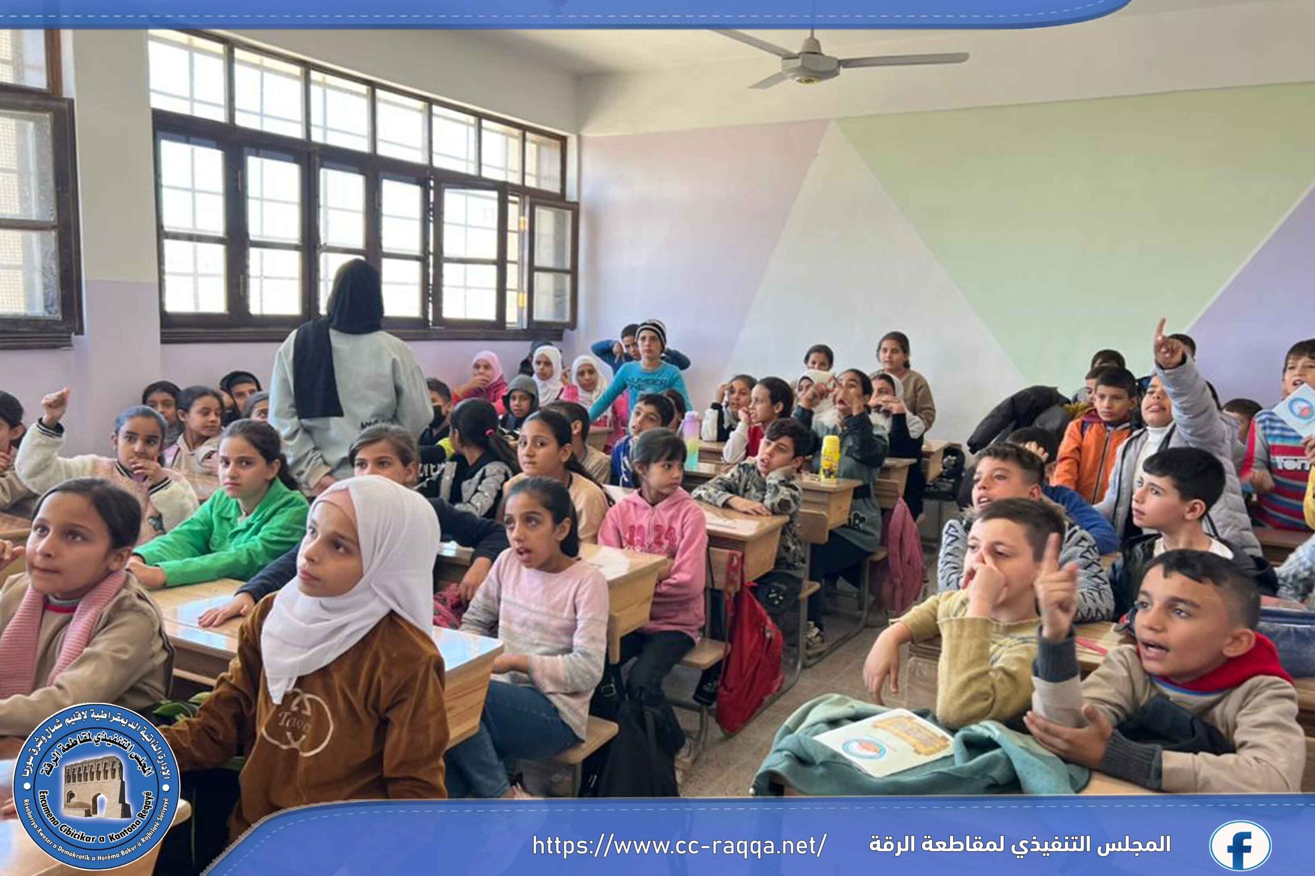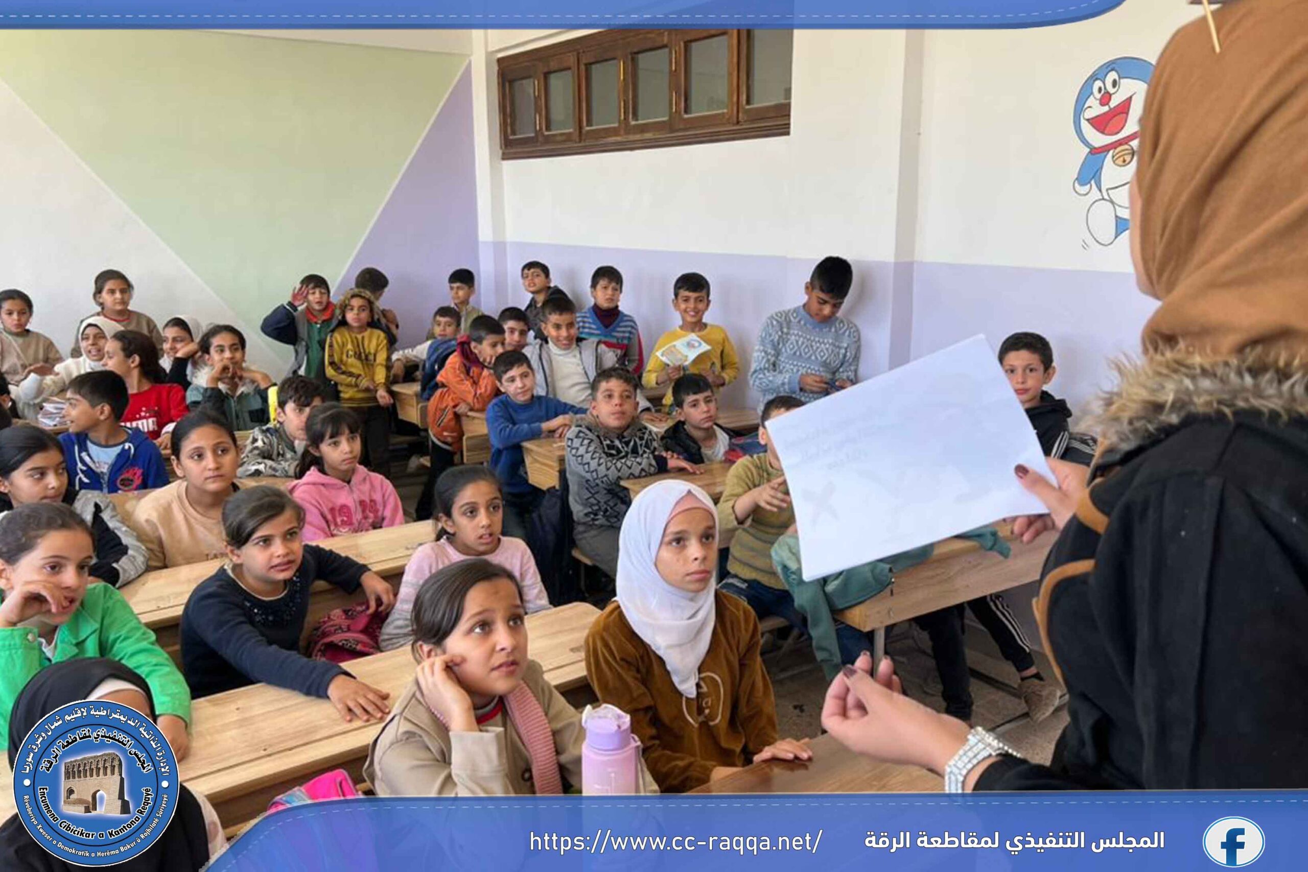بهدف تعزيز الوعي البيئي لدى الطلاب، أجرت دائرة التوعية والتثقيف التابعة لهيئة البيئة في مقاطعة الرقة صباح اليوم 24 تشرين الأول، زيارة إلى مدرسة الرشيد الابتدائية، لتنفيذ مجموعة من الأنشطة التوعوية.