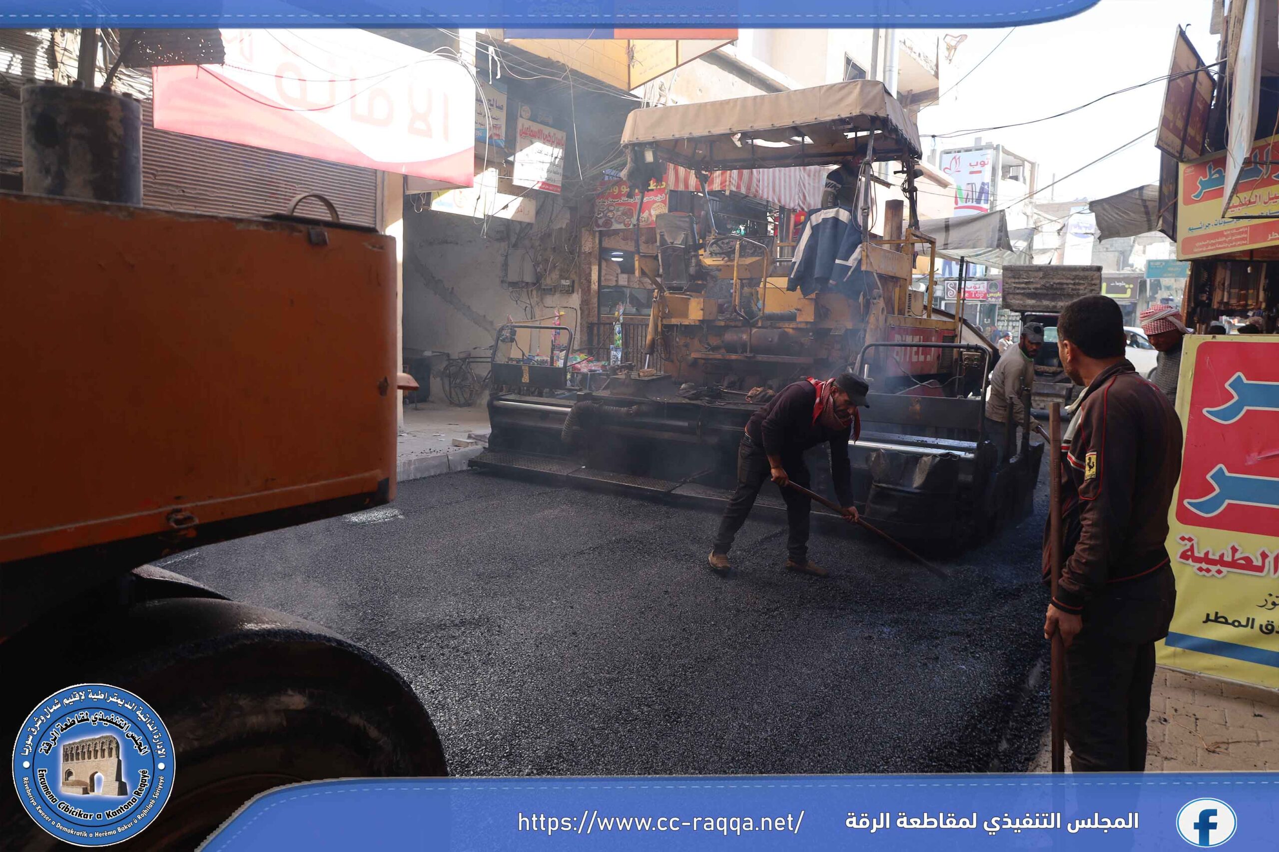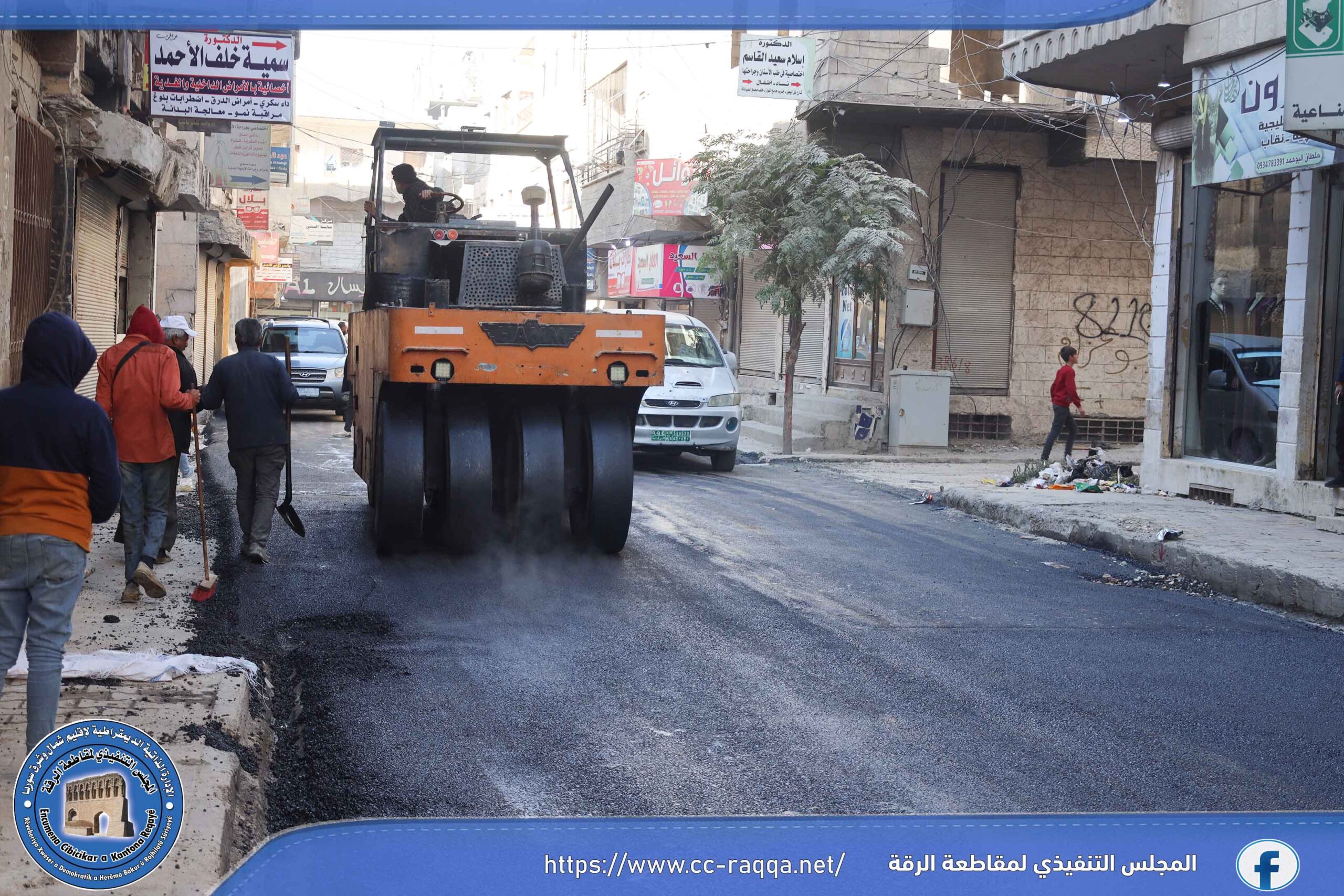يذكر أن هيئة الإدارة المحلية والبلديات في مقاطعة الرقة شارفت على الانتهاء من مشاريع تعبيد الطرقات ضمن المدينة.