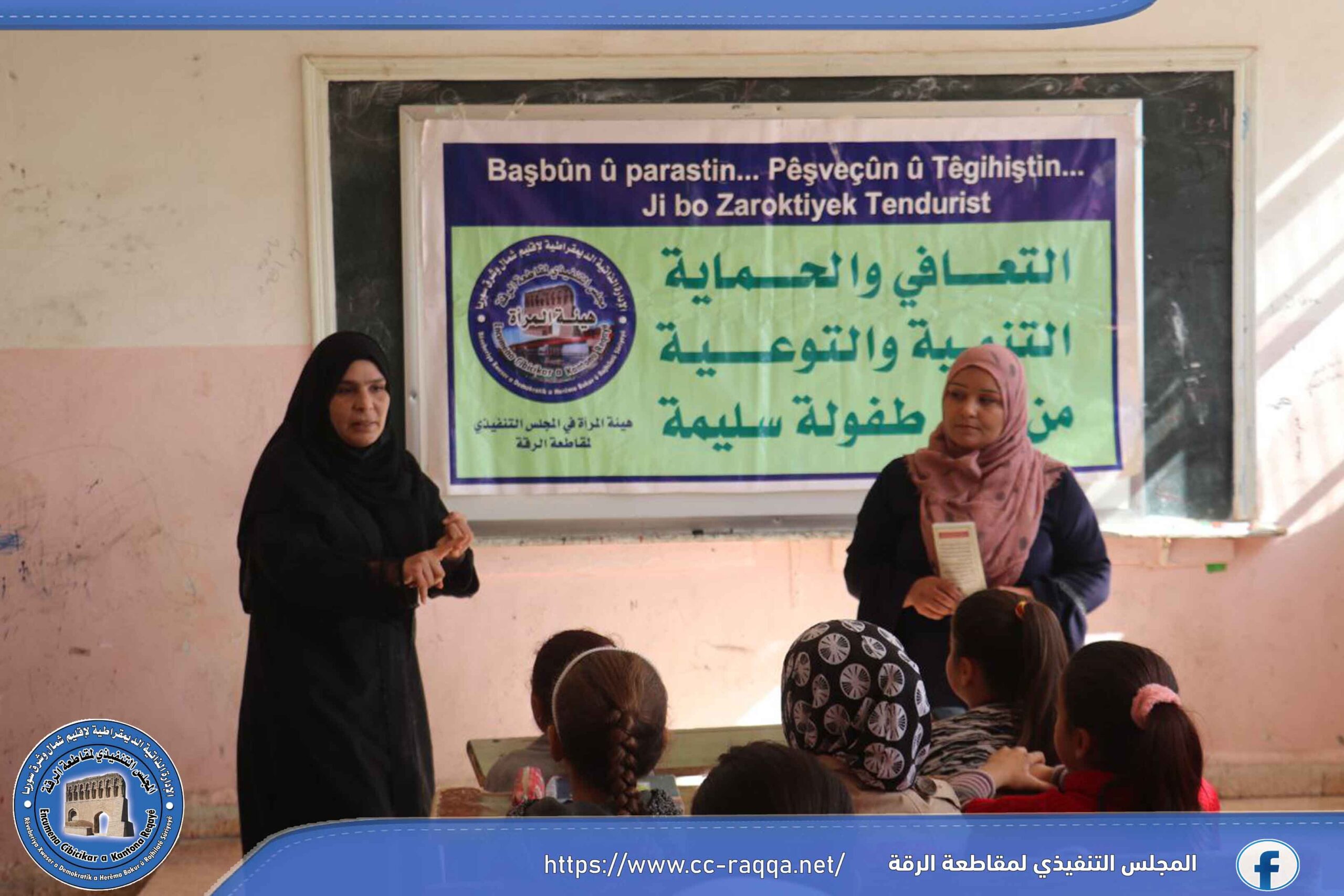 ضمن فعاليات الحملة التي أطلقتها هيئة المرأة في إقليم شمال وشرق سوريا، وتحت شعار (التعافي والحماية … التنمية والتوعية … من أجل طفولة سليمة)، نظم مكتب حماية الطفل التابع لهيئة المرأة في مقاطعة الرقة صباح اليوم 27 تشرين الأول، محاضرة توعوية للعديد من الأطفال في عدة مدارس ضمن المدينة.