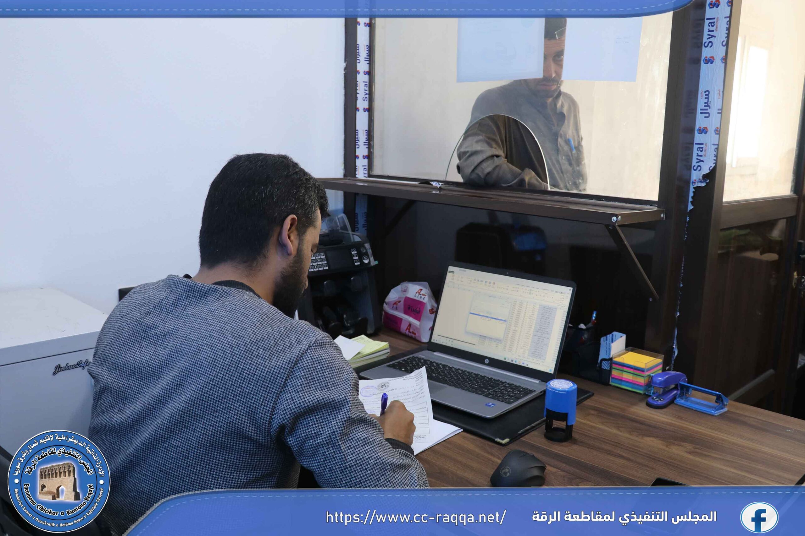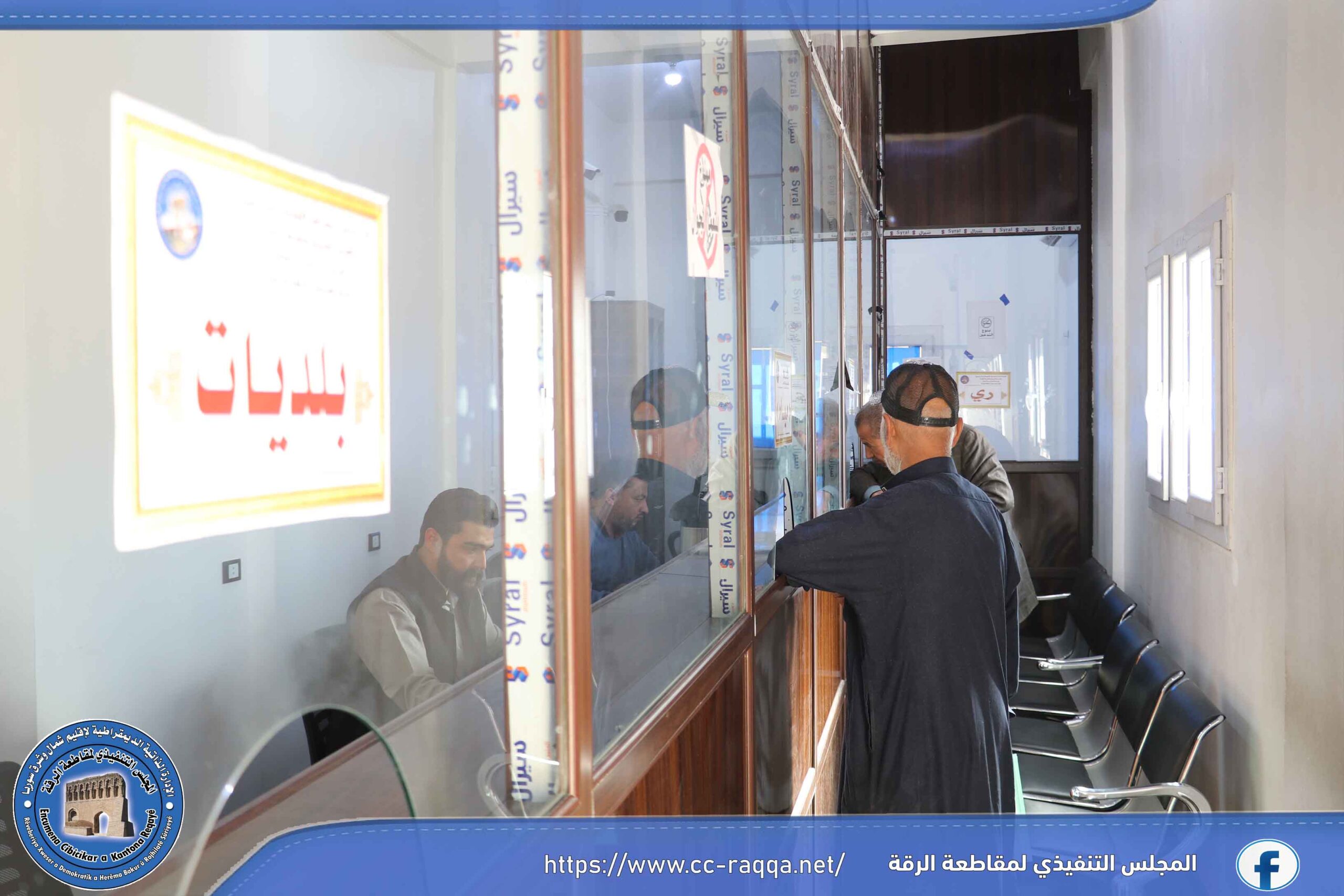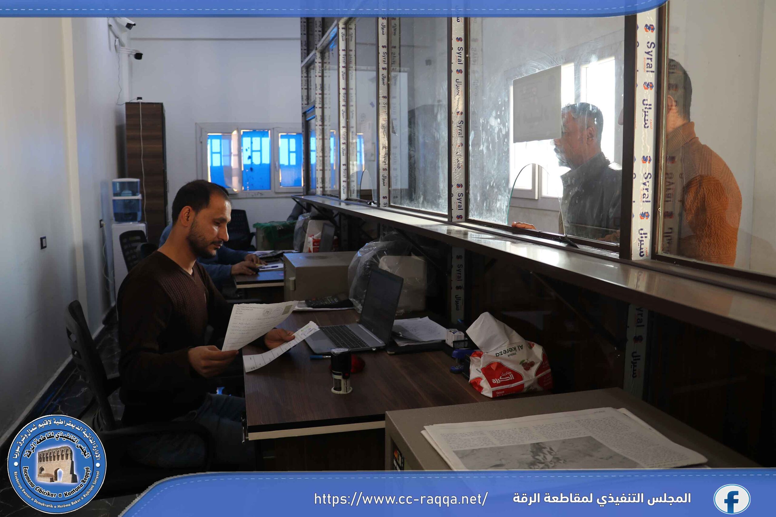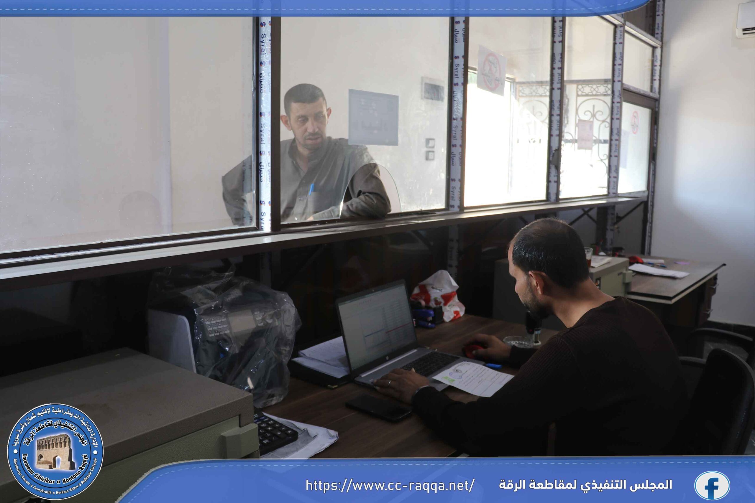 يعمل مكتب النافذة الواحدة التابع لهيئة المالية في مقاطعة الرقة، على استقبال جميع المراجعين لاستخراج براءة الذمة المالية، والذي يتألف من 4 نوافذ وهي (البلدية _ الكهرباء _ المياه _ الري).