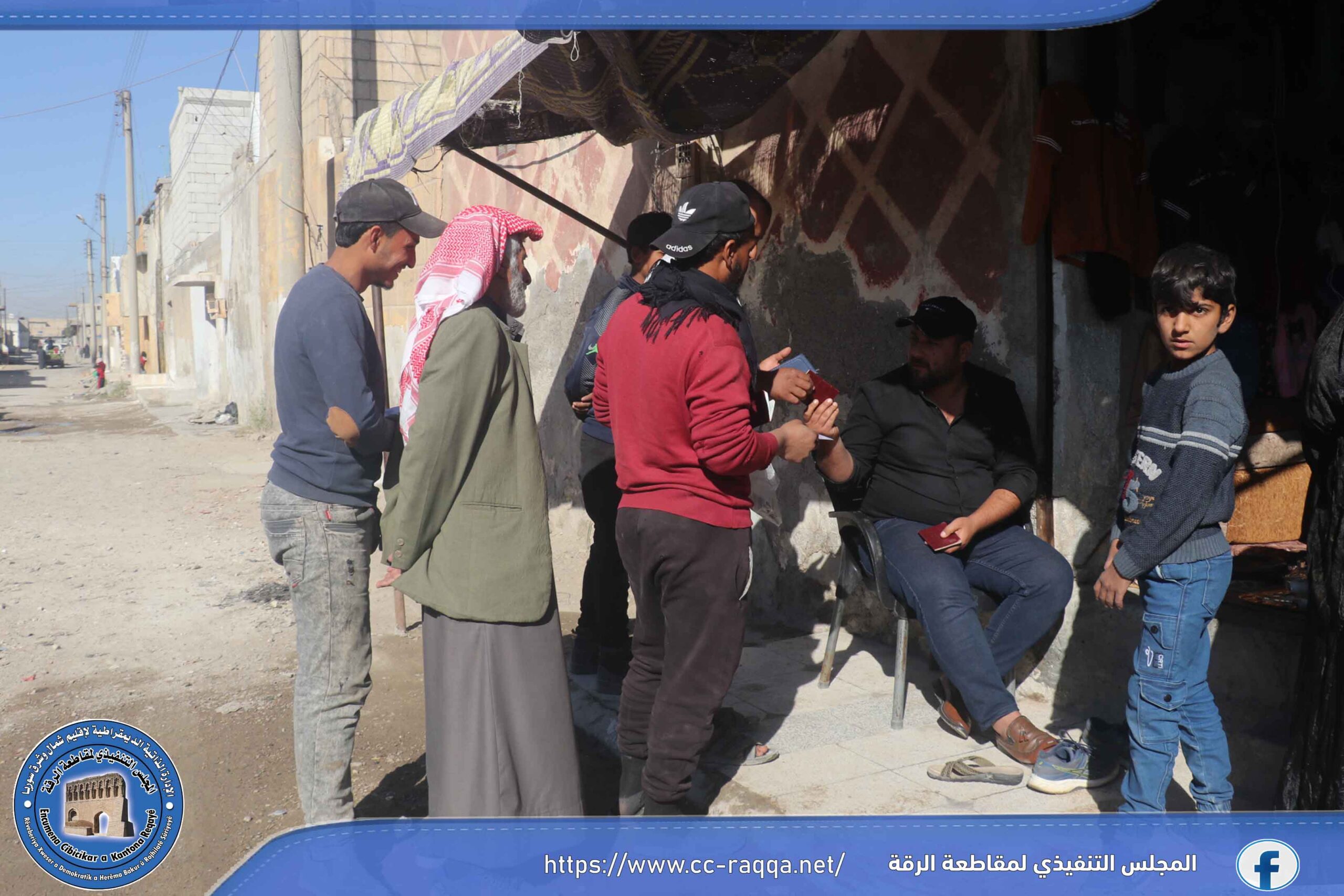 يستمر مكتب الإحصاء والتخطيط التابع لهيئة الاقتصاد في مقاطعة الرقة وبالتنسيق مع مكتب المعتمدين، على تشييك وتدقيق البطاقات الخاصة بمادة الخبز في مجلس الشهيد (أحمد الجانم)، حيث تم احصاء ما يقارب الـ 80 % حتى تاريخ اليوم 29 تشرين الأول، بهدف توزيع الكمية المخصصة لكل مجلس.