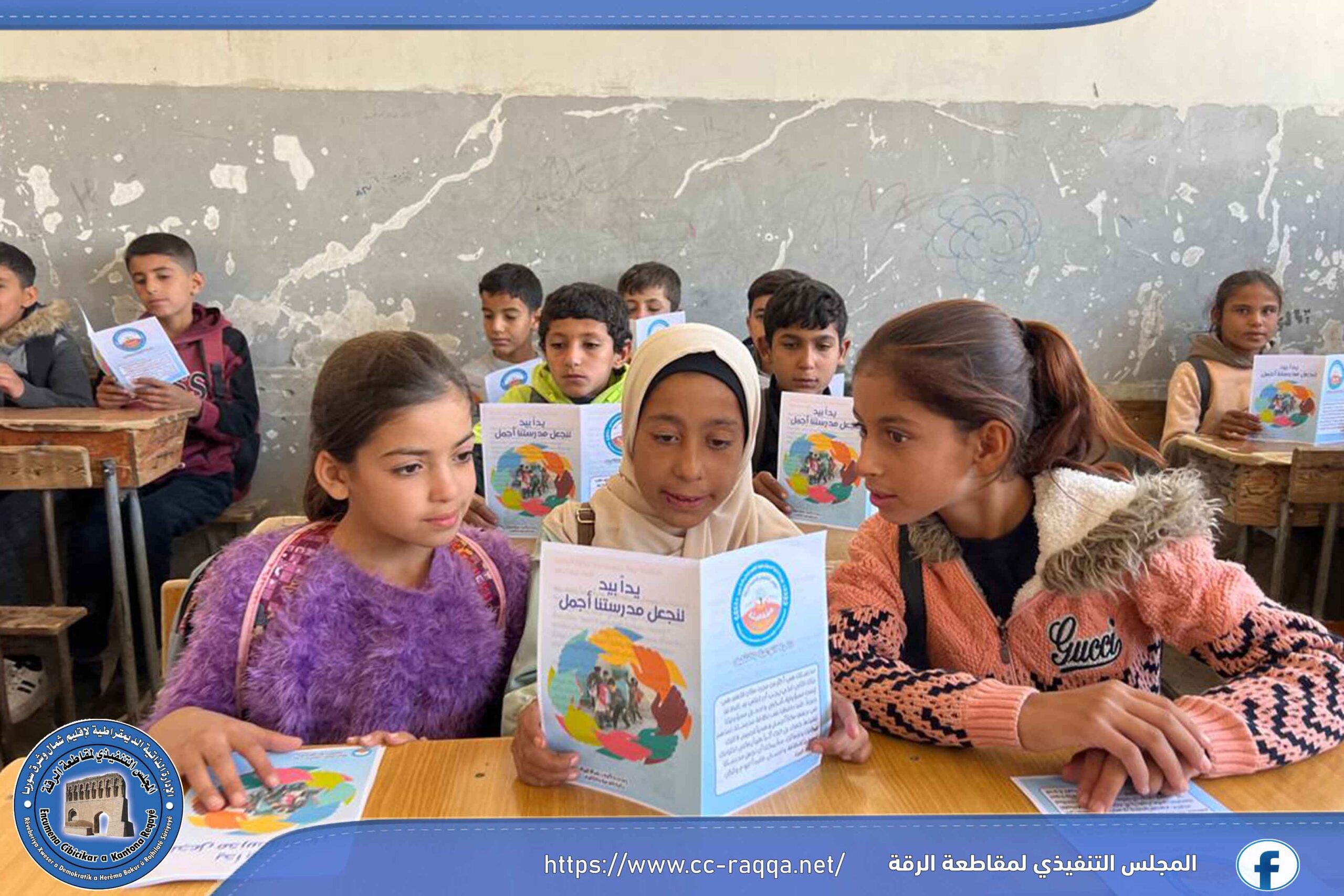 تحت شعار (يداً بيد لنجعل مدرستنا أجمل)، أطلقت دائرة التوعية والتثقيف التابعة لهيئة البيئة وبالتعاون مع هيئة التربية والتعليم في مقاطعة الرقة وبتاريخ 27 تشرين الأول الجاري، حملة نظافة لمدارس الريف الجنوبي.