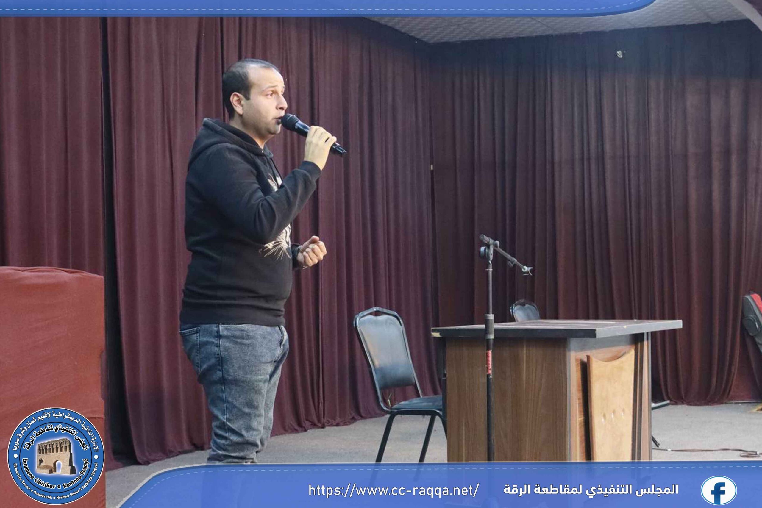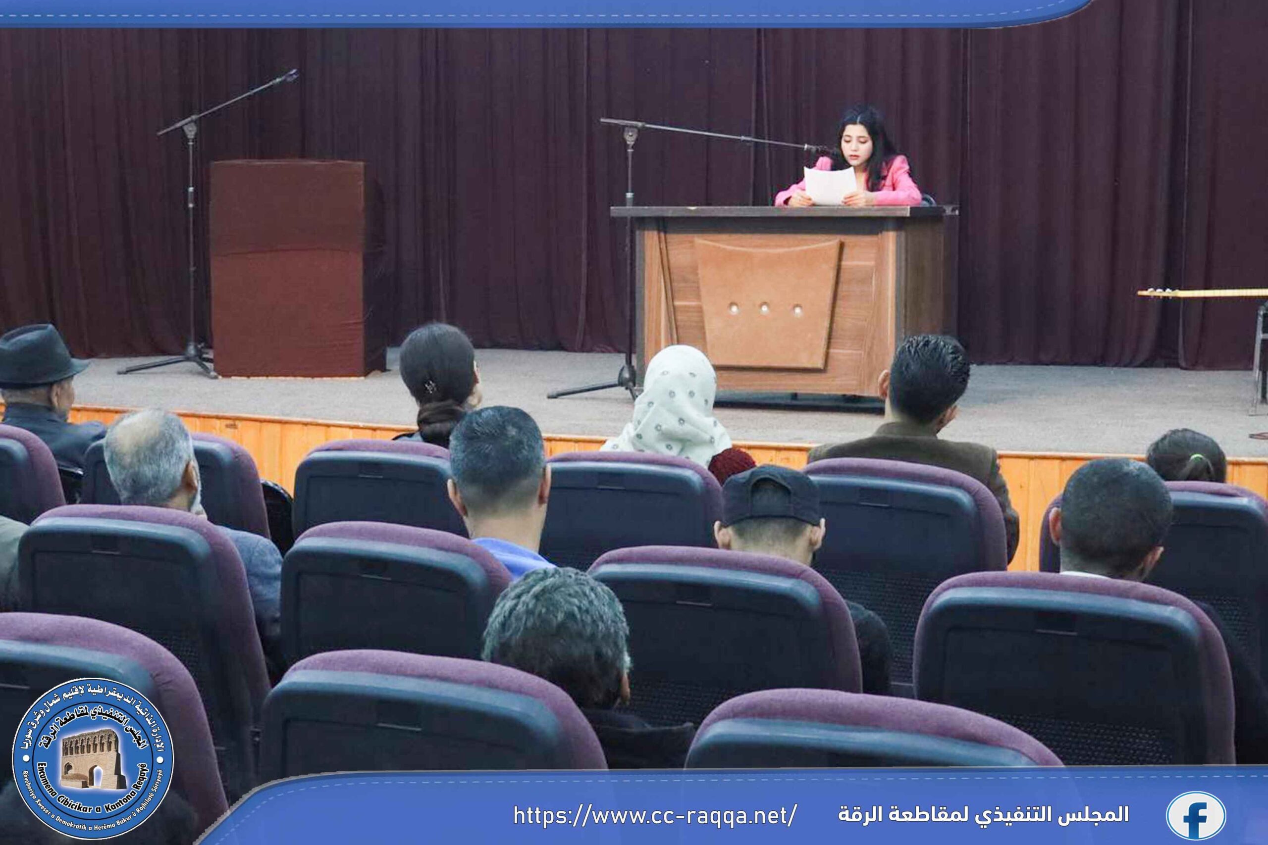 نظمت هيئة الثقافة والآثار في مقاطعة الرقة أمس 29 تشرين الأول، أمسية أدبية في قاعة المسرح بمركز الرقة للثقافة والفنون، بمشاركة الكاتبة “سوسن خليل” والشاعر “سعيد السراج” والشاعر “عمر الصران”، وبحضور عدد من الشعراء والأدباء والفنانين والمثقفين.