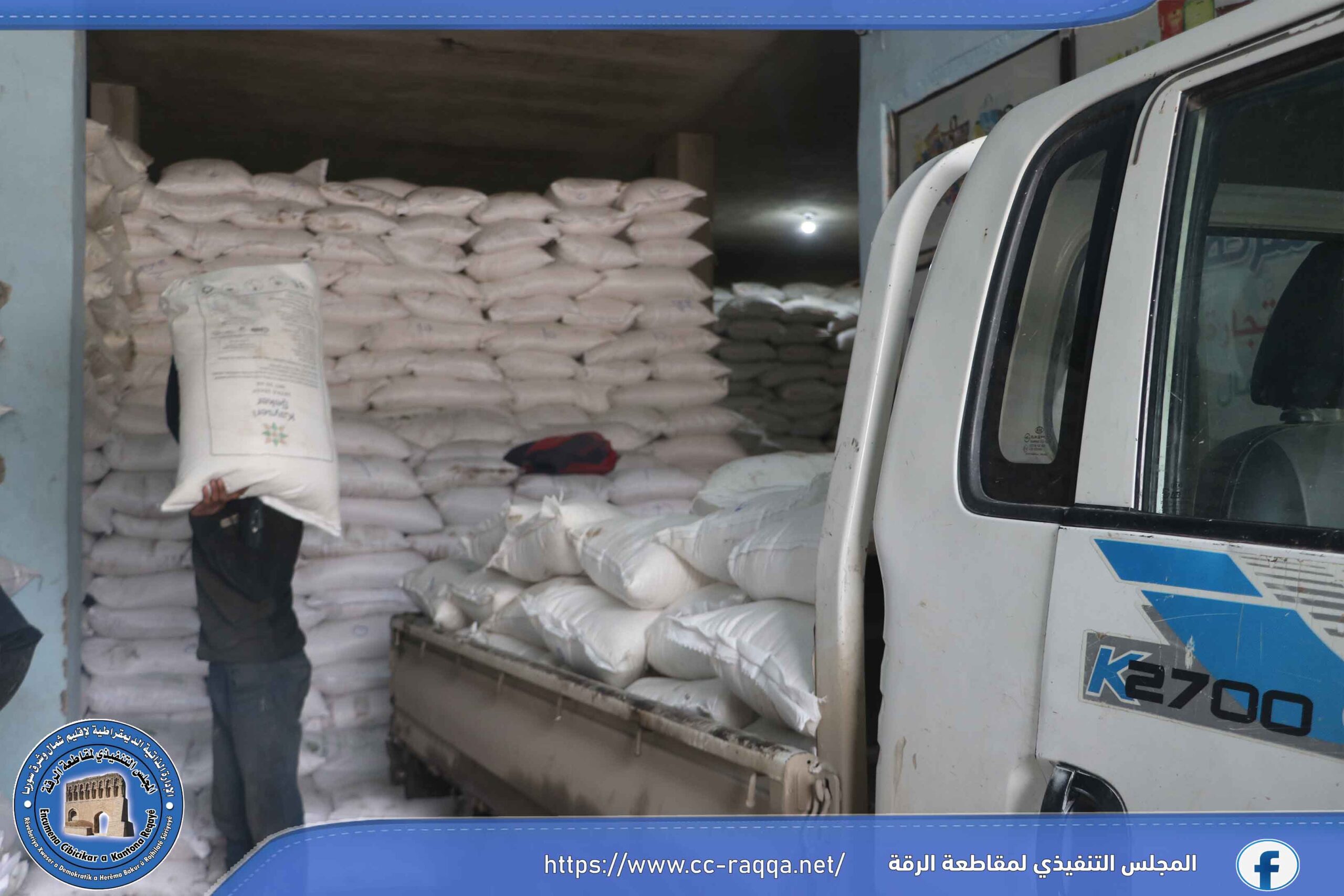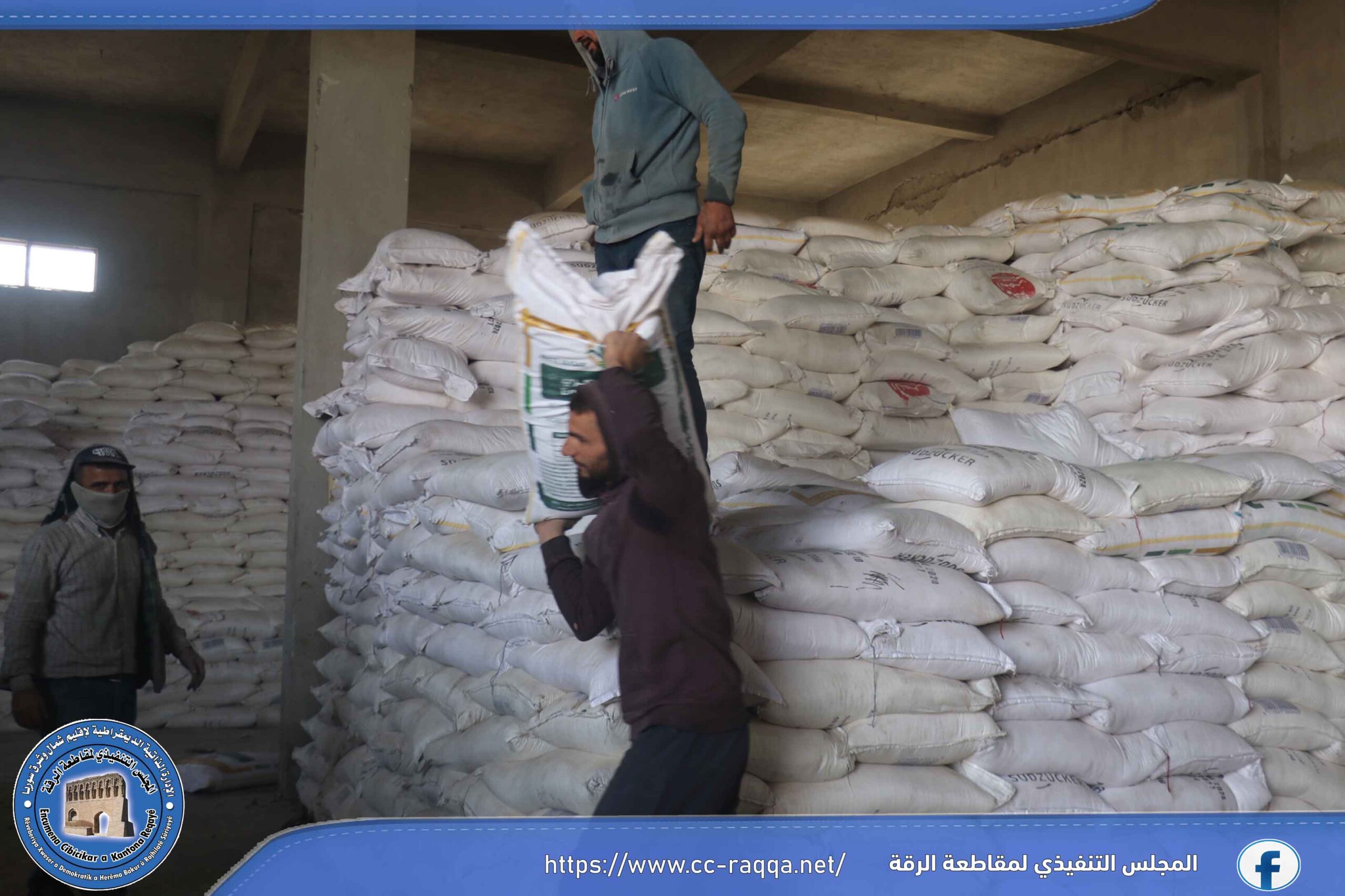 شركة نوروز تؤمن مادة السكر بكميات كبيرة لأهالي مدينة الرقة وريفها