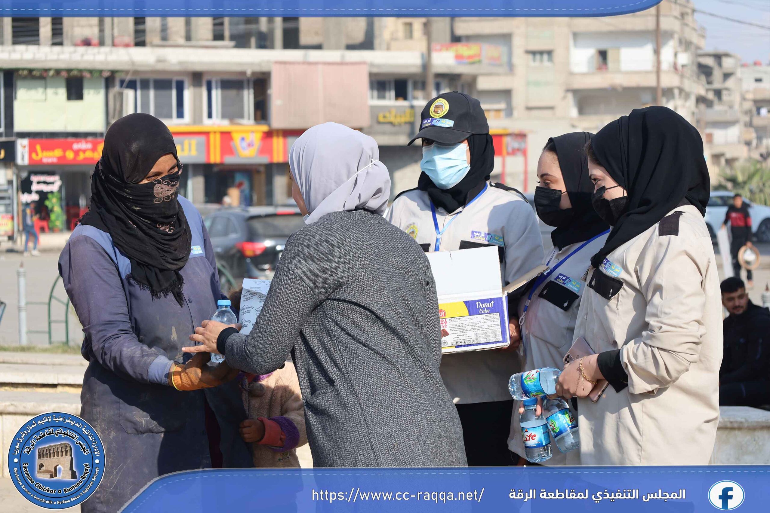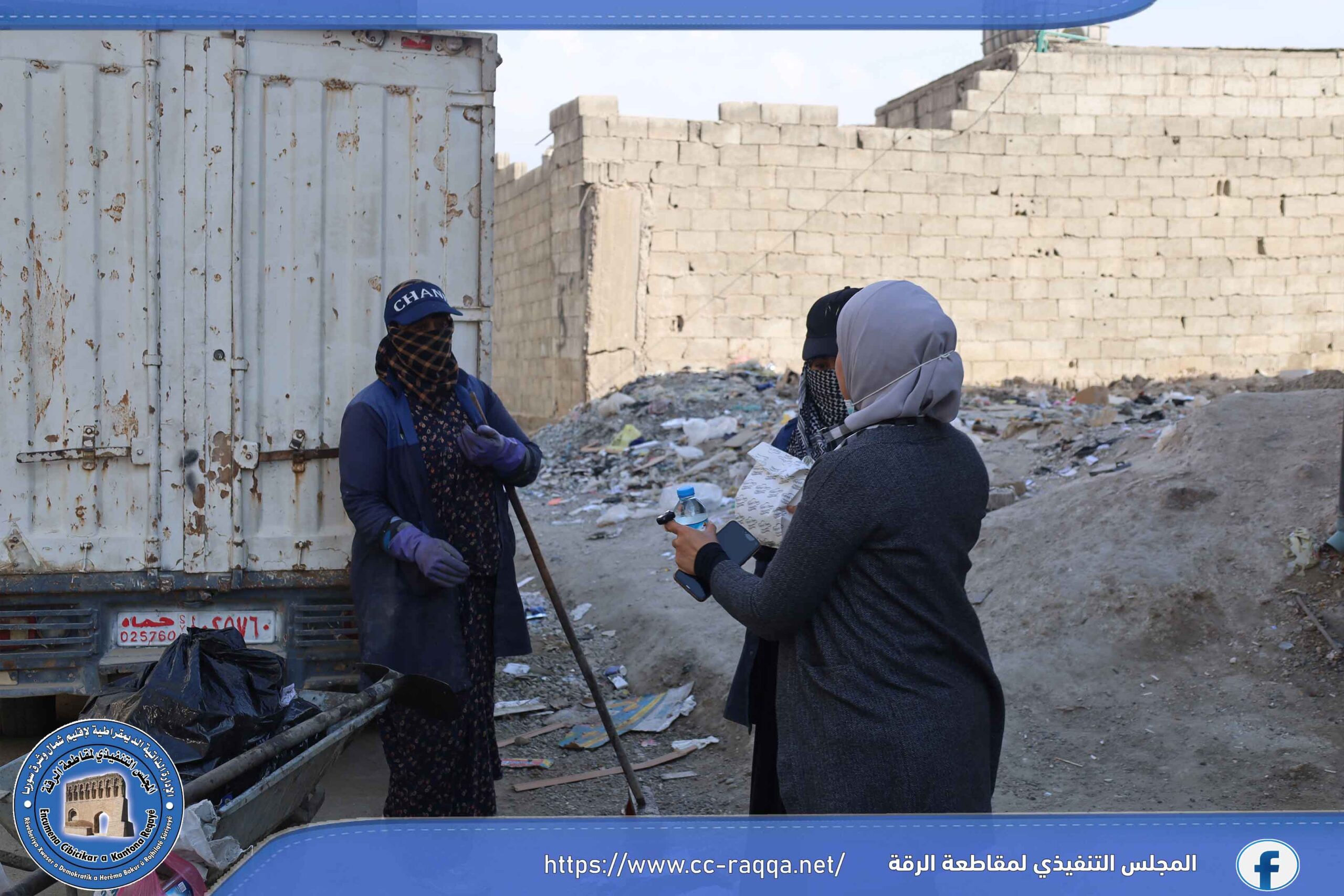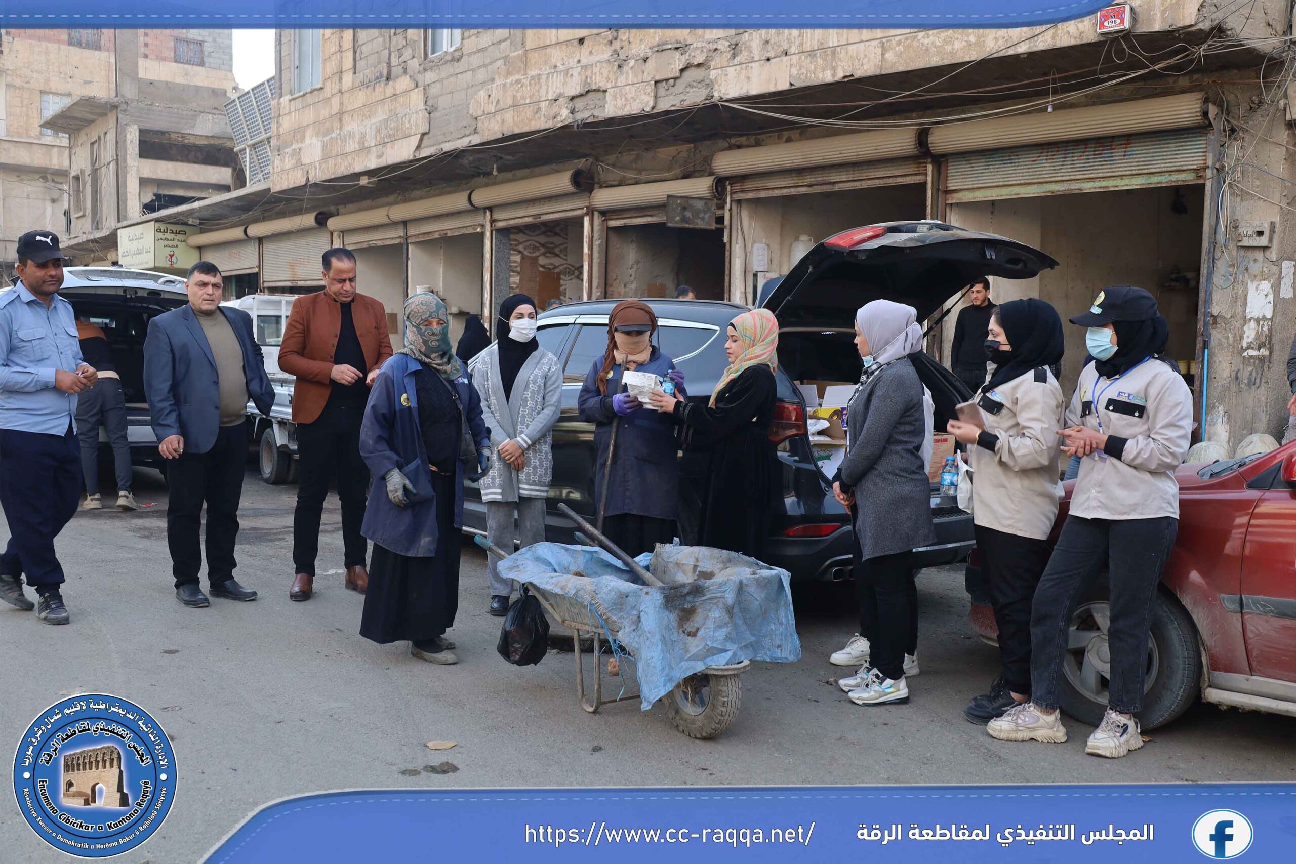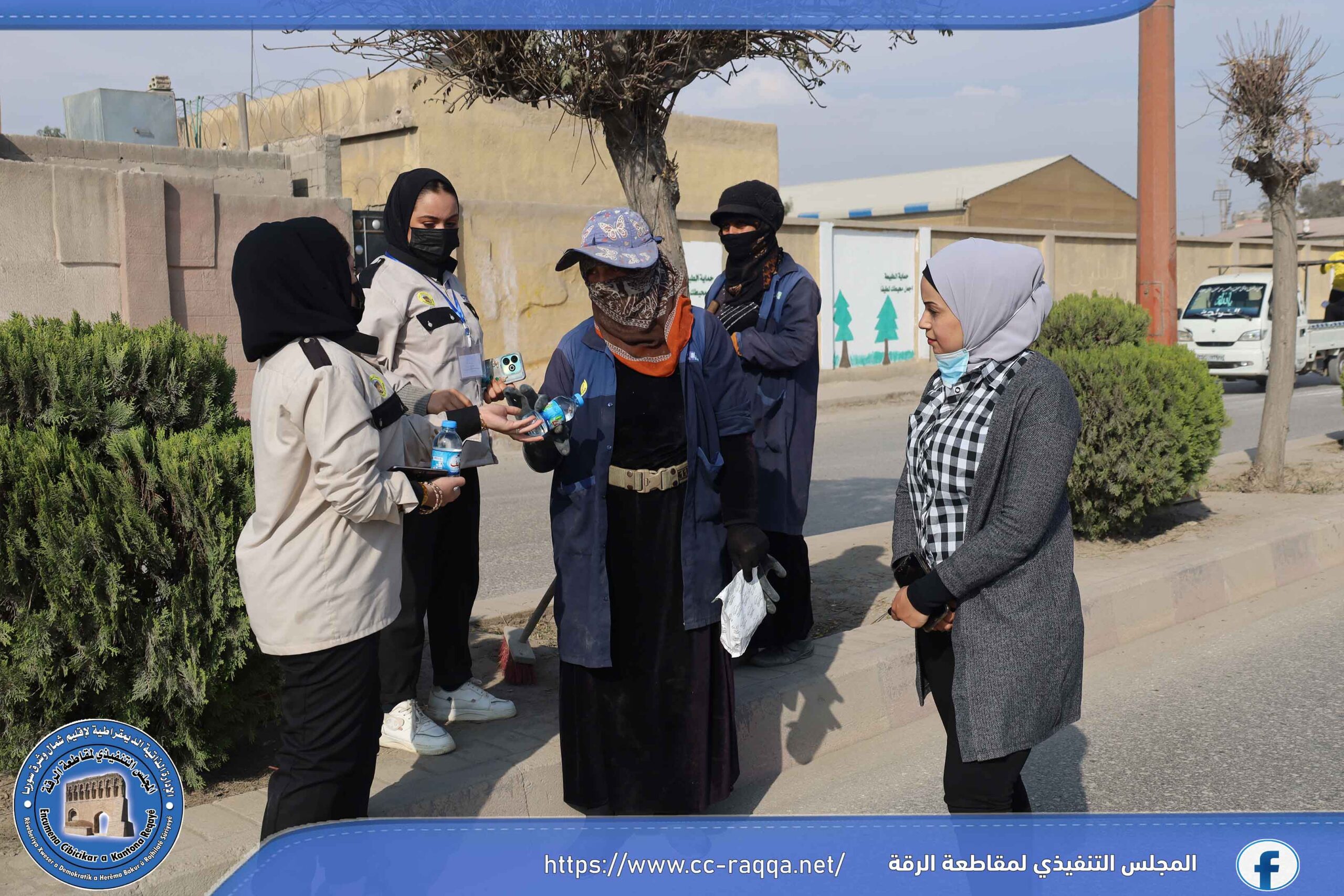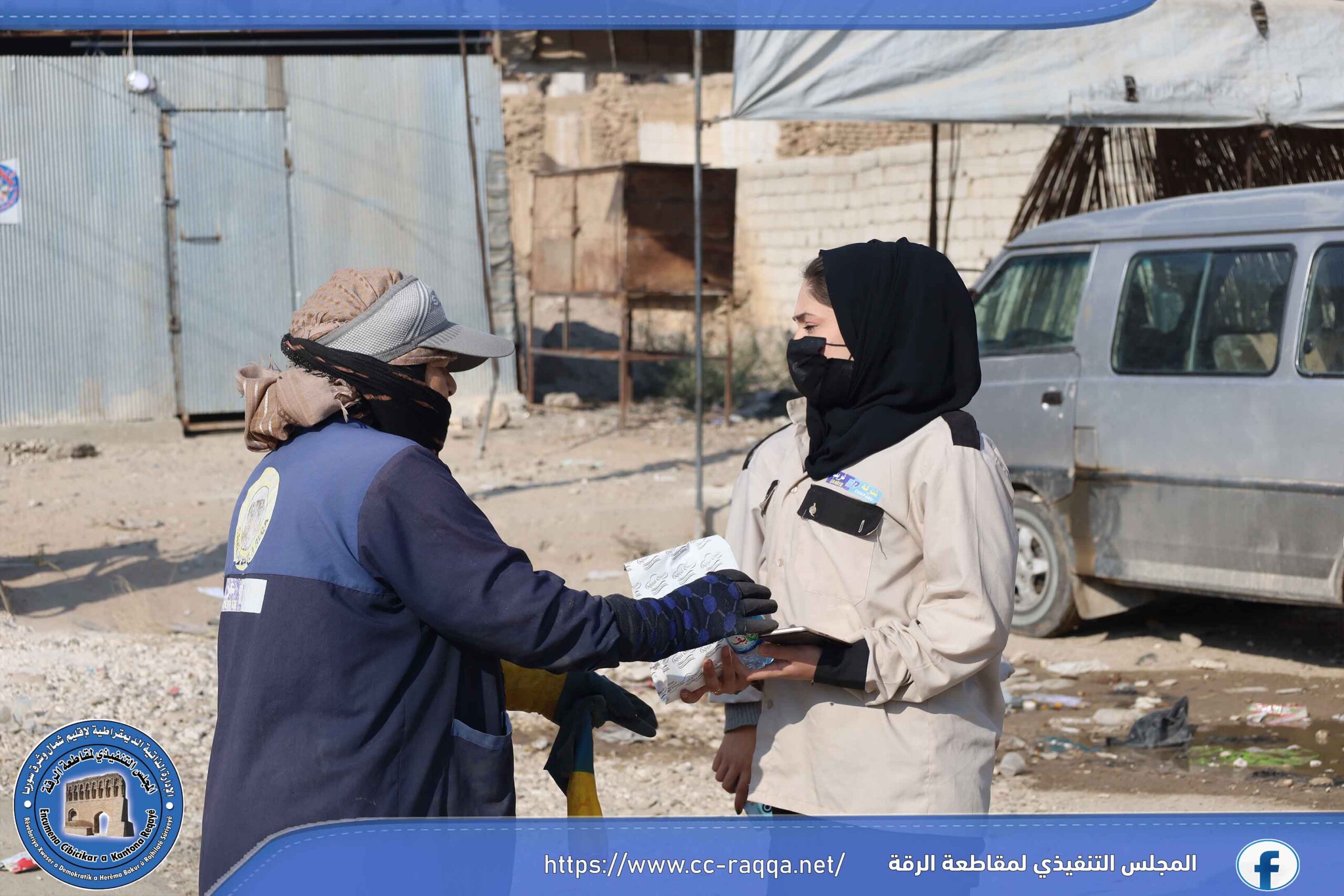 بعمل مشترك بين اتحاد الكادحين التابع لتنظيمات المجتمع الديمقراطي وشركة غريب المستثمرة لقطاع النظافة في مدينة الرقة، تم صباح اليوم 2 تشرين الثاني، إجراء زيارة شملت عدداً من عمال وعاملات النظافة في مدينة الرقة، بالإضافة للعاملين ضمن مشتل الرقة البلدي، بهدف تقديم بعض الهدايا الرمزية والدعم المعنوي لهم.