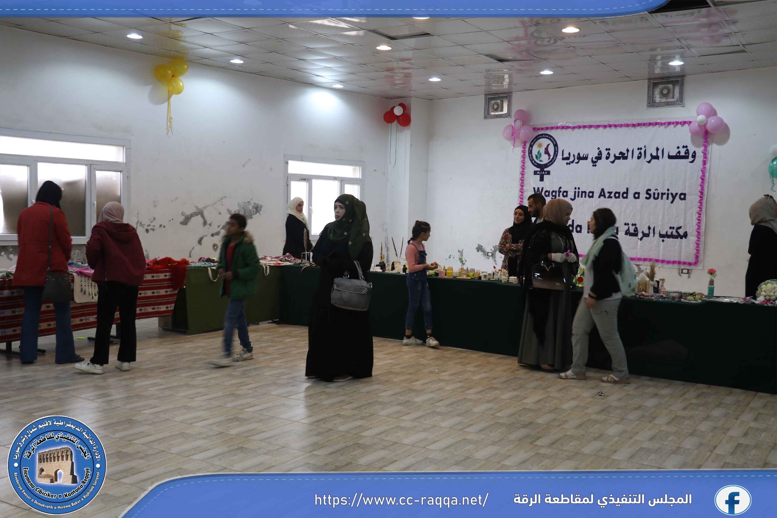 افتتح وقف المرأة الحرة في الرقة وبالتنسيق مع مكتبي الطبقة ومنبج صباح اليوم 3 تشرين الثاني، المعرض التسويقي الأول الخاص به ولمدة يومين متتاليين، في صالة الملعب البلدي، بمشاركة هيئة التربية والتعليم في مقاطعة الرقة وحركة الهلال الذهبي ومركز كوكب الطفولة.