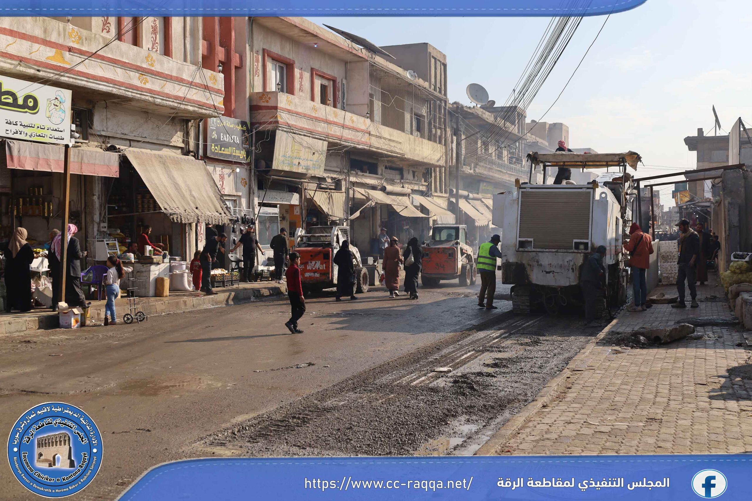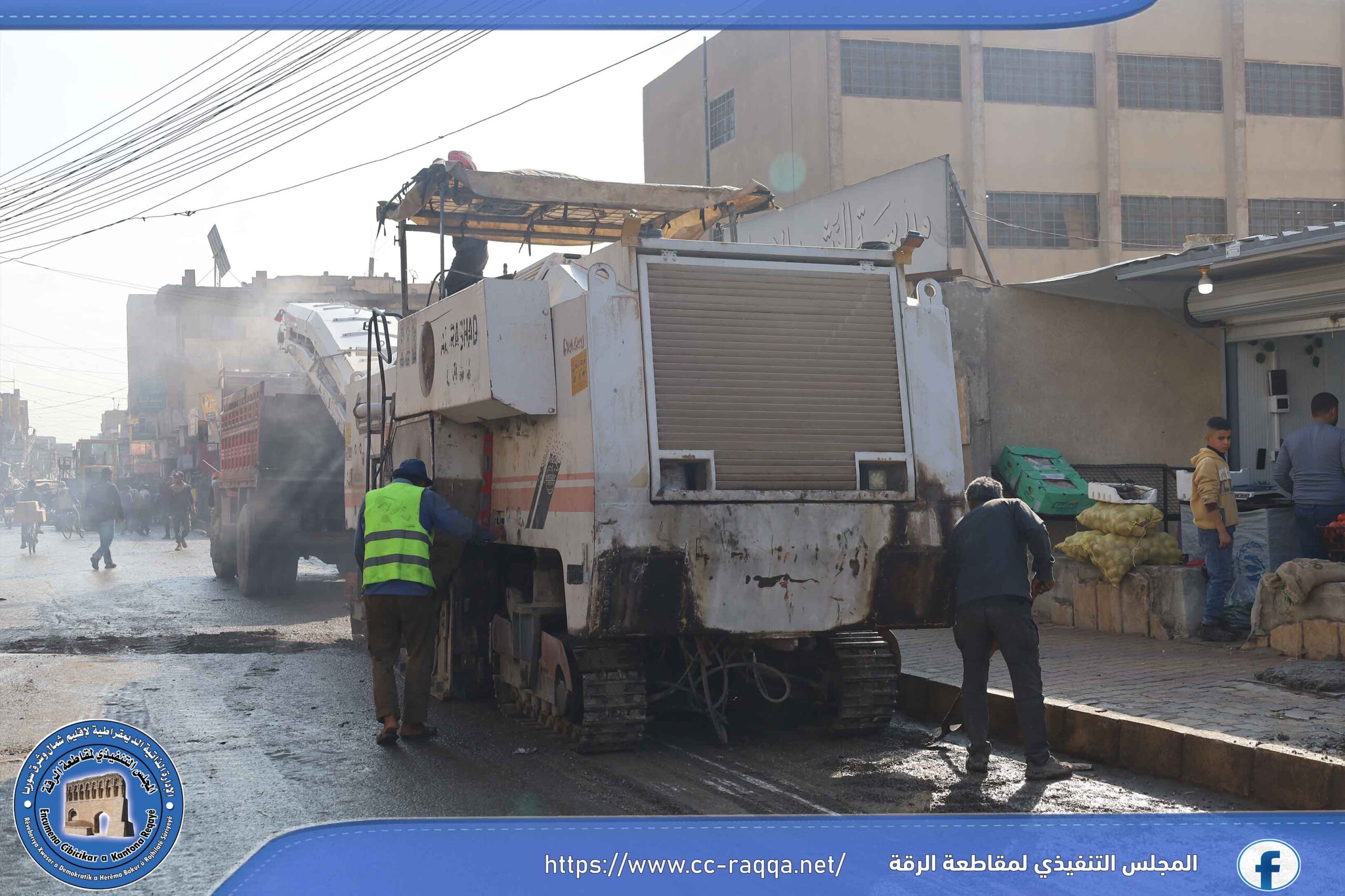 باشرت الورشات التابعة لبلدية الشعب في الرقة صباح اليوم 3 تشرين الثاني، بإجراء عمليات قشط الإسفلت المتضرر ضمن شارع القوتلي، تجهيزاً لتعبيده خلال الفترة القادمة، بطول 835 متر وعرض 7 أمتار.