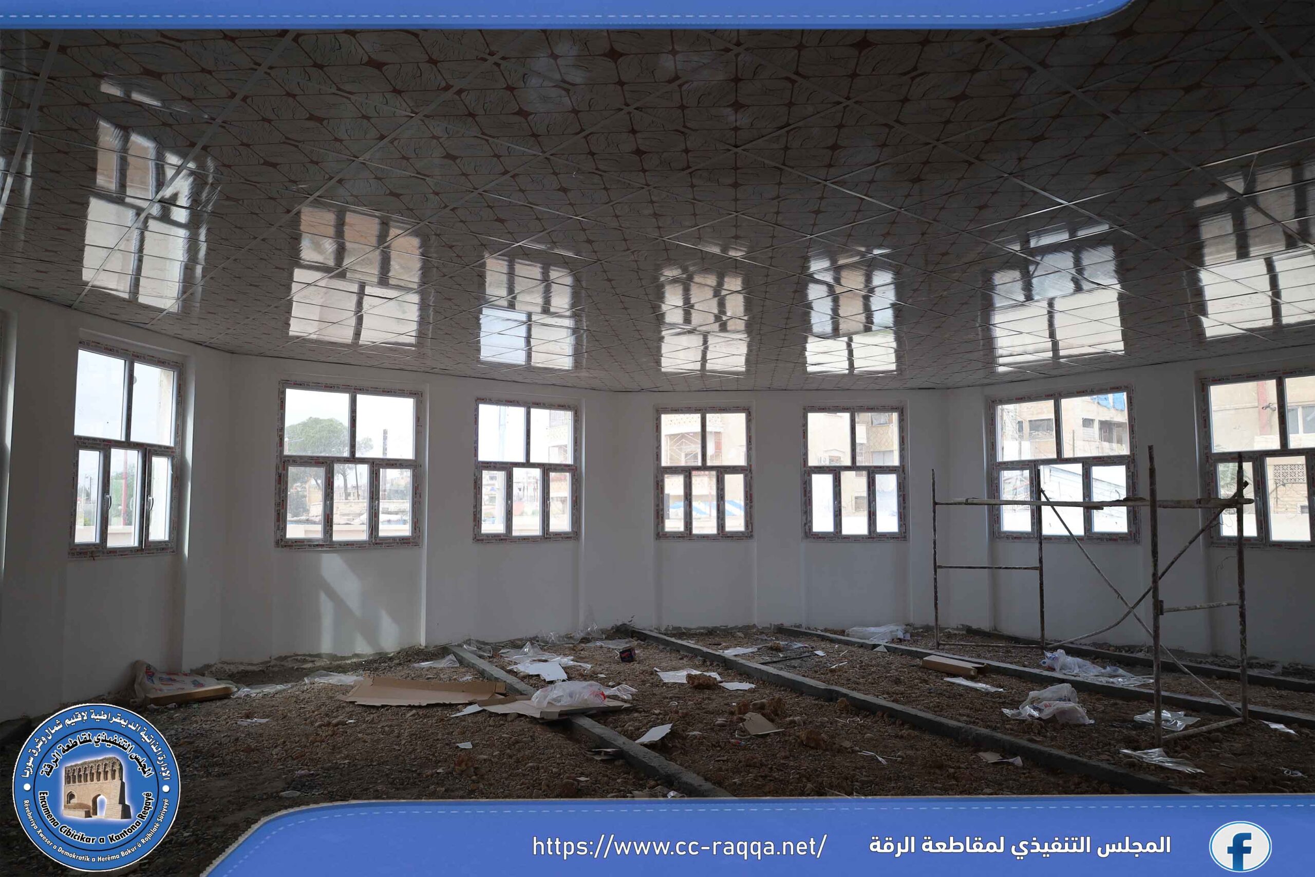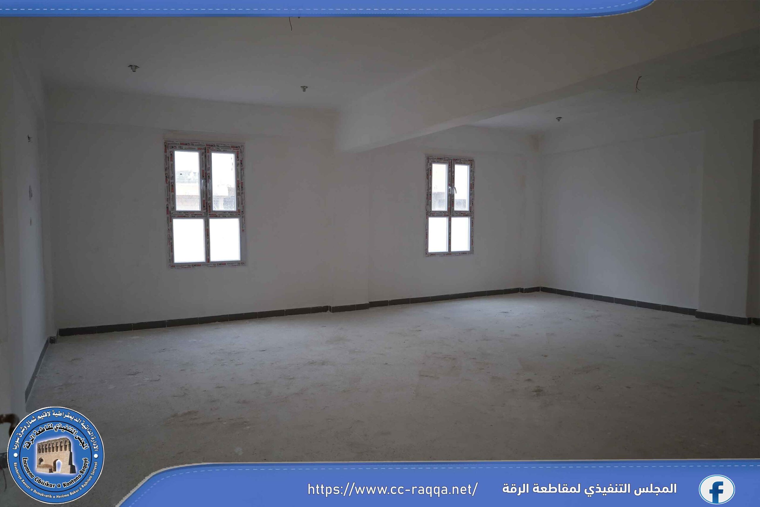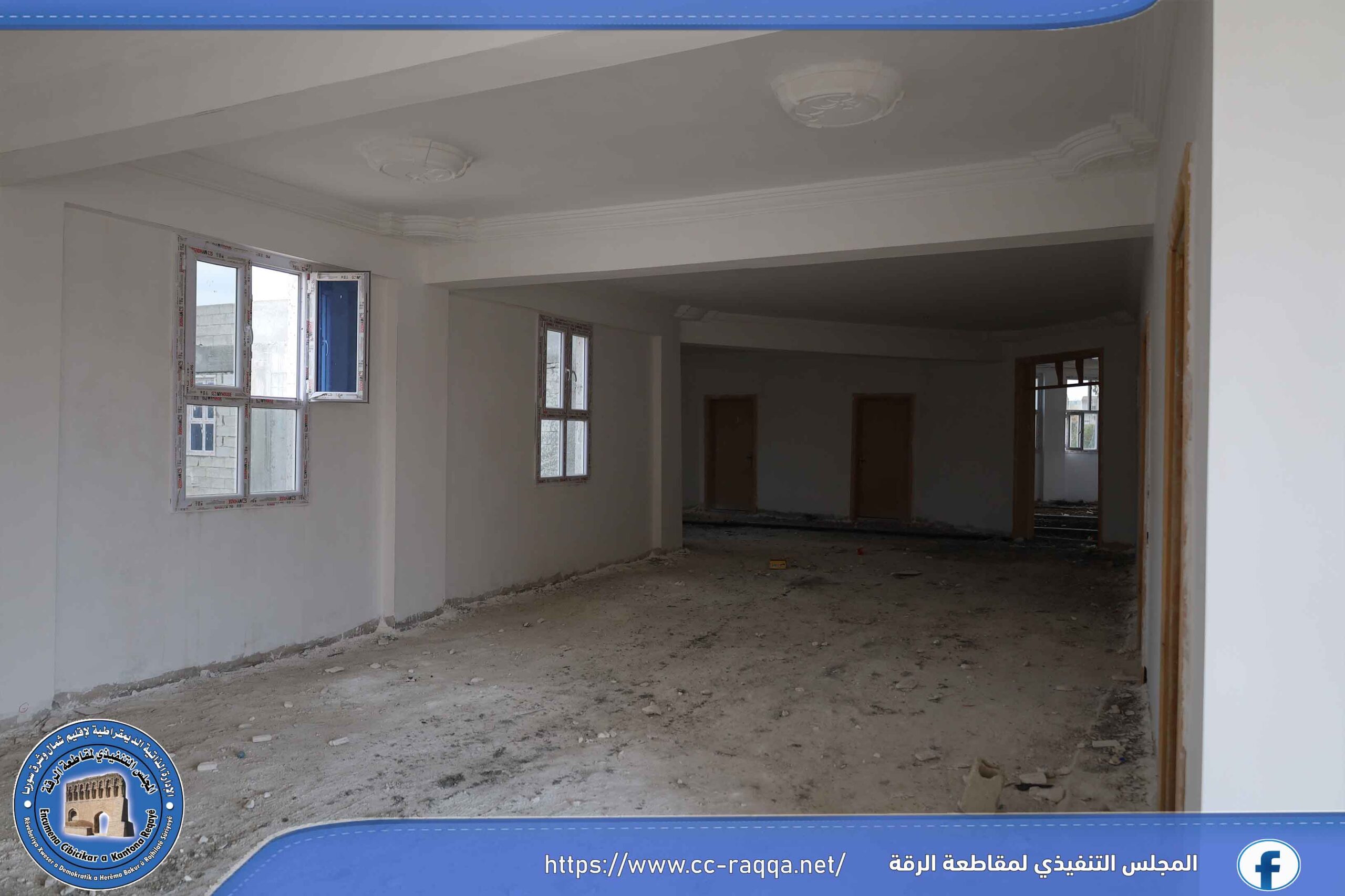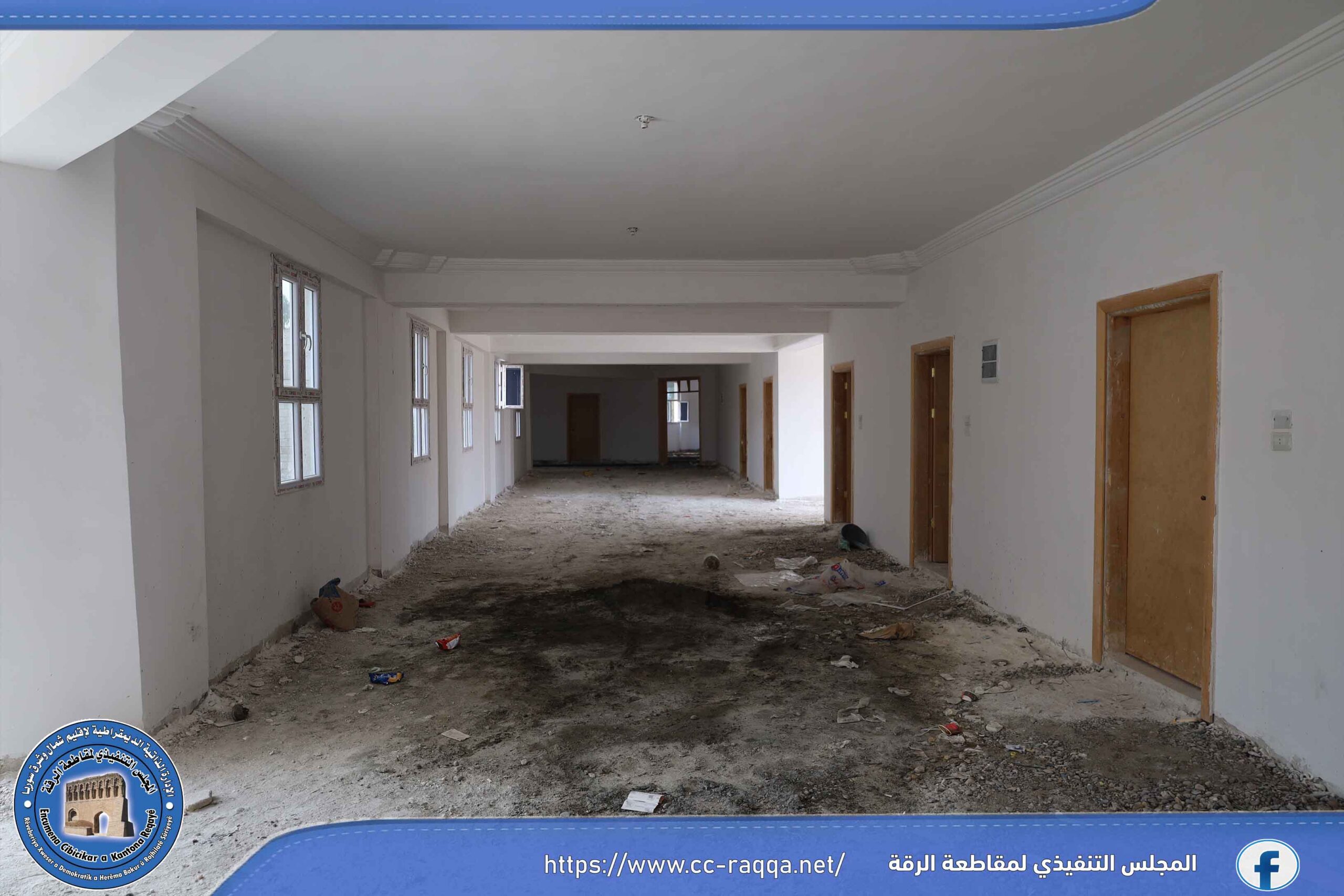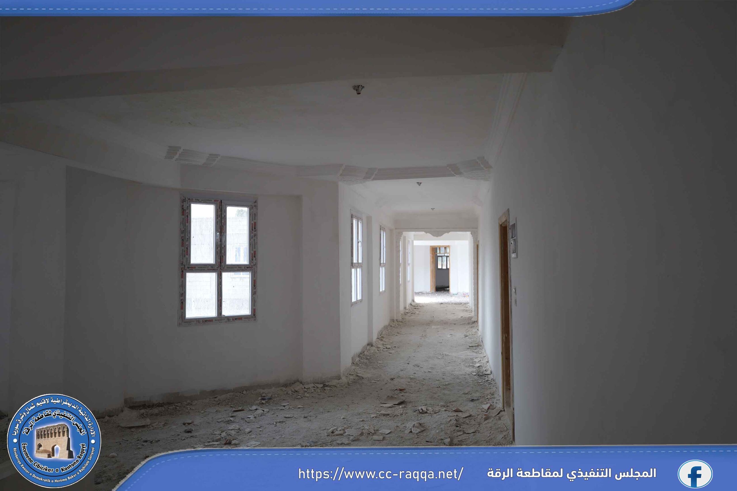 حيث وبعد الانتهاء من الأعمال الإنشائية، تجري خلال الفترة الحالية إنجاز أعمال الإكساء، من تركيب أبواب ونوافذ وطلاء للجدران وبلاط، وبلغت نسبة الإنجاز ما يقارب الـ 60 %.