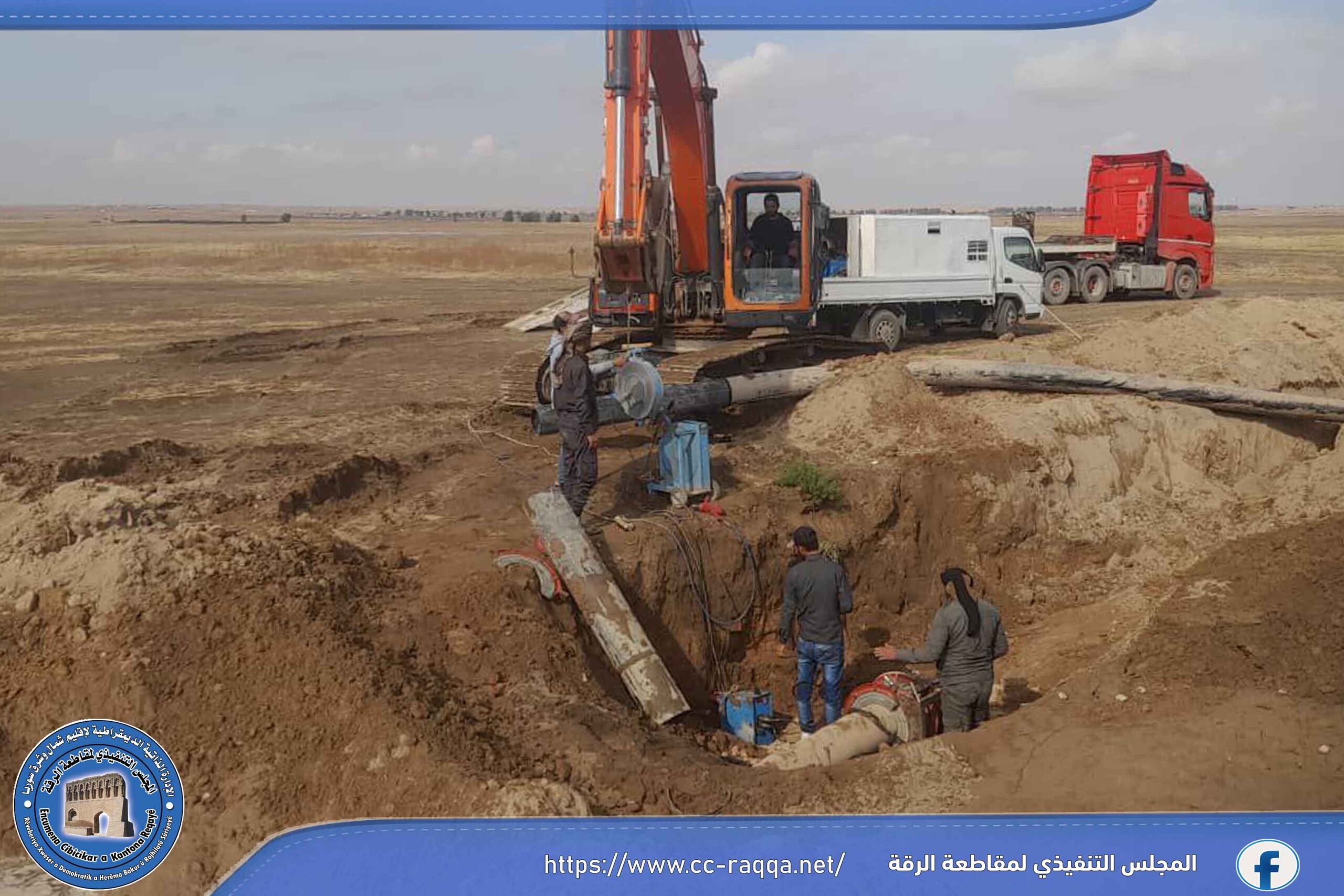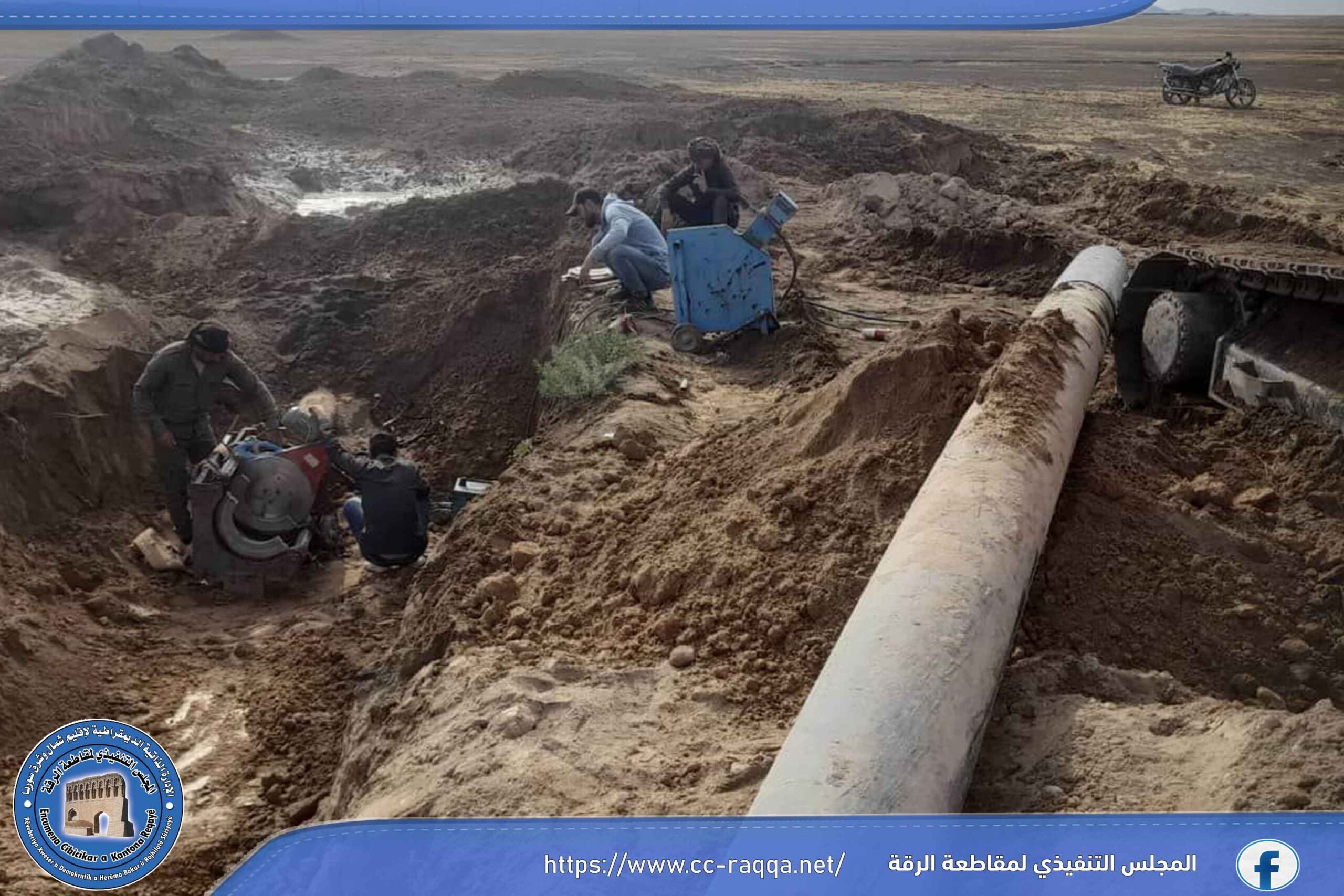 عملت دائرة المياه التابعة لهيئة الإدارة المحلية والبلديات في مقاطعة الرقة صباح اليوم 3 تشرين الثاني، على إصلاح كسر ضمن خط مياه رئيسي بقطر 315 ملم، والمغذي من محطة الخفية باتجاه محطة مهران البادية، بجانب الطريق العام (الرقة _ الحسكة)، علماً أن الخط يغذي عدة مناهل ومحطات وهي (منهل الخفية _ منهل قرابيط _ منهل مهران _ محطة مهران _ محطة كحلان).