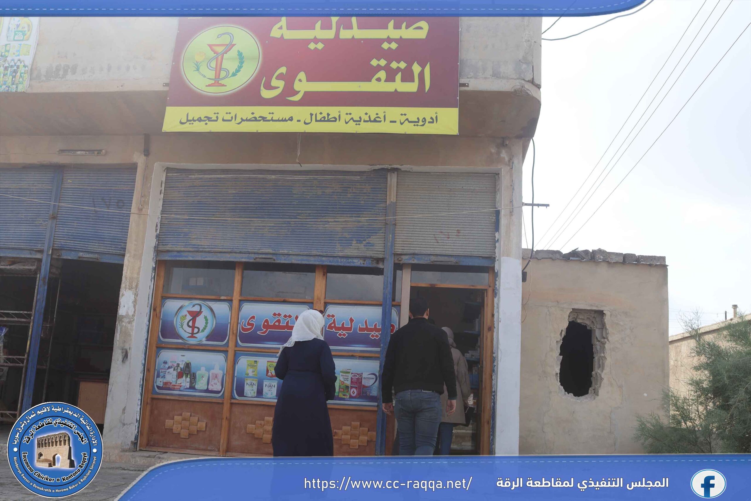 أجرى مكتب السجل والرقابة الدوائية التابع لهيئة الصحة في مقاطعة الرقة صباح اليوم 4 تشرين الثاني، جولة رقابية على الصيدليات الطبية الموجودة في الريف الجنوبي لمدينة الرقة، حيث تم إغلاق عدة صيدليات لعدم وجود ترخيص مزاولة المهنة، وإعطاء إنذارات بحق صيدليات أخرى، إضافة لبعض التوجيهات بضرورة النظافة والتقيد بالأسعار.