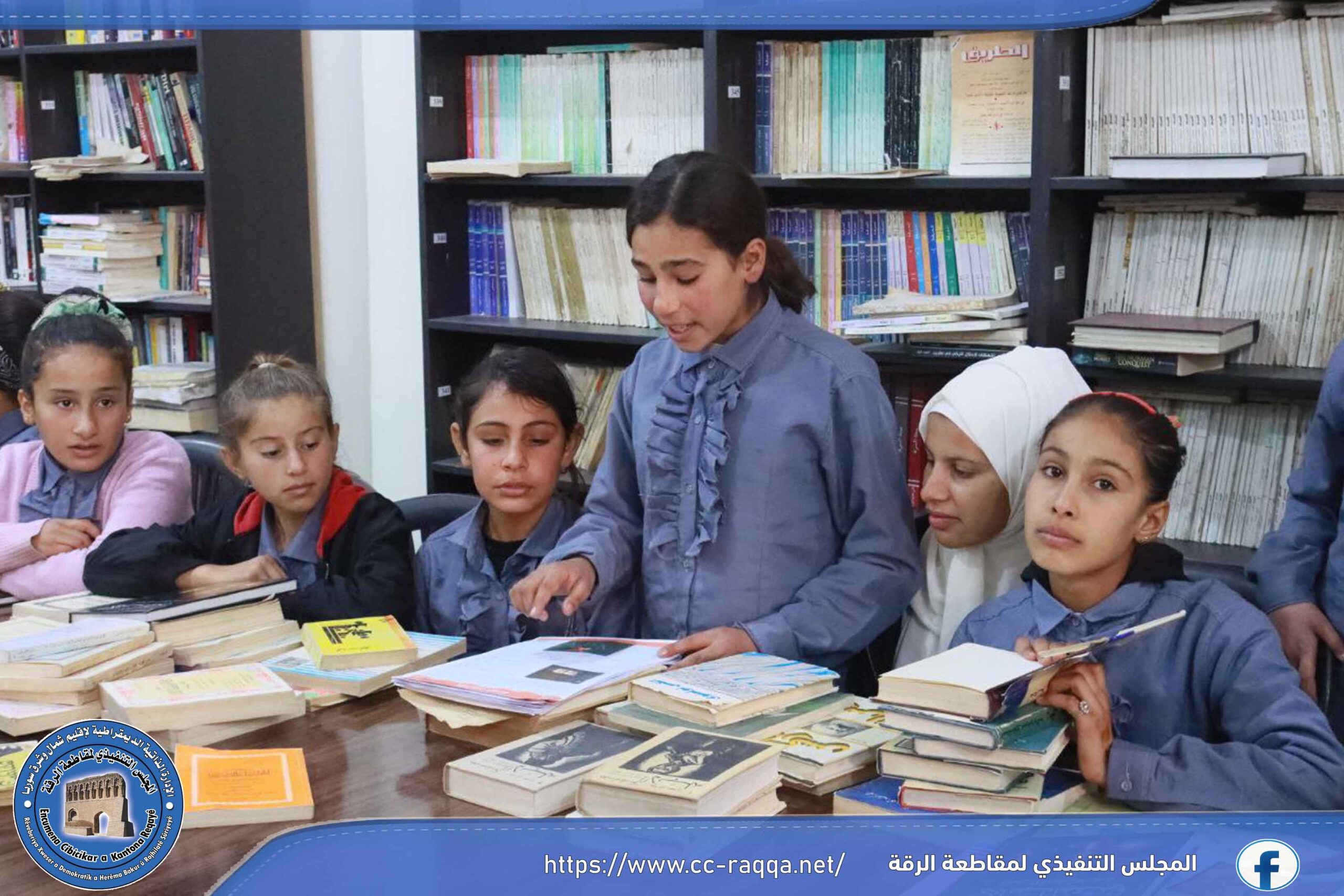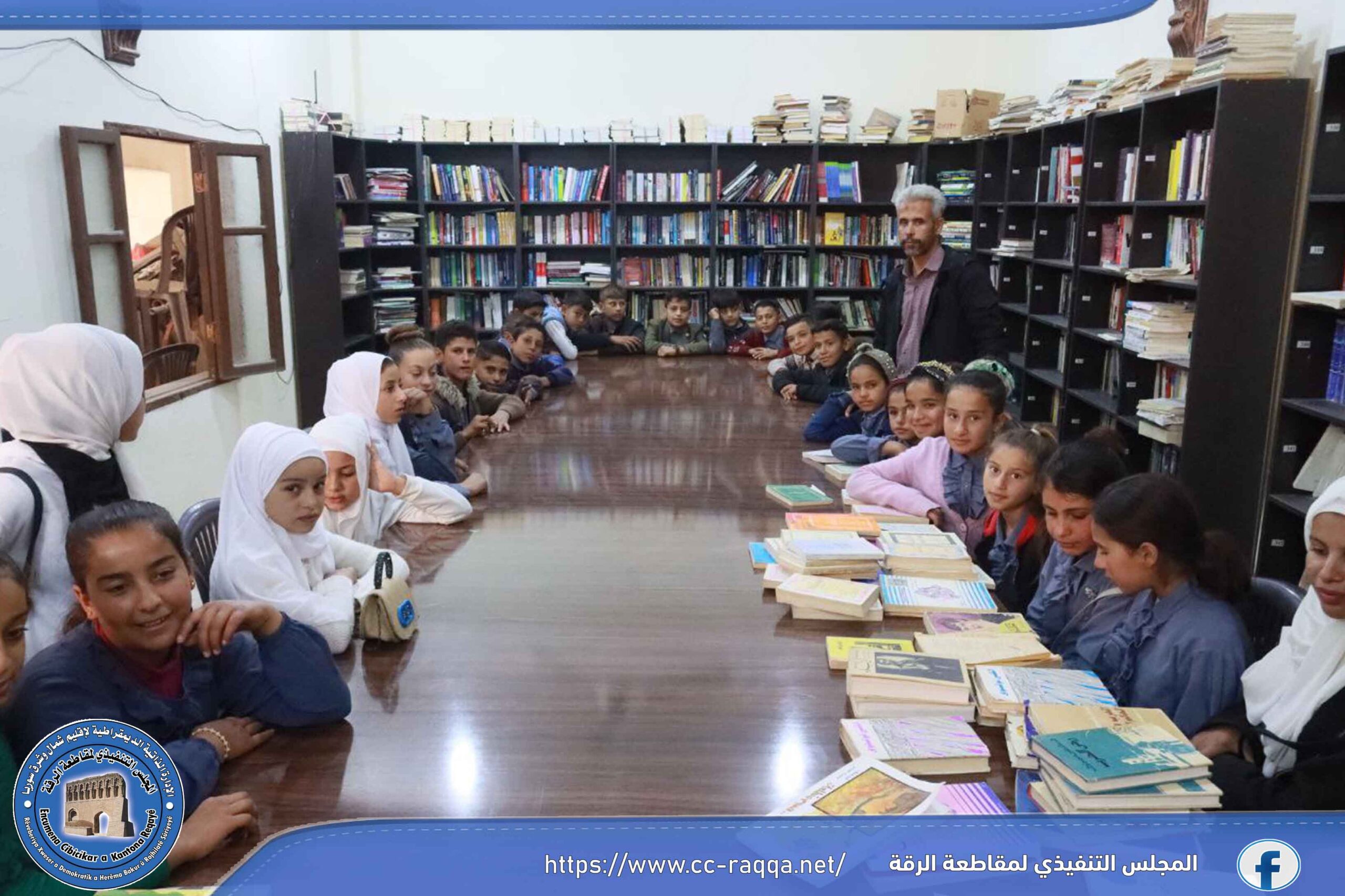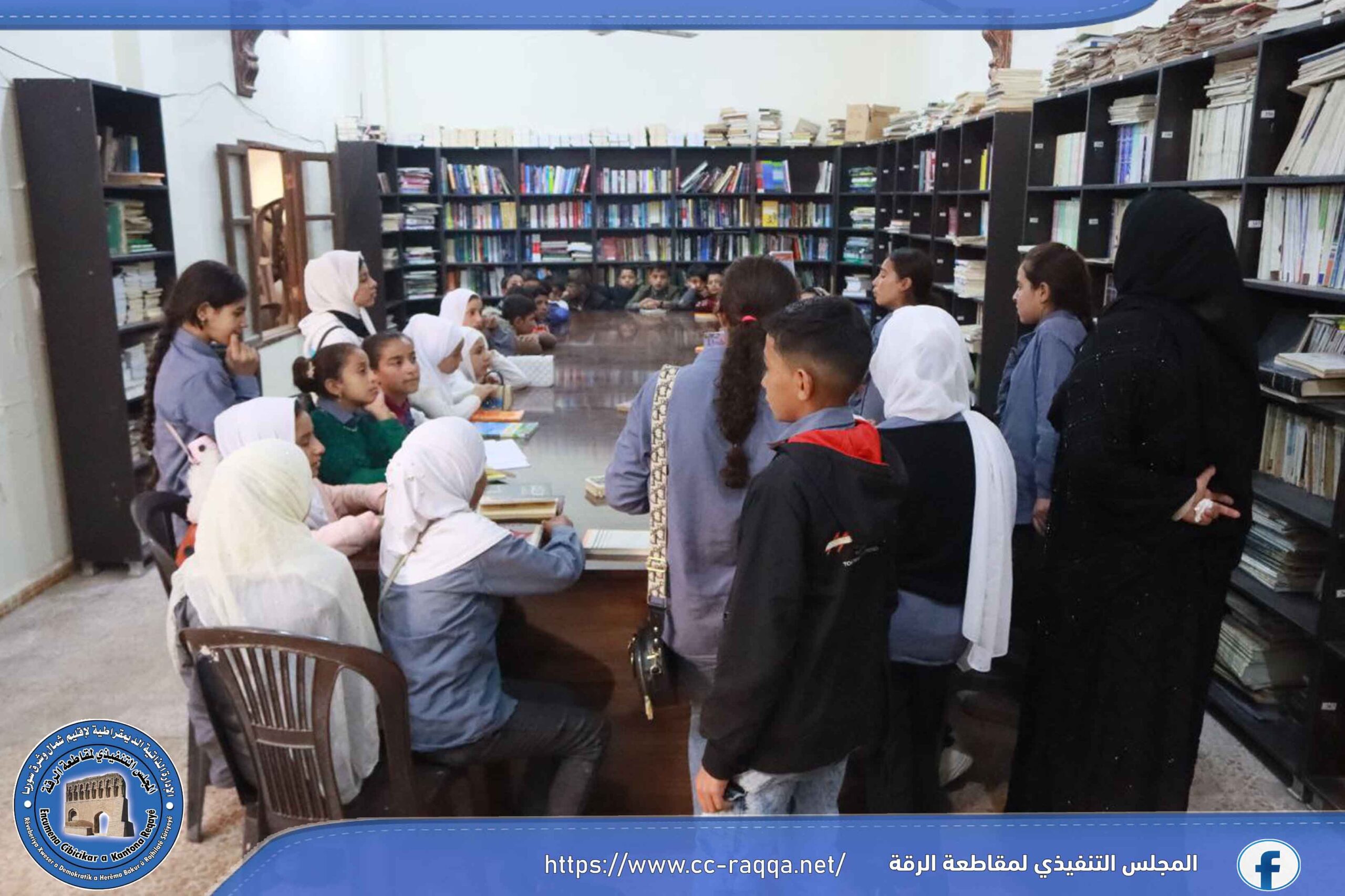 أجرى أطفال مدرسة “محمد الفراتي” في قرية الخاتونية بريف الرقة الغربي صباح اليوم 5 تشرين الثاني، زيارة إلى المكتبة الوطنية التابعة لهيئة الثقافة والآثار في مقاطعة الرقة، بهدف التعرف على الكتب الموجودة ضمن المكتبة، والدور الذي تلعبه في نشر الوعي الثقافي بين الأطفال.