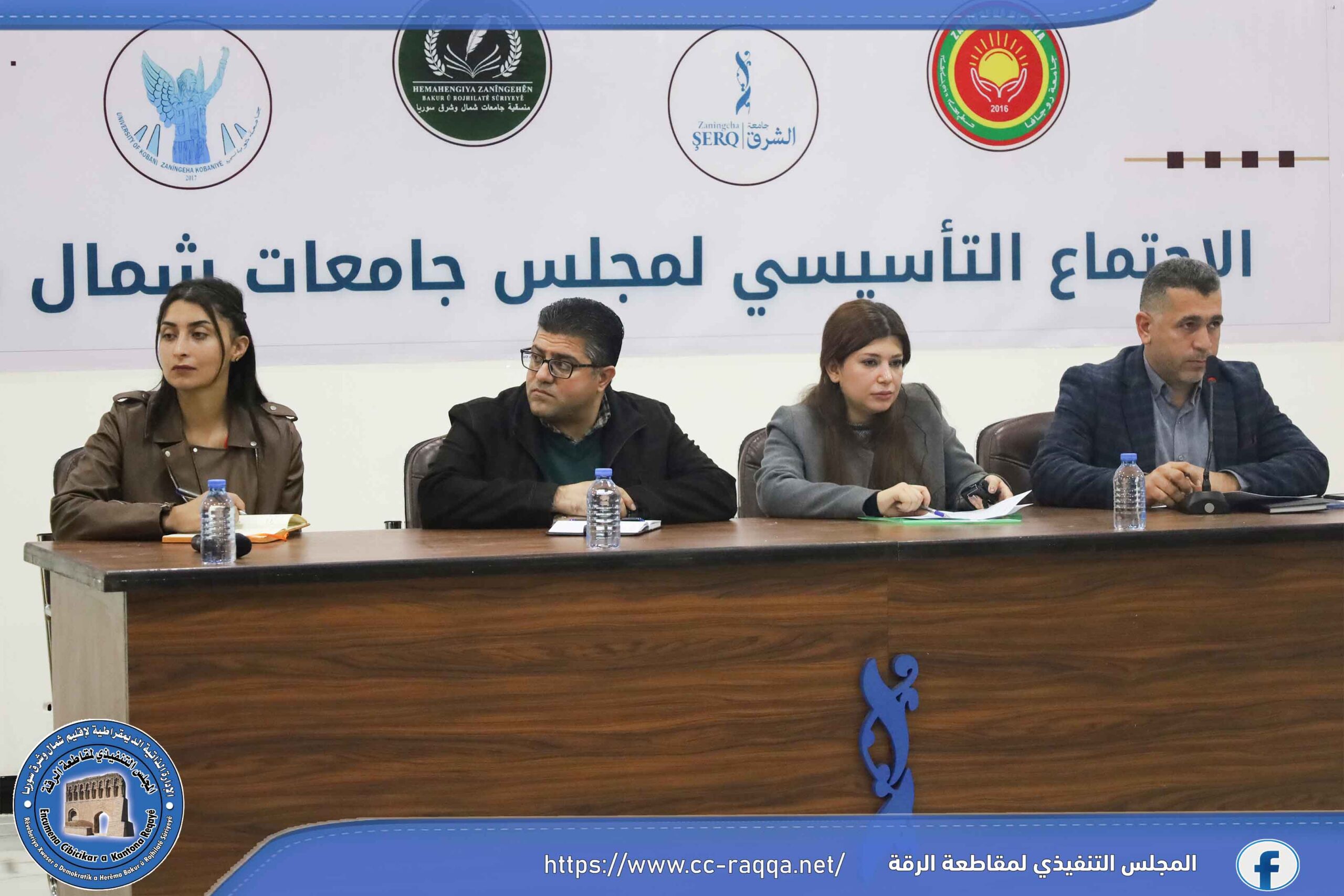 عقد مجلس جامعات شمال وشرق سوريا صباح اليوم 9 تشرين الثاني، الاجتماع التأسيسي له، ضمن جامعة الشرق في مقاطعة الرقة، بحضور الرئاسة المشتركة للمجلس التنفيذي لإقليم شمال وشرق سوريا، والرئاسة المشتركة لهيئة التربية والتعليم في شمال وشرق سوريا، وممثلين عن الجامعات في جميع المقاطعات، ومنسقية جامعات شمال وشرق سوريا، بالإضافة لعدد من الأكاديميين والمحاضرين في جامعات الإقليم.