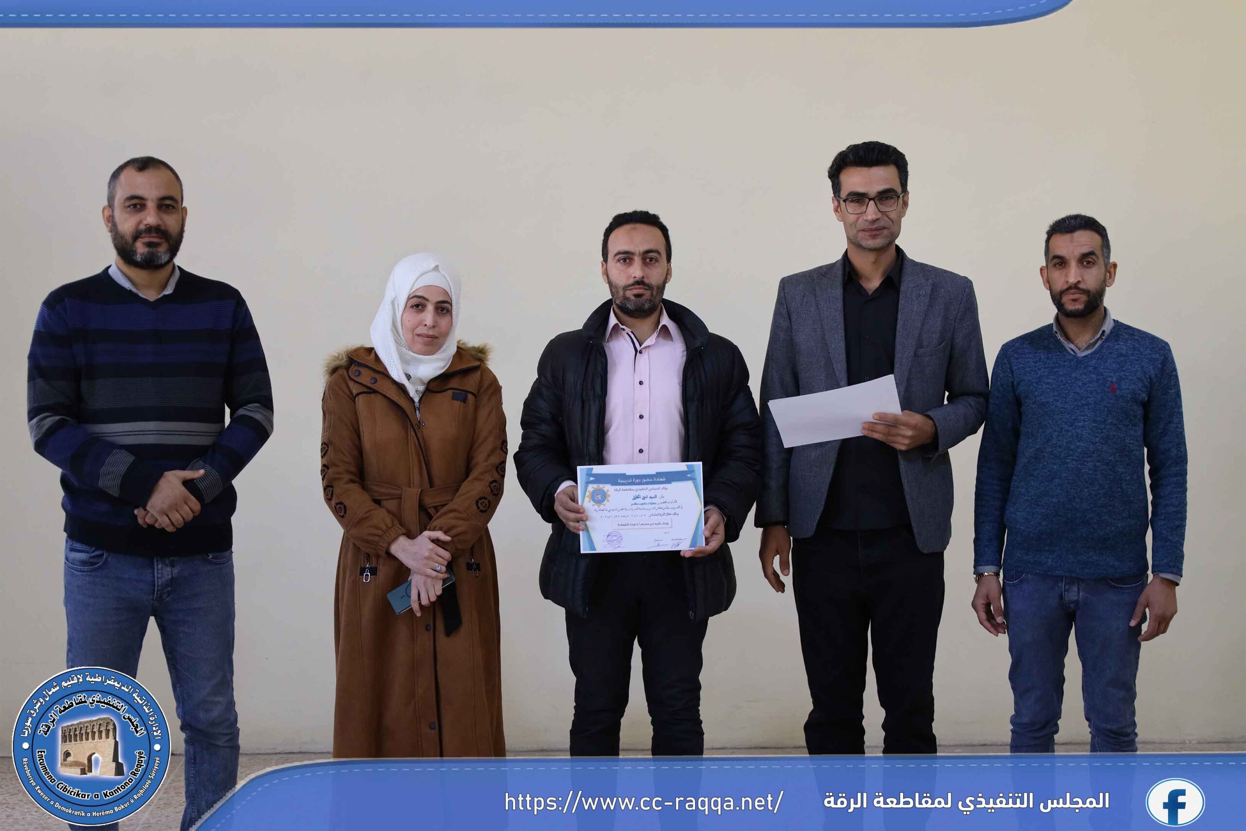 حضر التخريج نائب الرئاسة المشتركة للمجلس التنفيذي لمقاطعة الرقة، وقام بتسليم الشهادات للمتدربين، إضافةً لتقديم بعض التوجيهات والدعم لتطبيق المعارف والمهارات التي اكتسبوها خلال الدورة بشكل عملي.