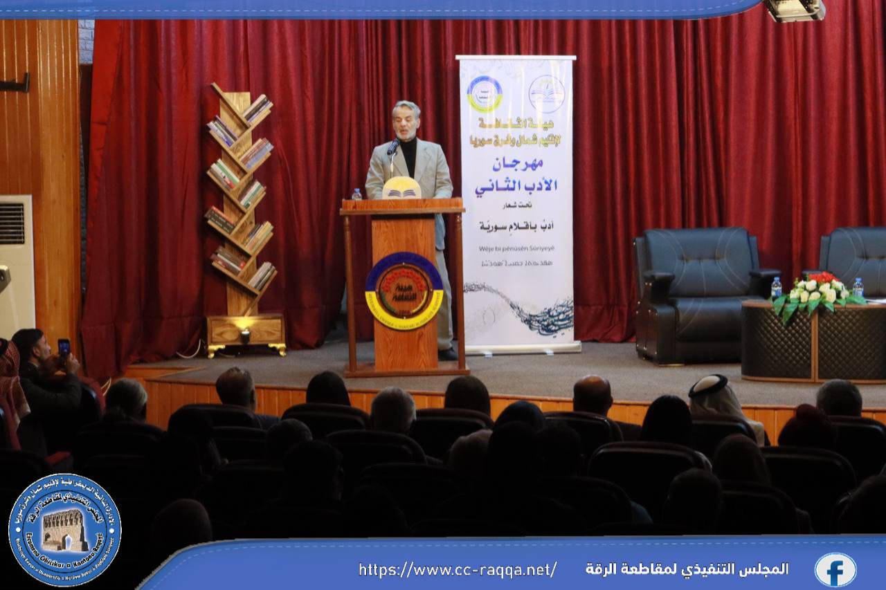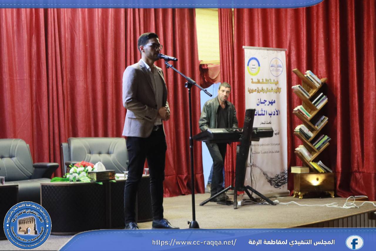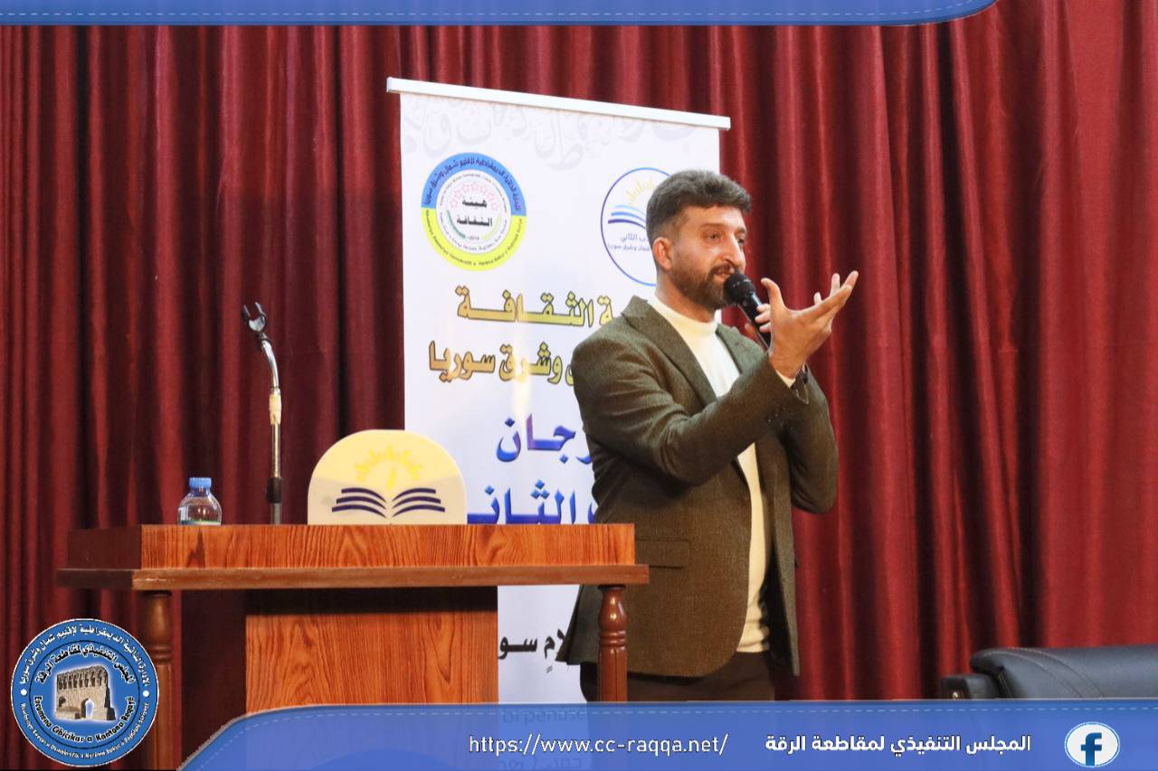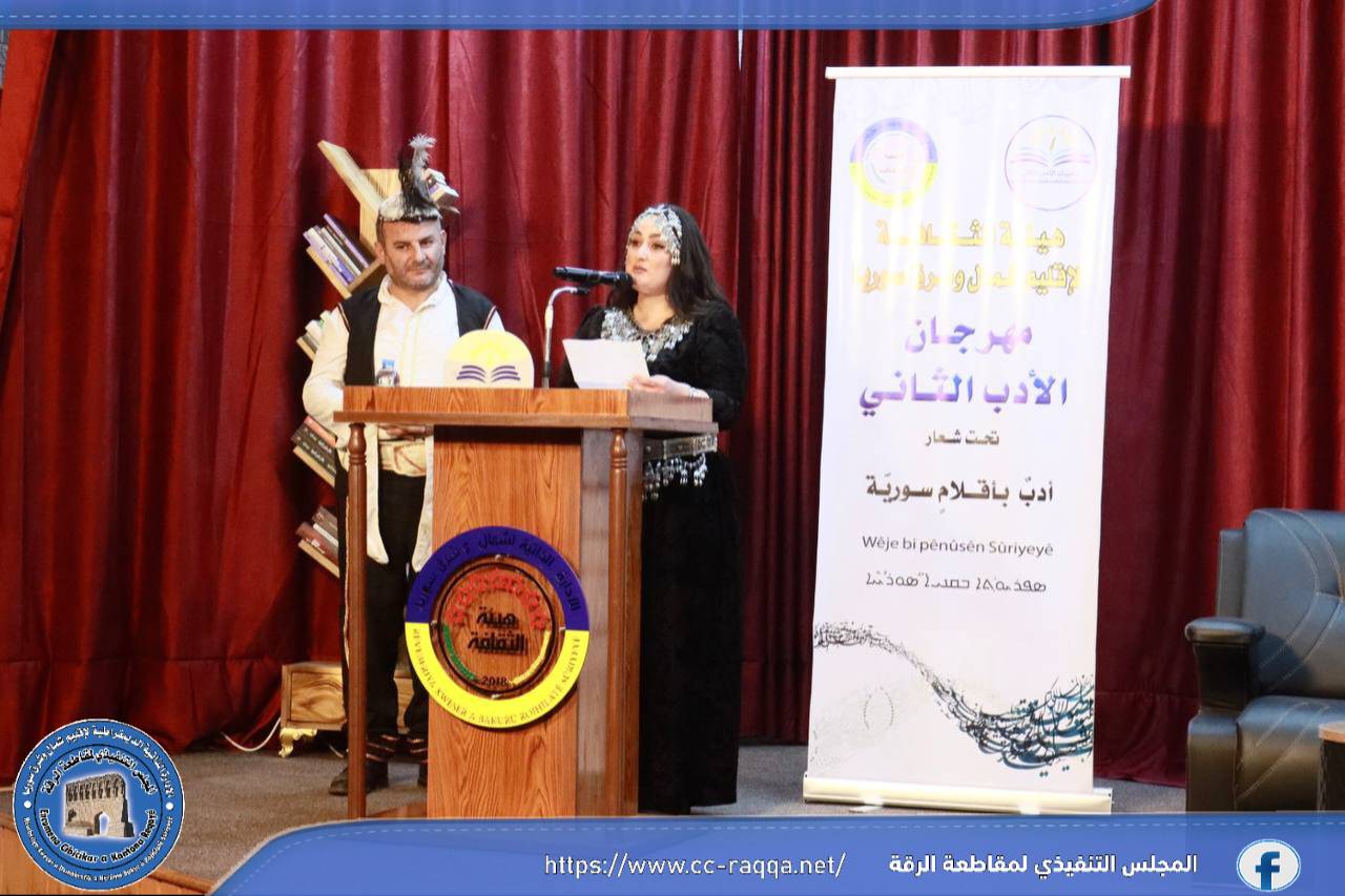 جانب من التغطية الإعلامية لليوم الثاني على التوالي من فعاليات مهرجان الأدب، والتي نظمته كل من هيئة الثقافة في إقليم شمال وشرق سوريا بالتعاون مع هيئة الثقافة والآثار في مقاطعة الرقة.